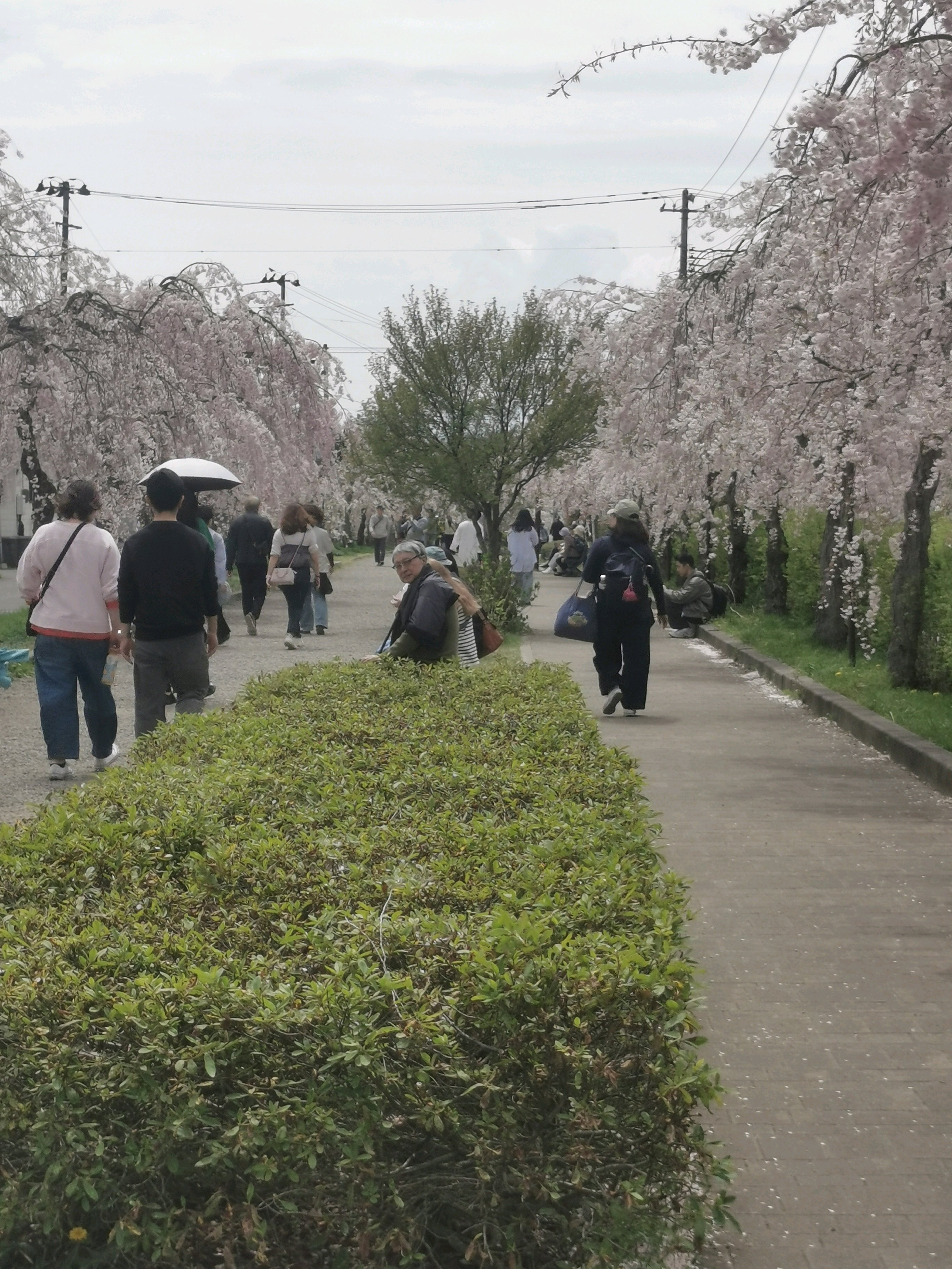 並木道は、3kmもあるので途中で休んでる人もいます。