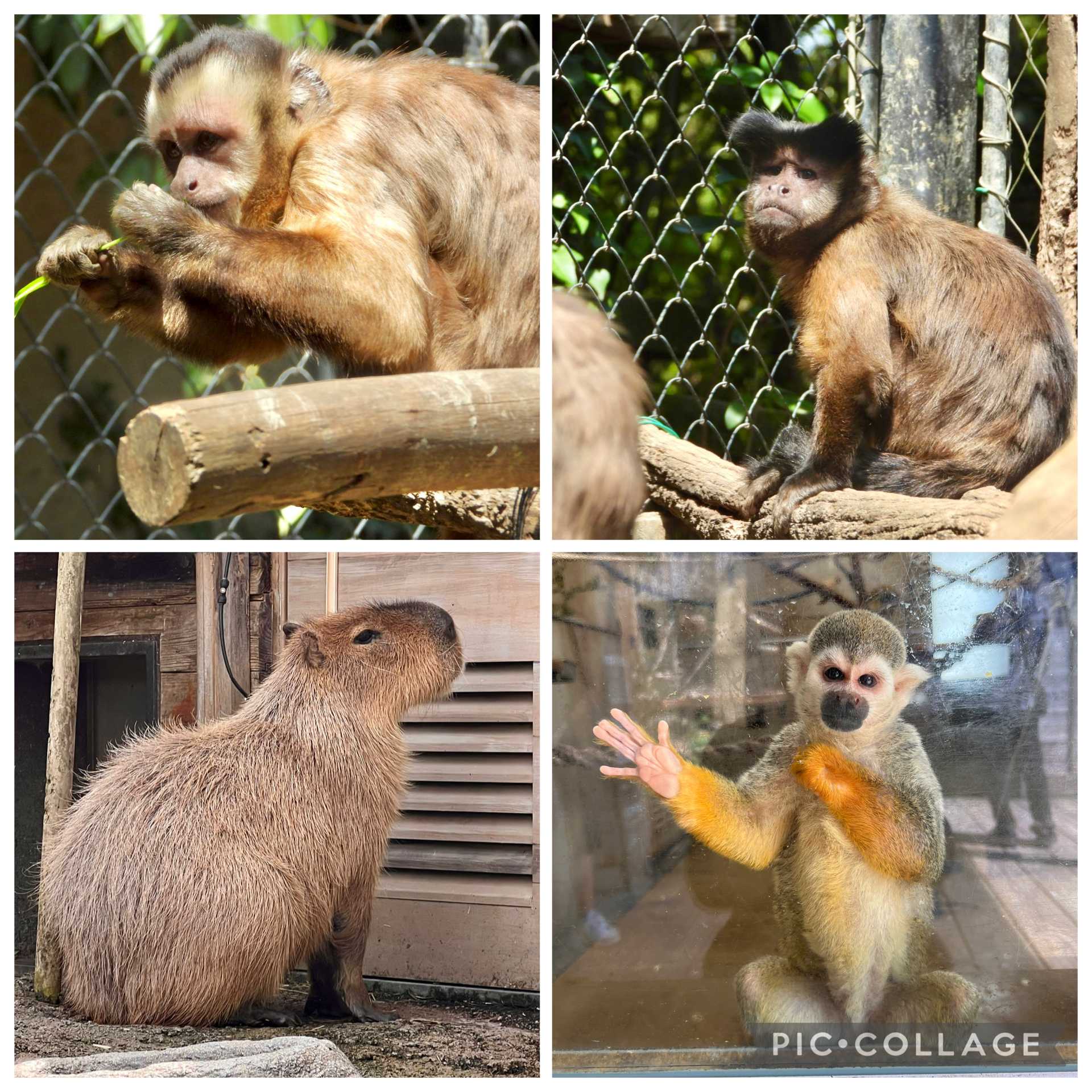 上はフサオマキザル(ヘアスタイル🤣)、下はカピバラさんとリスザルさん(ポーズ🤣)。