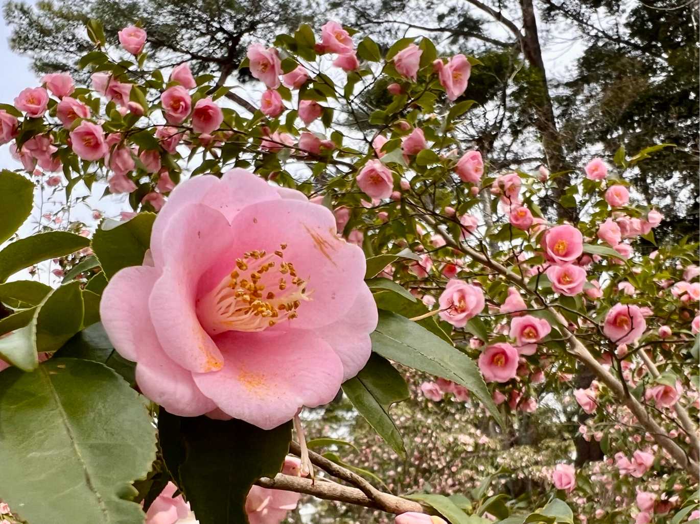 小ぶりで淡いピンクの椿。素敵でした😻