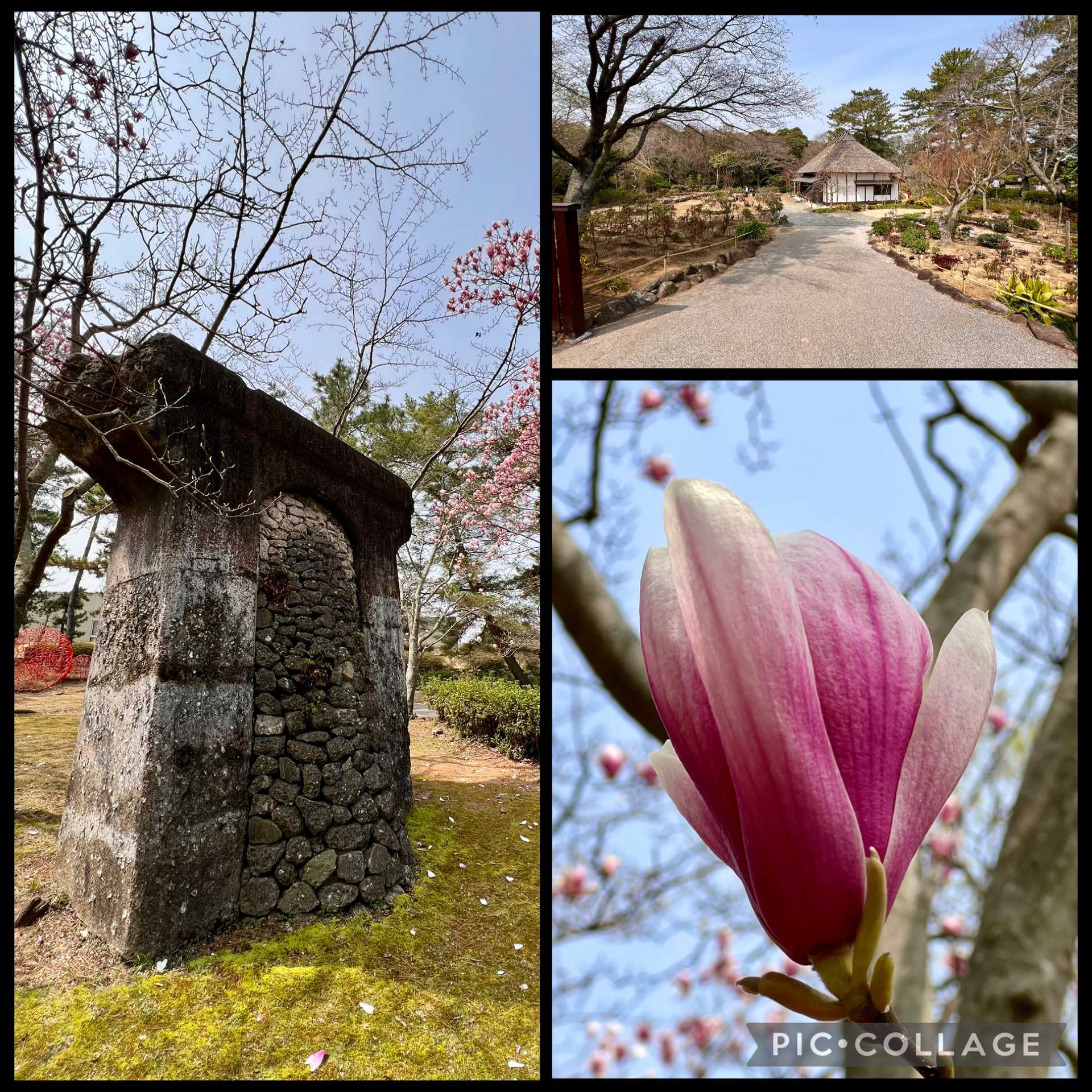 宇部は彫刻の街でもあり、ときわ公園には沢山のオブジェが。これは取り壊された橋脚を使ったもの。木蓮と不思議に調和していました。