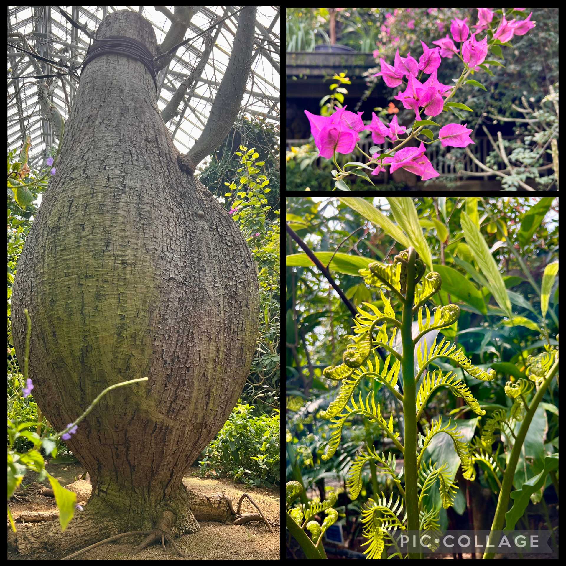 スピードup💨以下、右上から時計回りで、ブーゲンビリア、何かのシダ😅、キワタの仲間。