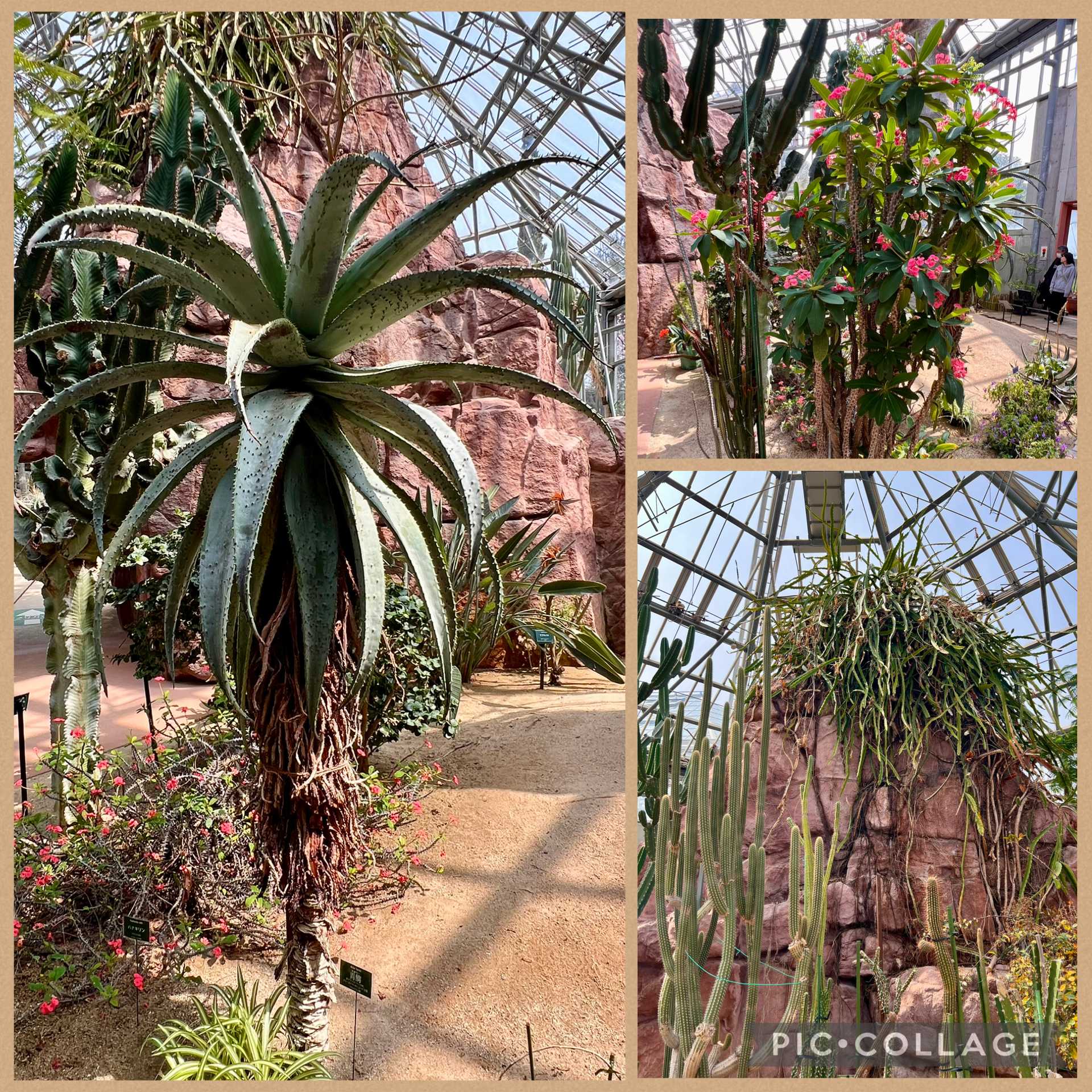 乾燥地帯の植物たち。我が家のとサイズが違いすぎるハナキリン、リプサリス、アロエ。