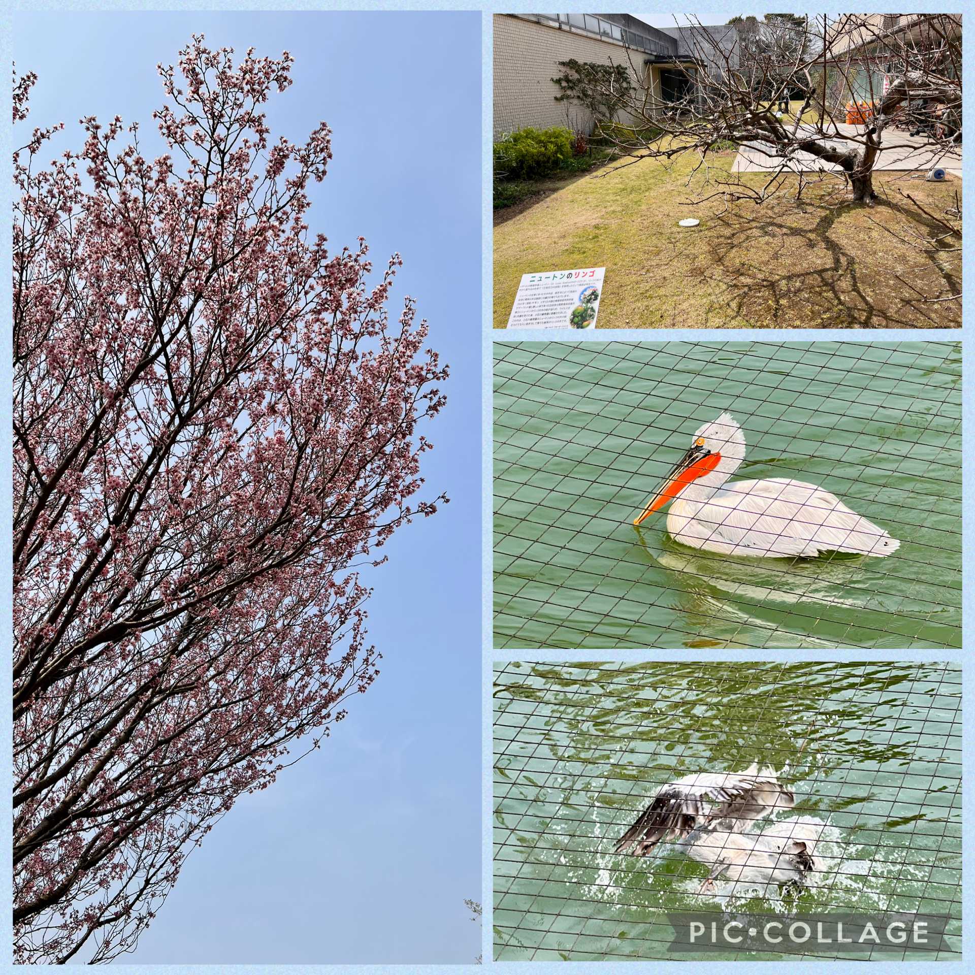 ニュートンの林檎の木の子孫→ペリカン島からすぐ近くまで泳いで来てくれたハイイロペリカンさん→ド派手な水浴び→桜に見送られてサヨナラ👋