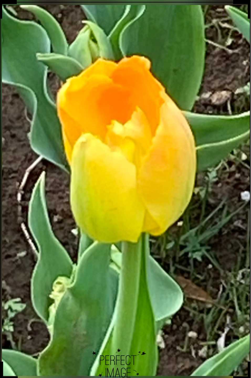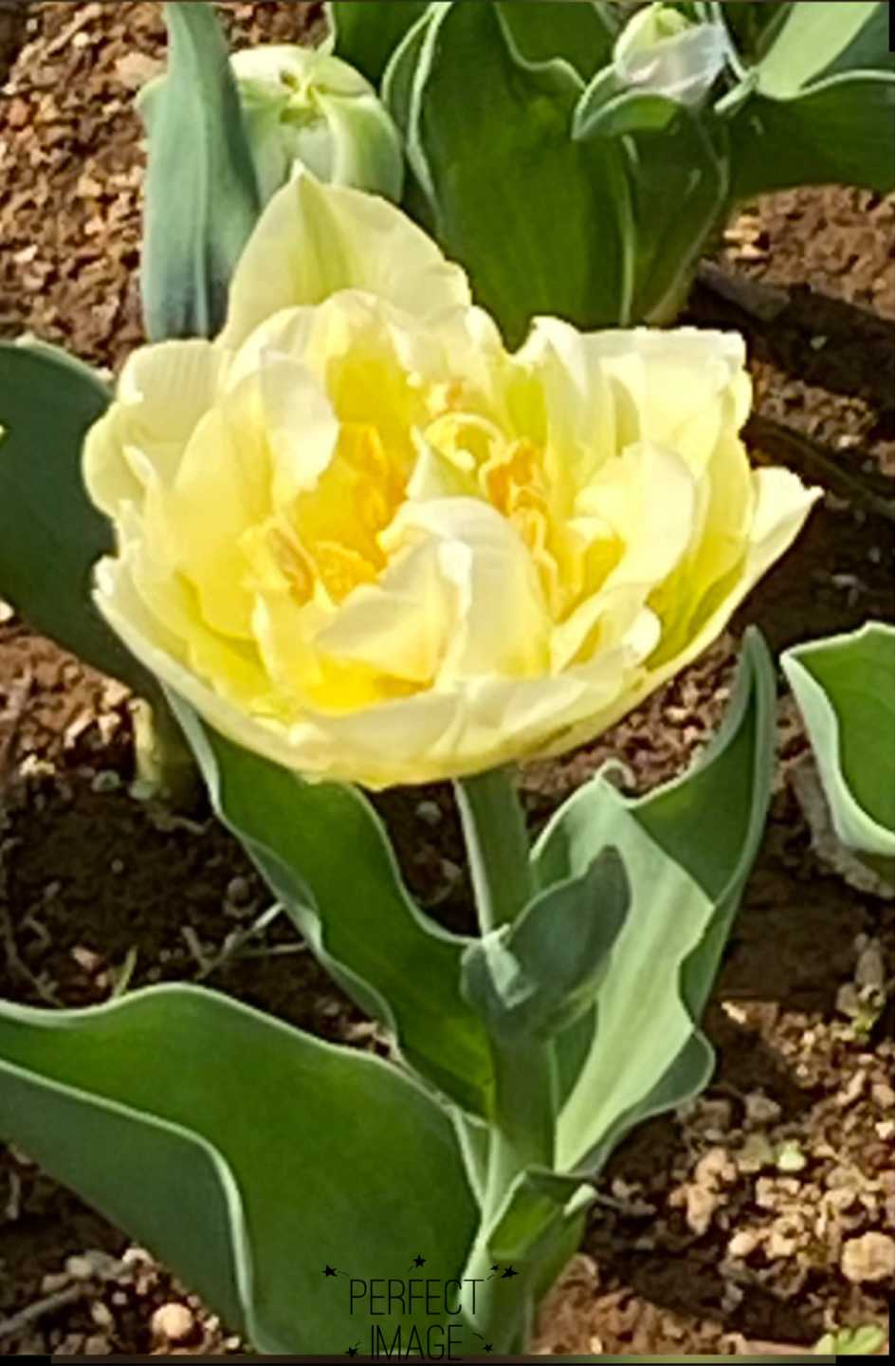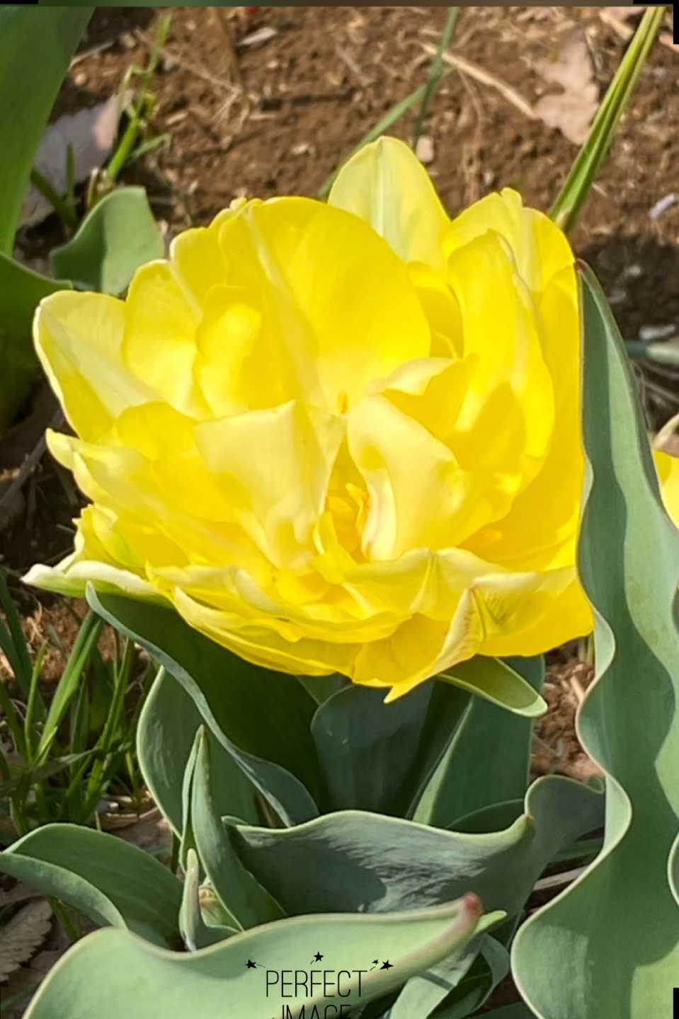 黄色い八重咲きのチューリップ💛