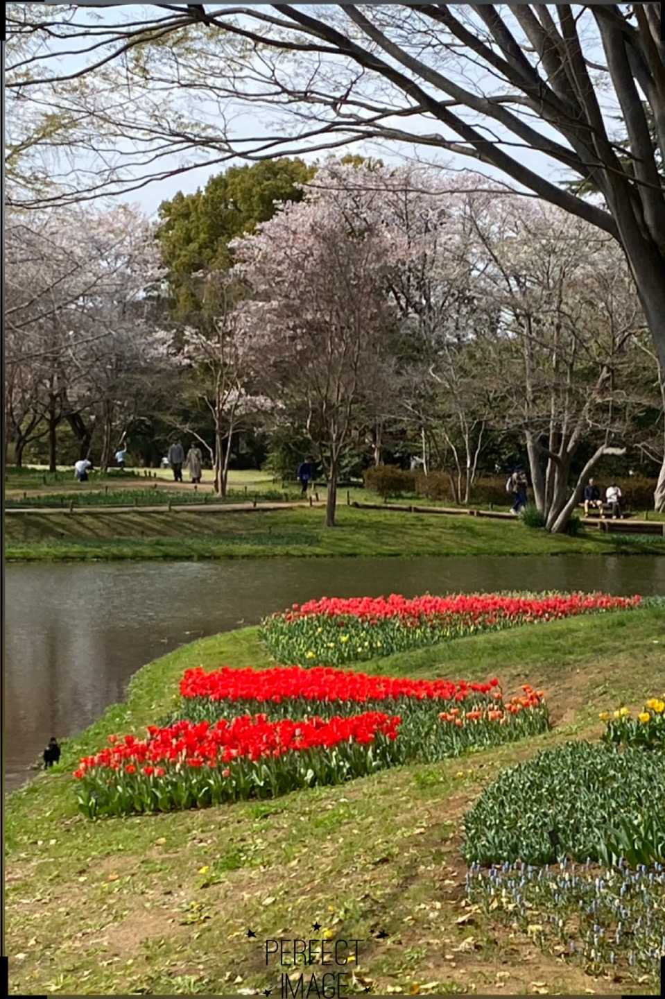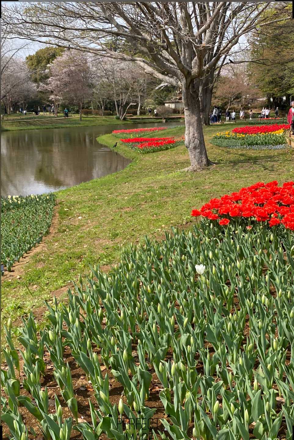 池のほとりはキューケンホフ公園を彷彿とさせる景色