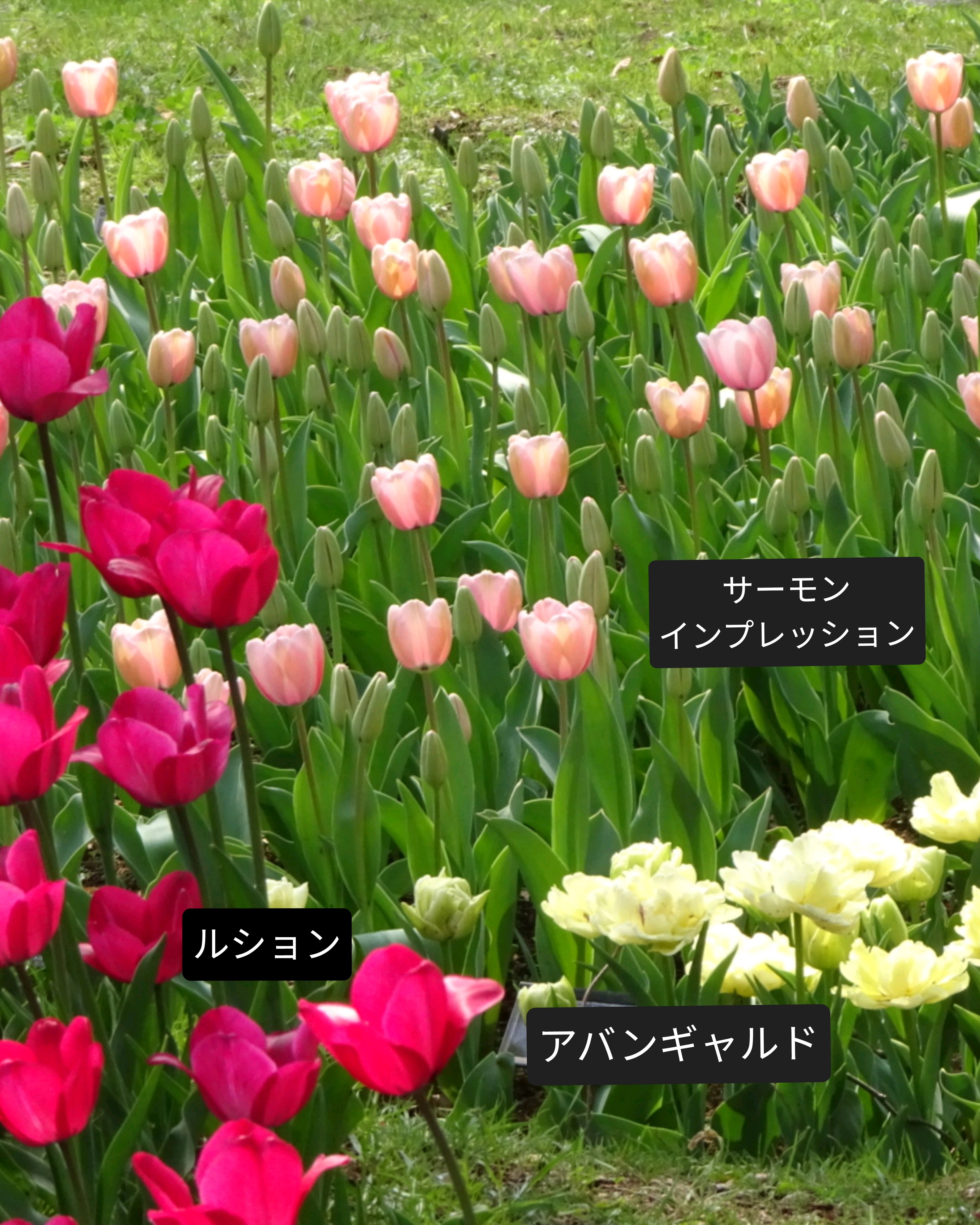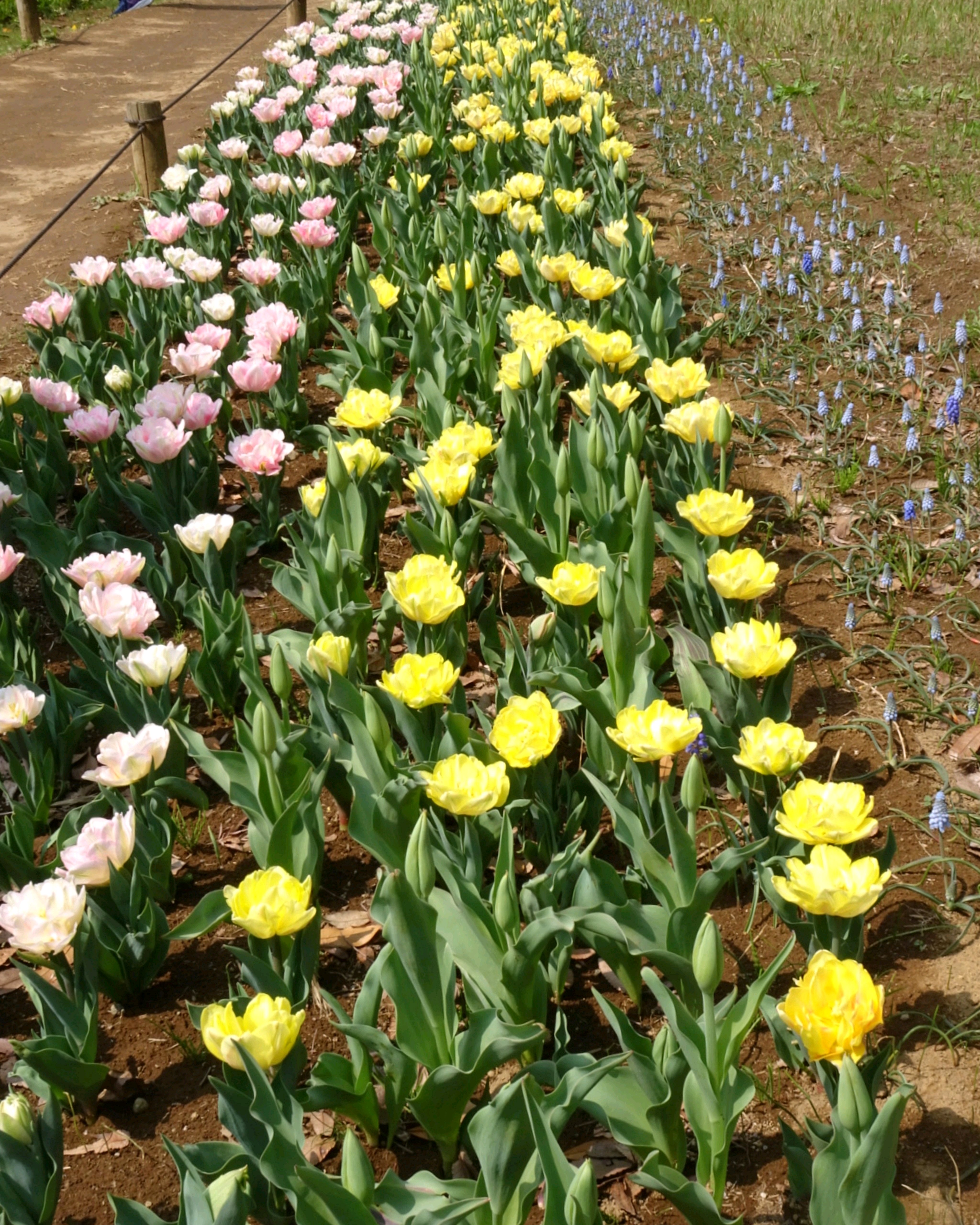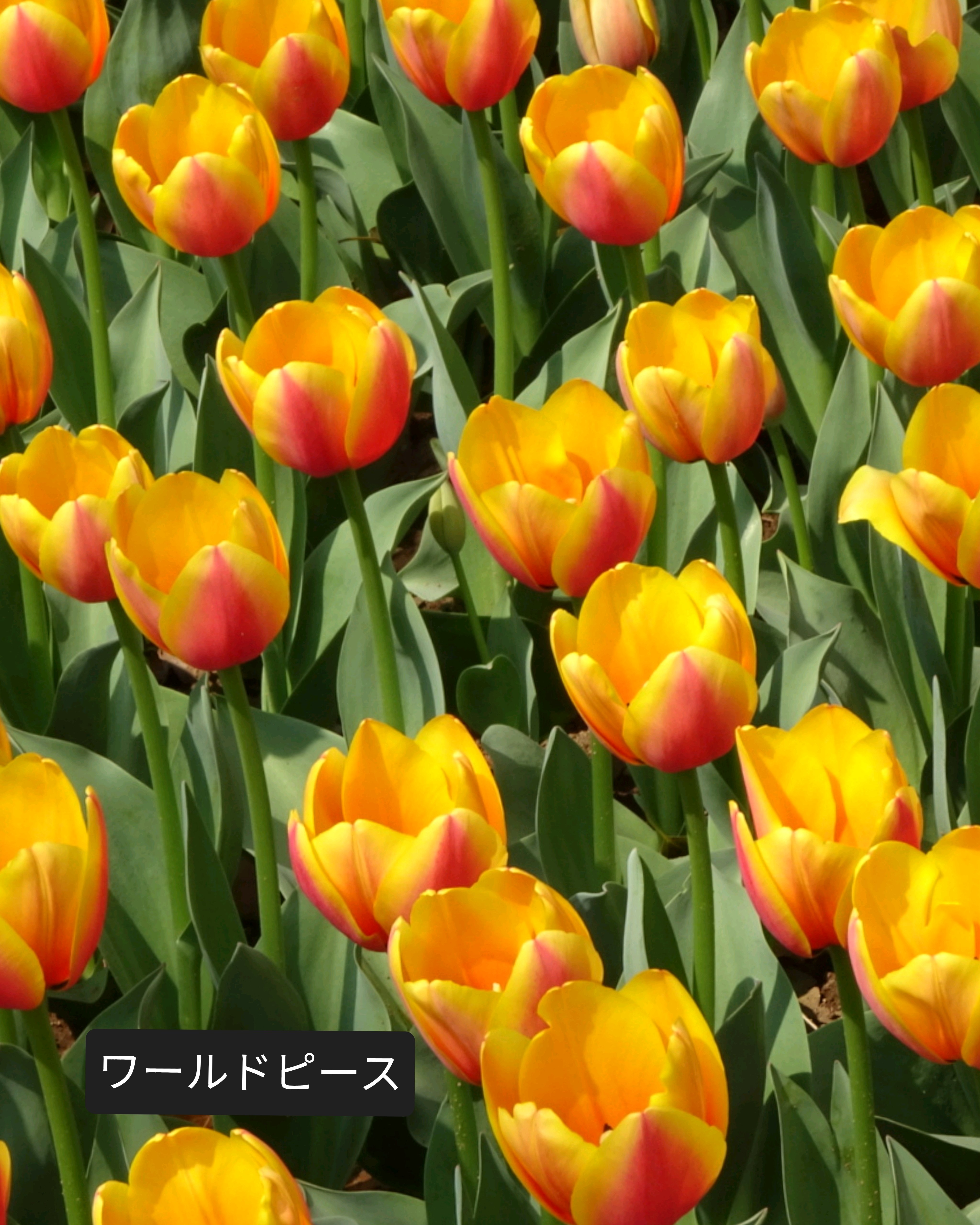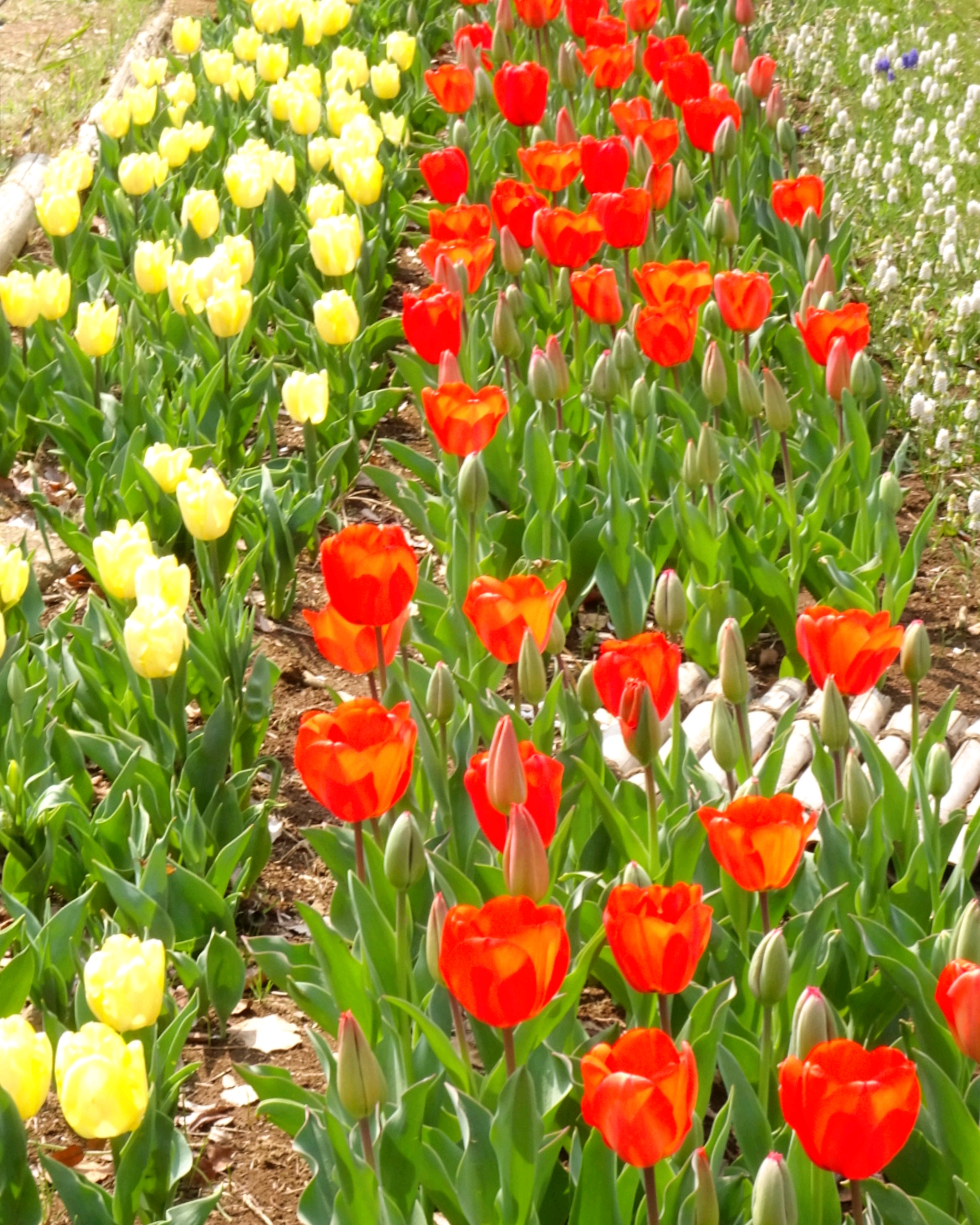 黄橙色の隣は白か紫か…満開が楽しみですね。公式の写真を待つことにします