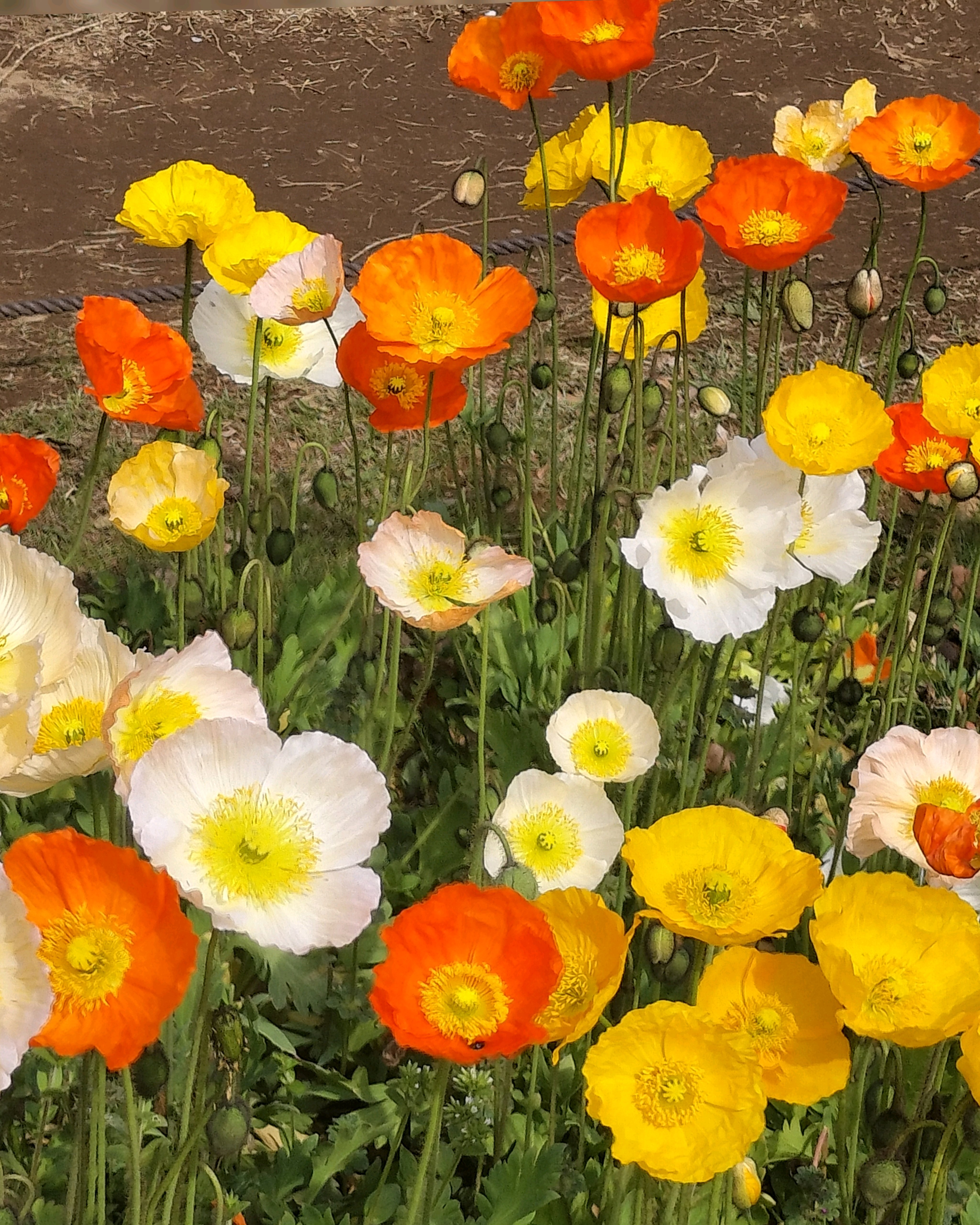 カリフォルニアポピーの花の大きさはまちまちで、大きい花小さい花が一緒に咲いてました😄