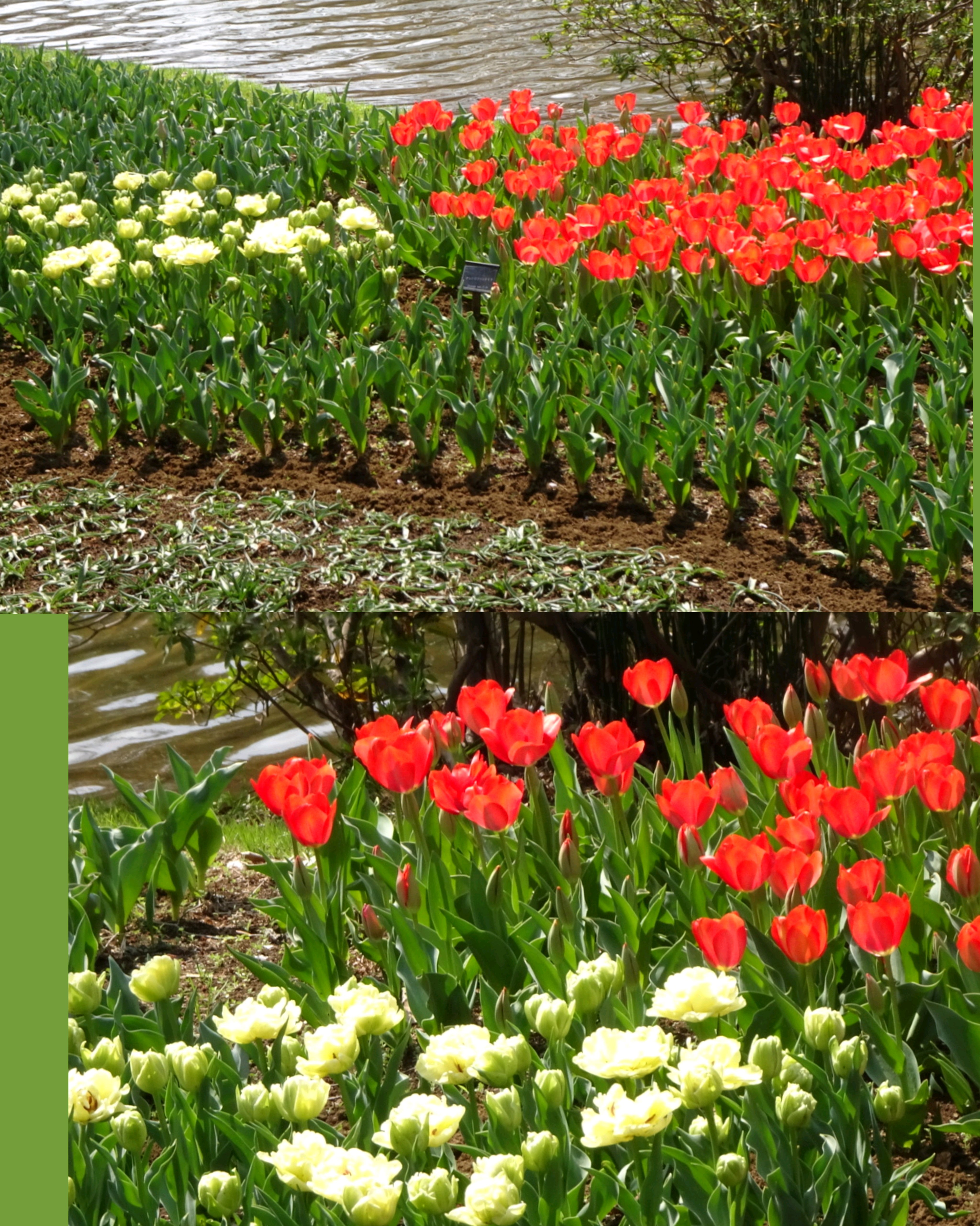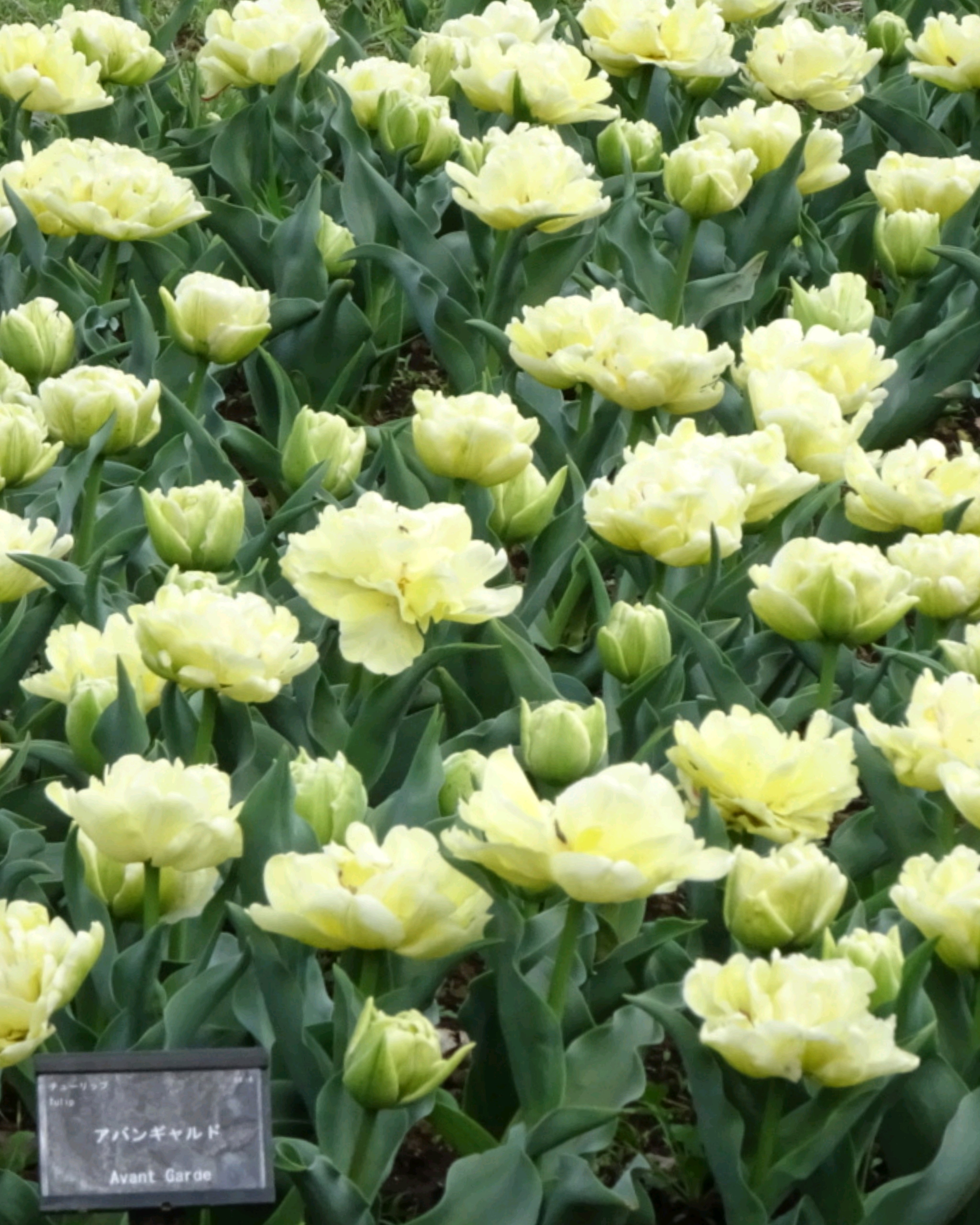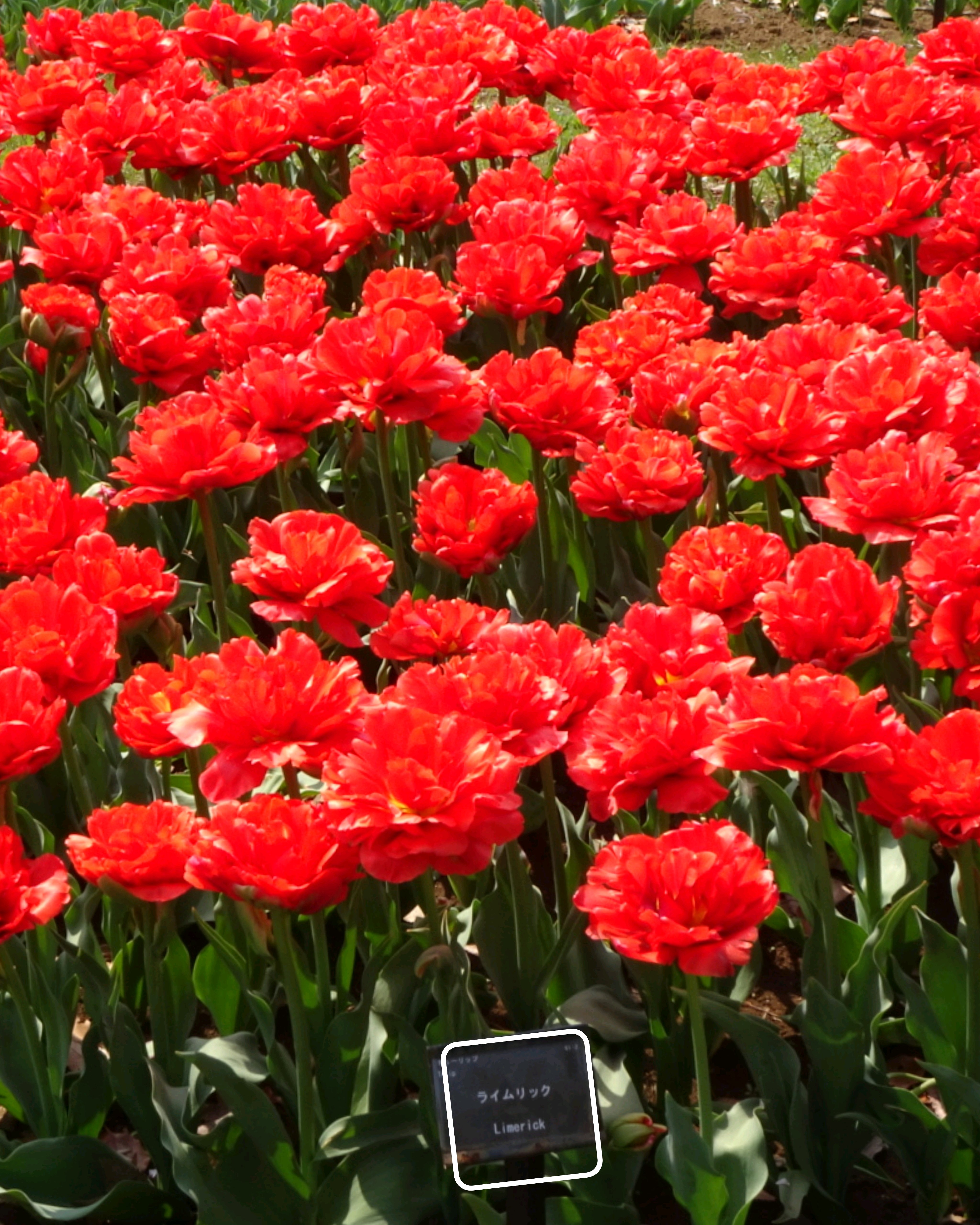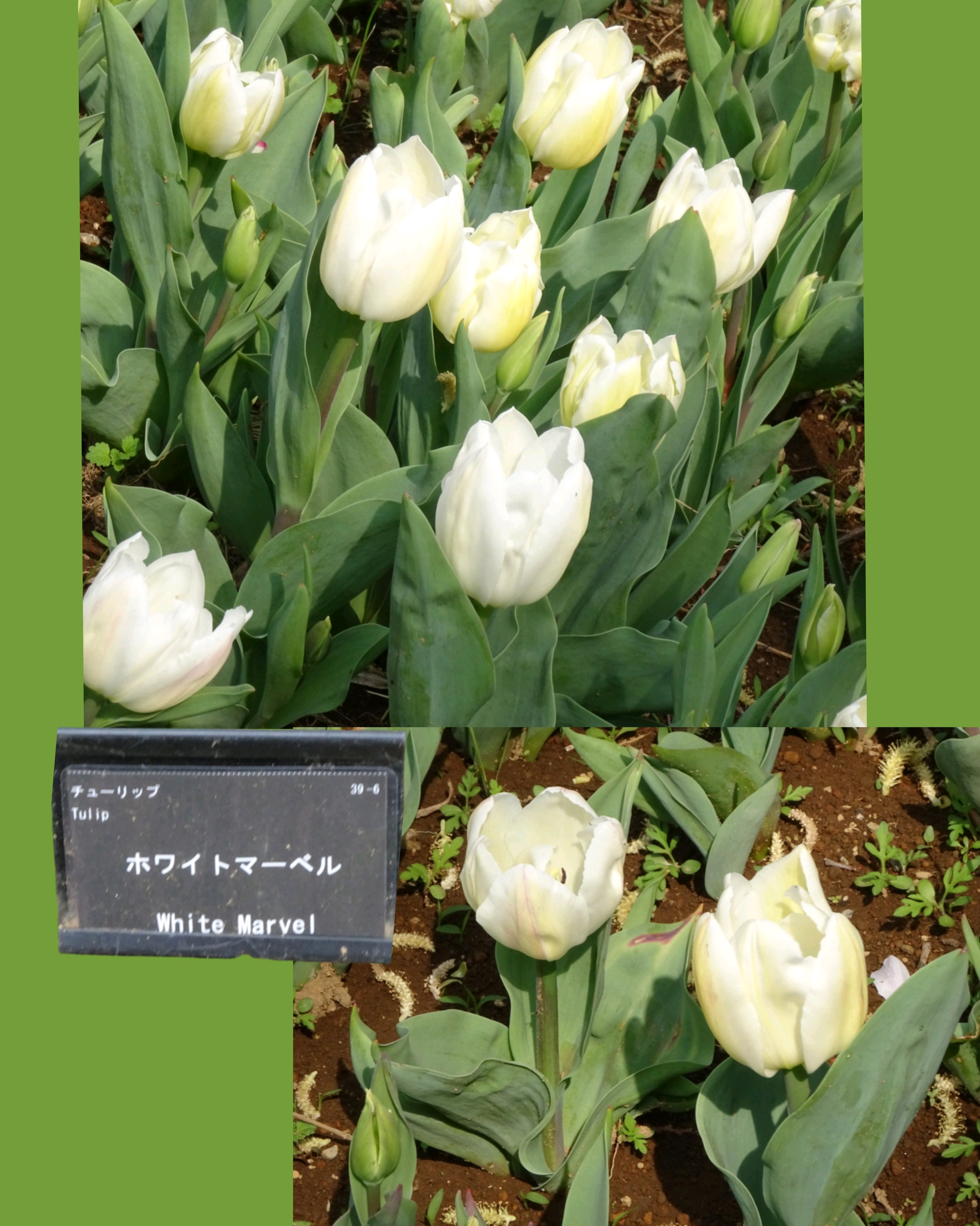 まだ咲いてない花を名札から調べたキャンディクラブは遅咲きの白い枝咲きチューリップで花弁の縁に赤が入るピコティタイプでした👀!!