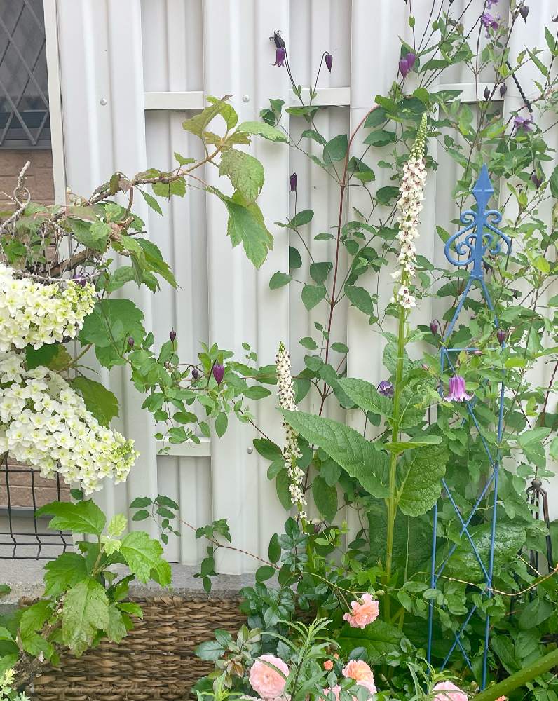 クレマチスの色と白いフェンスの色だけになって背景がいい感じで成功感がありました☺️