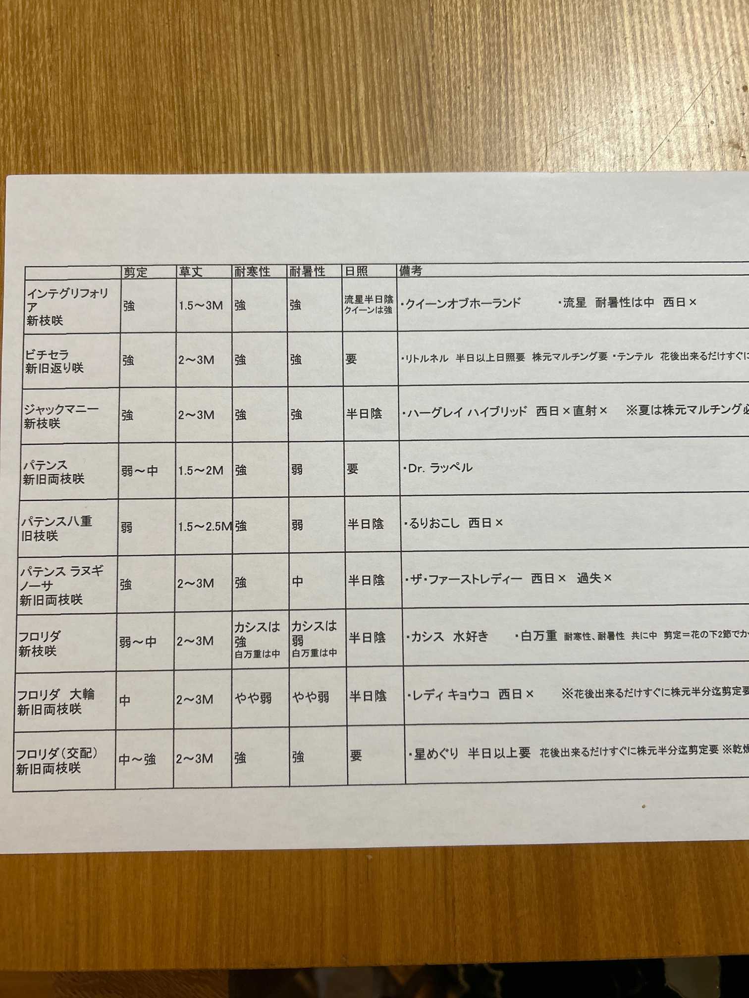 幼苗から育てるので一年目はほとんど咲かずですが育つ様子は見れるのでどこが適所かツル性か半ツルなのか組み合わせを考えるのに一覧表を今年初めて作ってみました😊