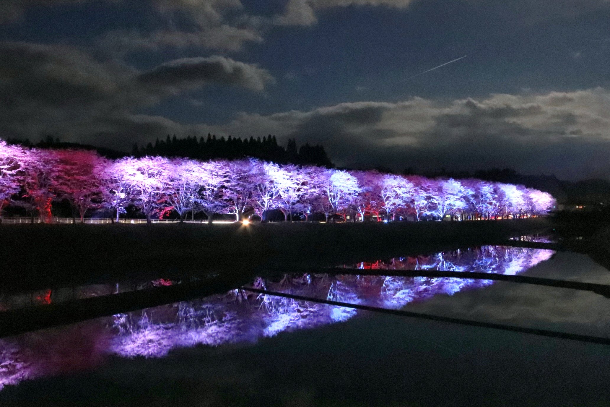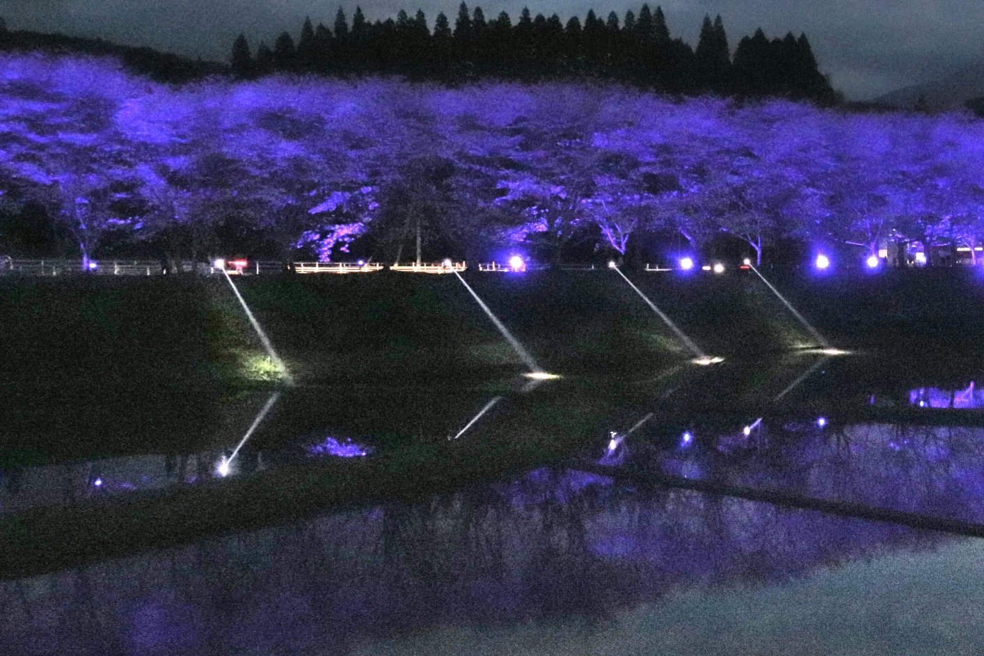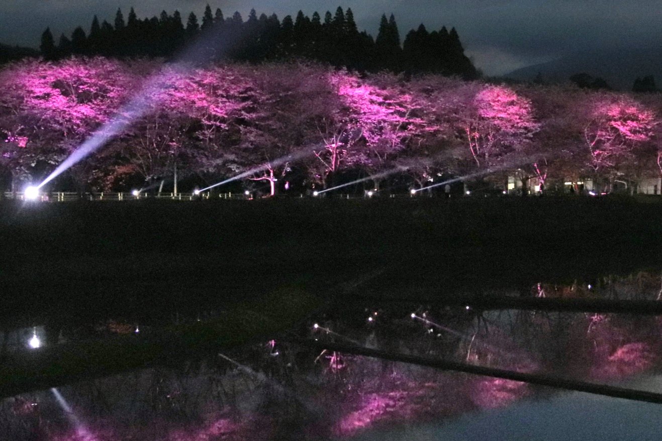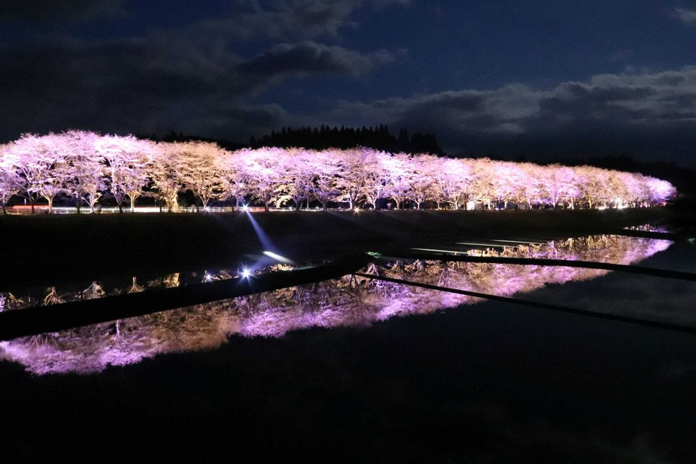 ムービングライトなども使われており、直ぐ近くの田んぼには水が張られライトアップを幻想的に映し出していました
