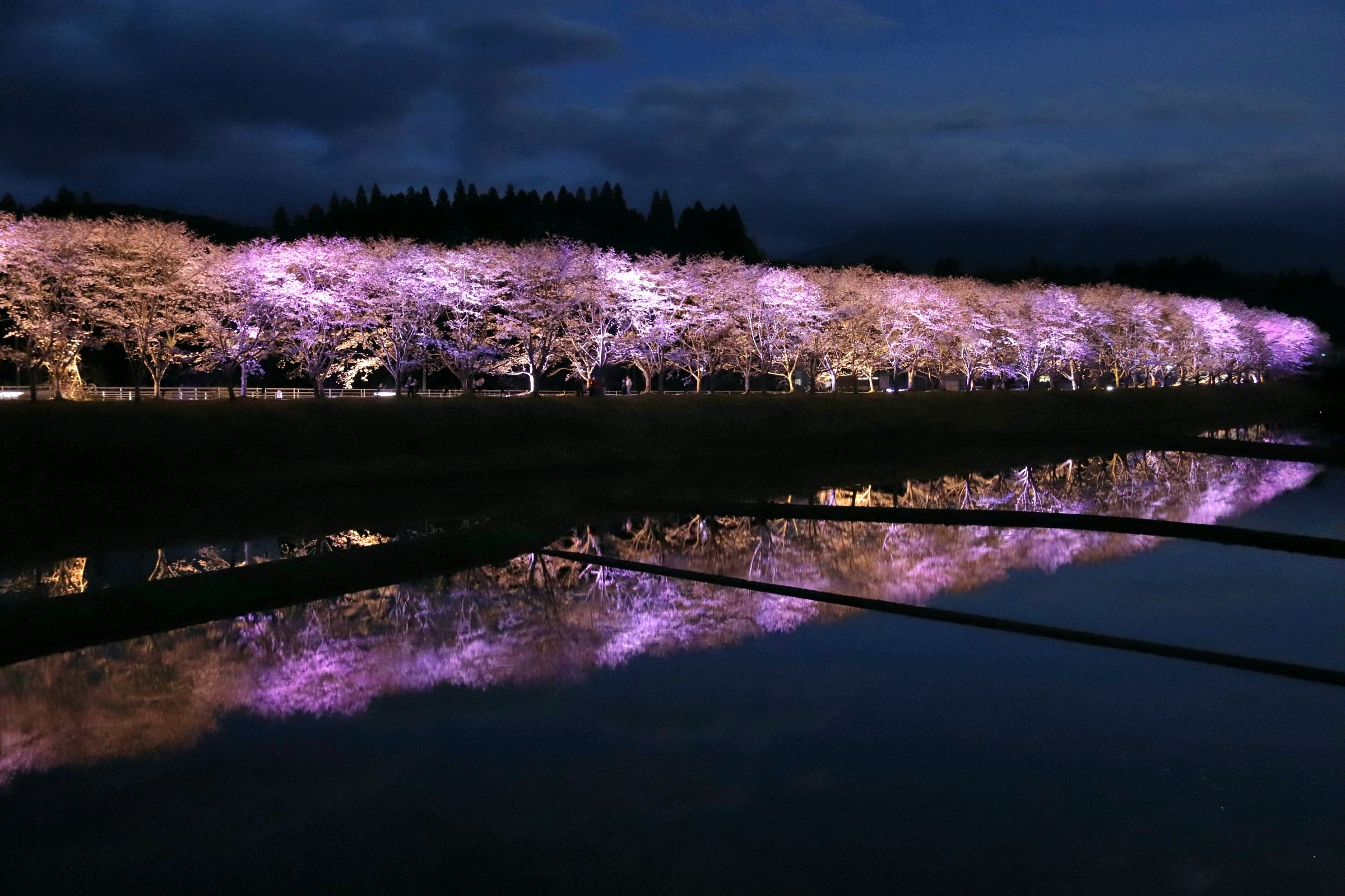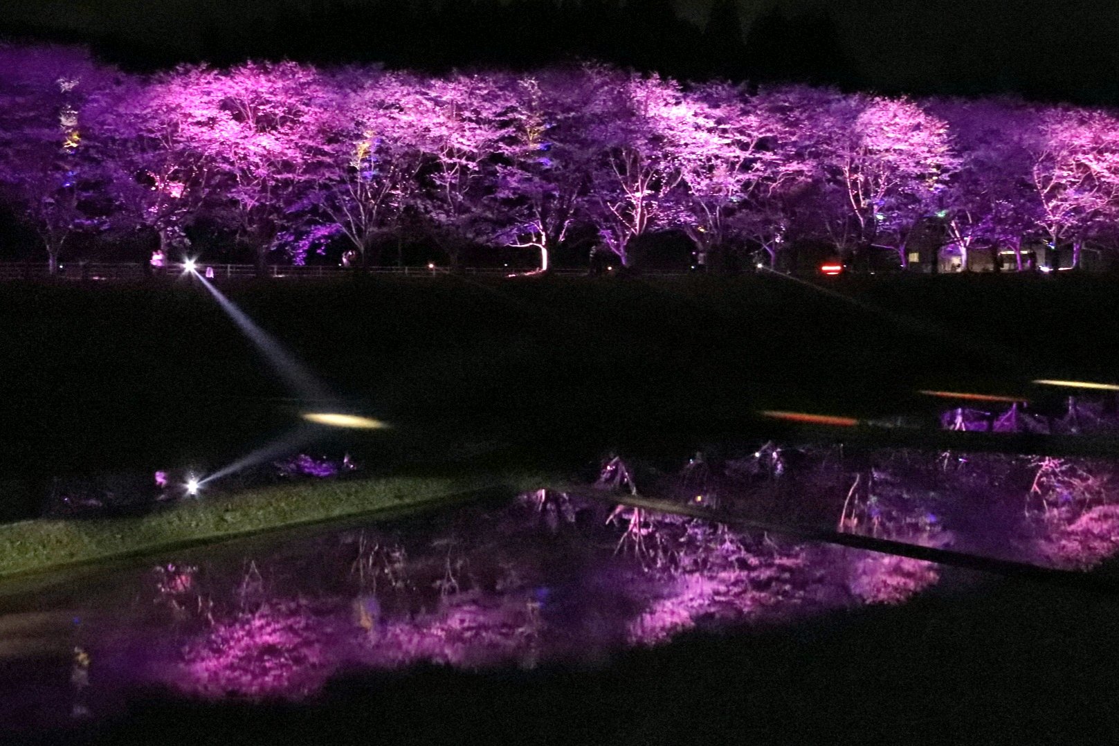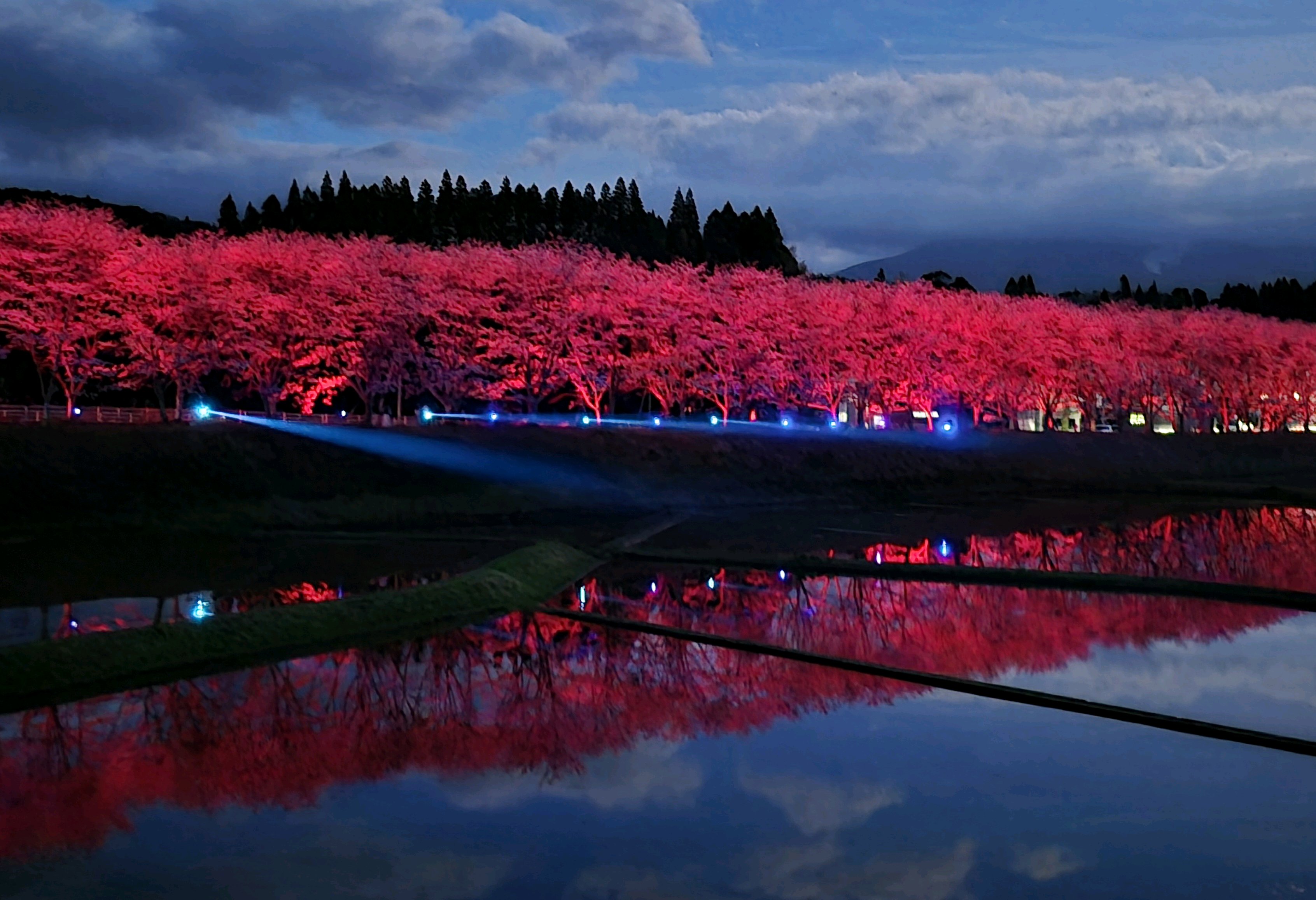 ムービングライトなども使われており、直ぐ近くの田んぼには水が張られライトアップを幻想的に映し出していました