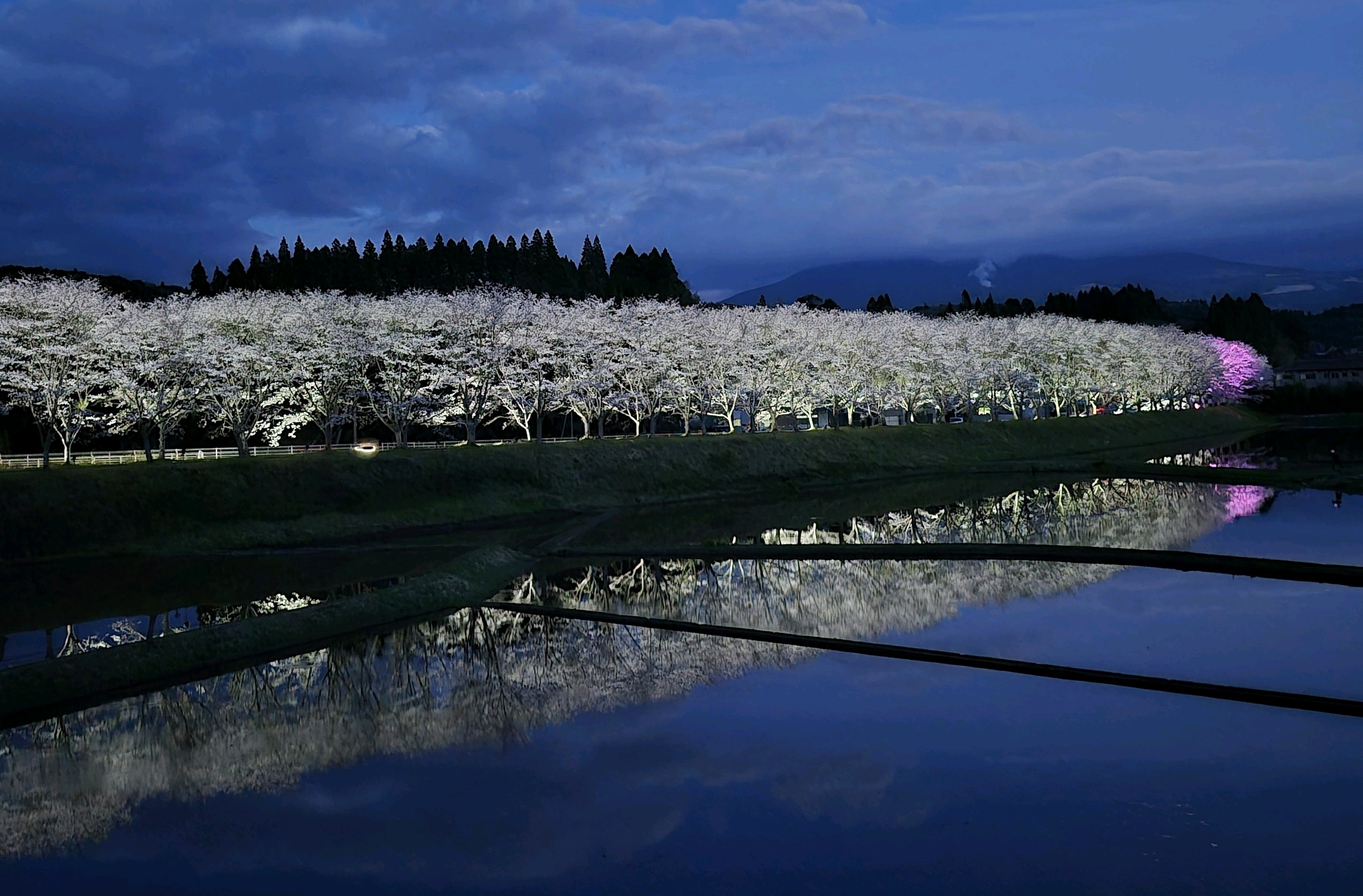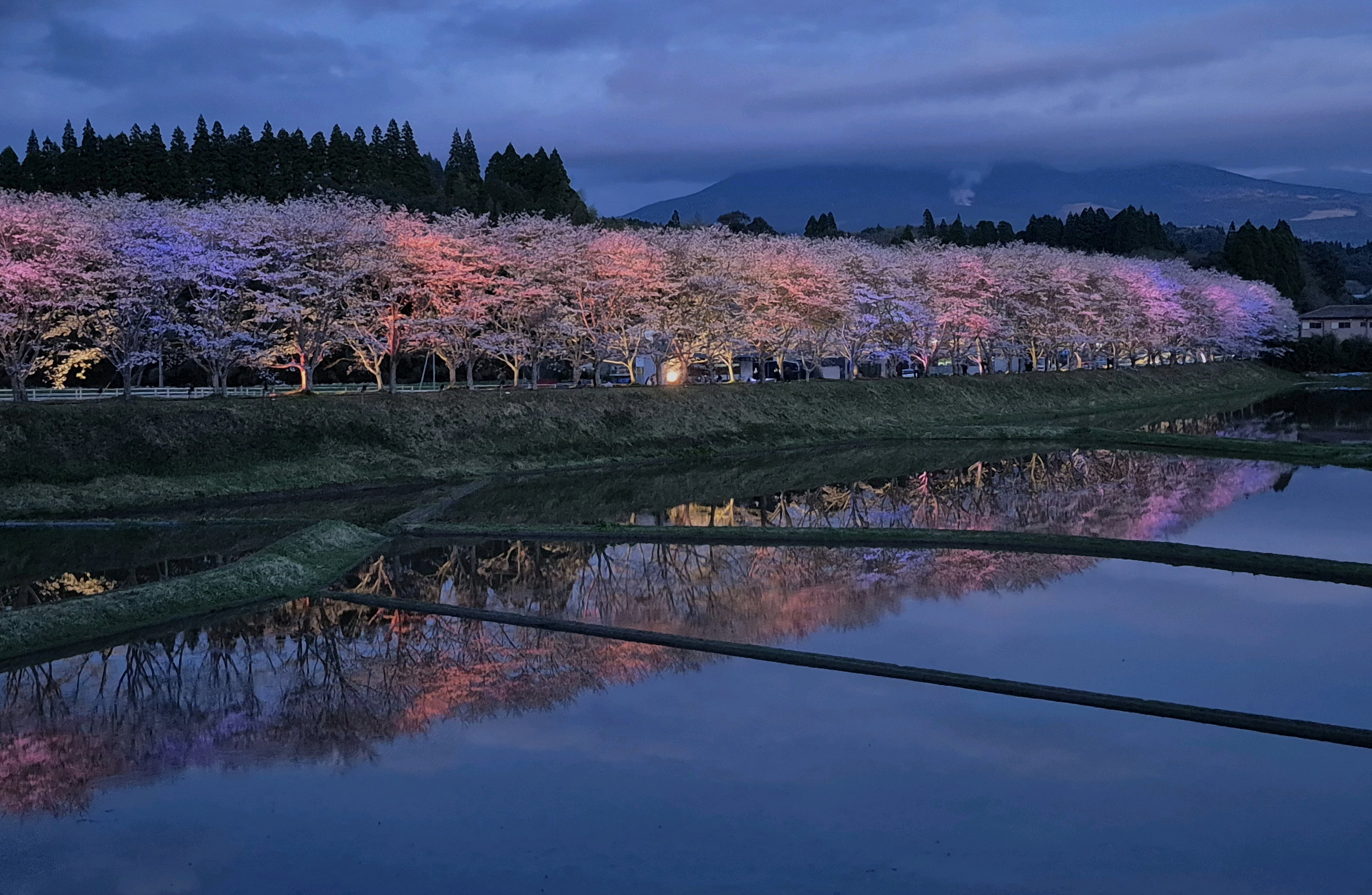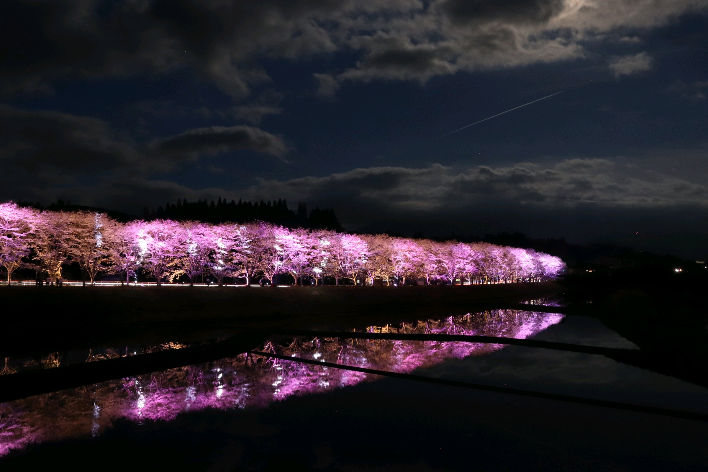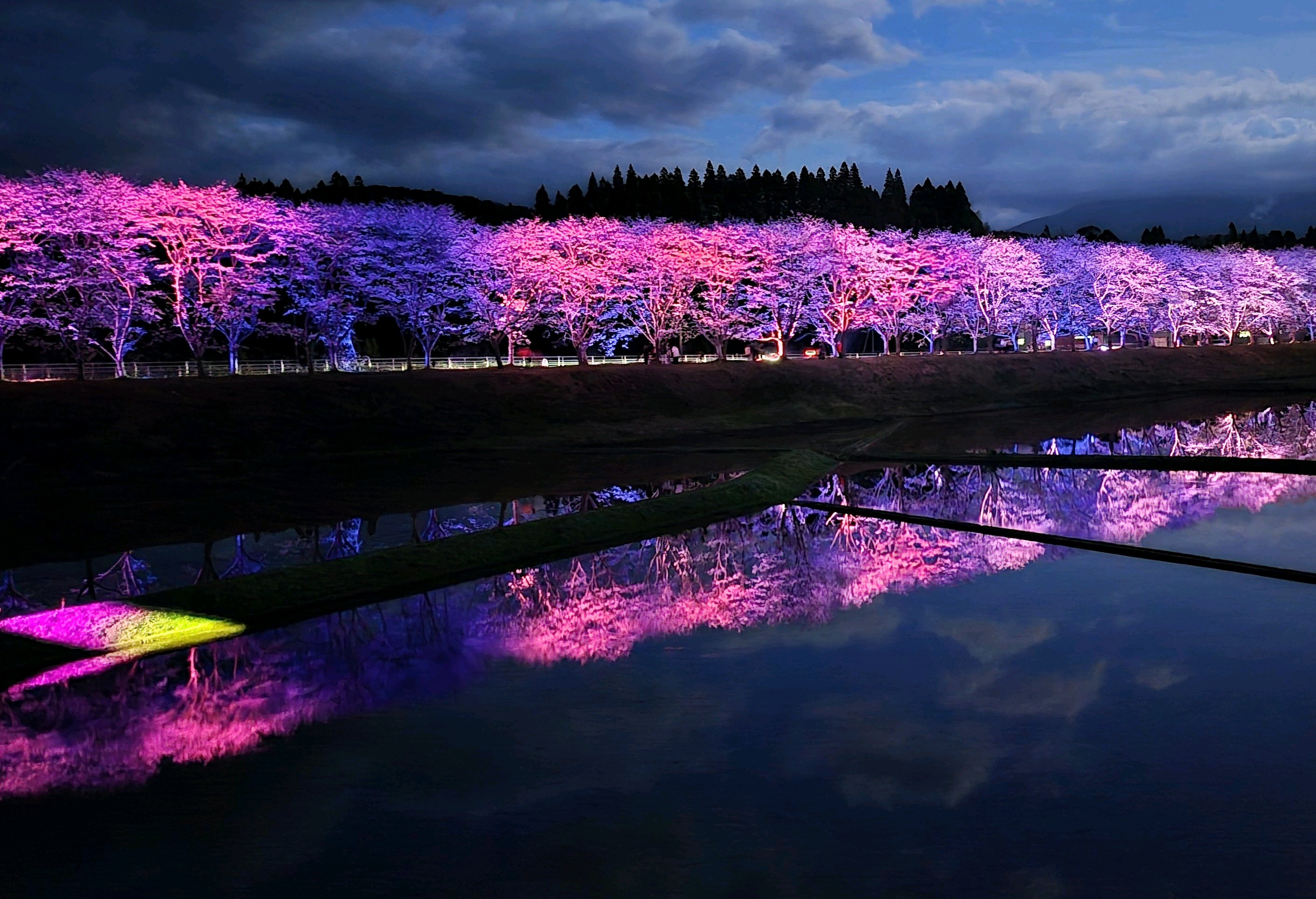 ムービングライトなども使われており、直ぐ近くの田んぼには水が張られライトアップを幻想的に映し出していました