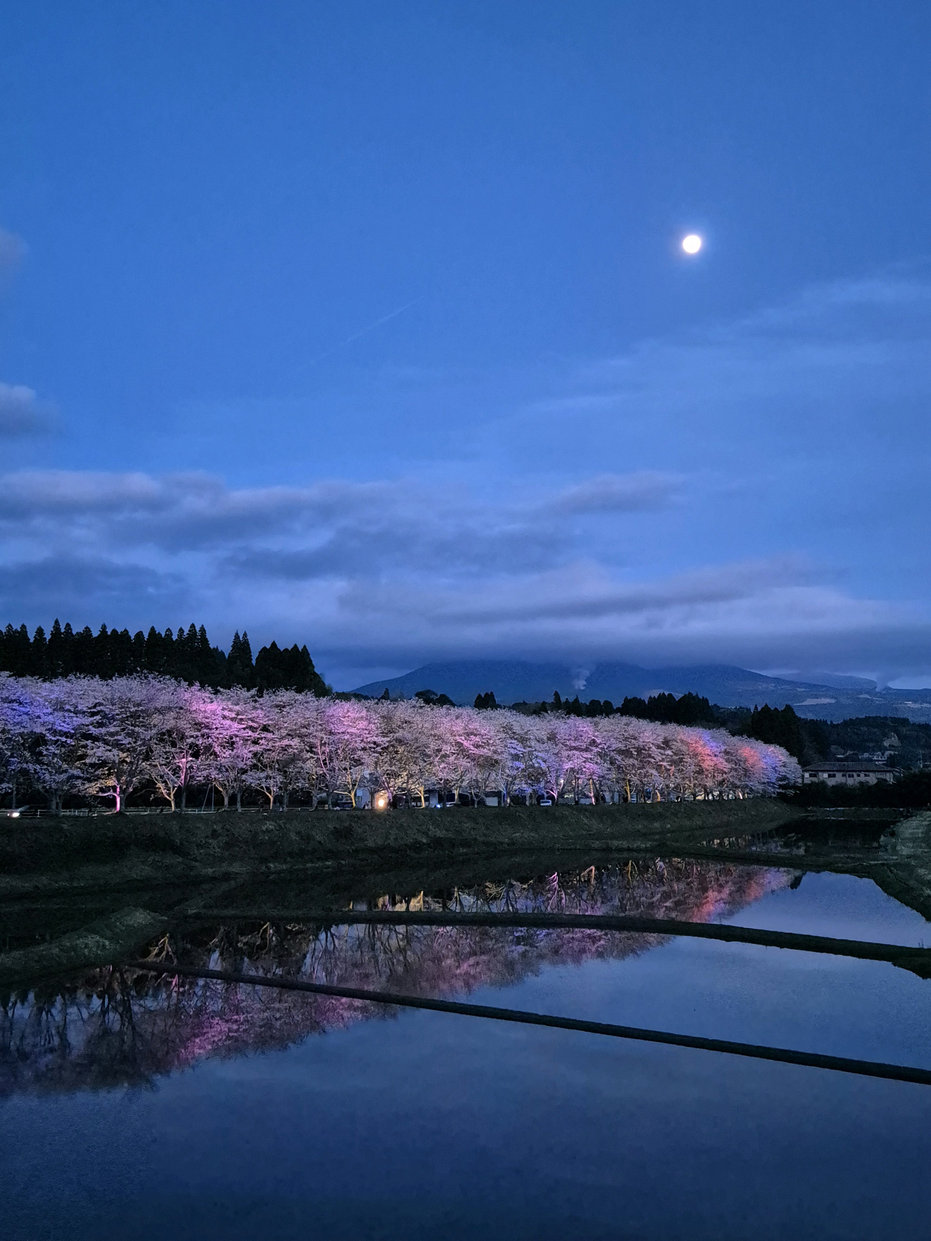 月が出ていたのでサクラと一緒に撮影