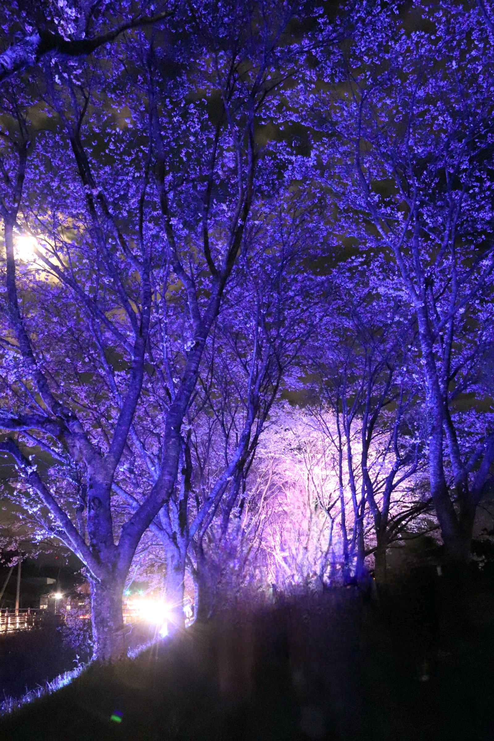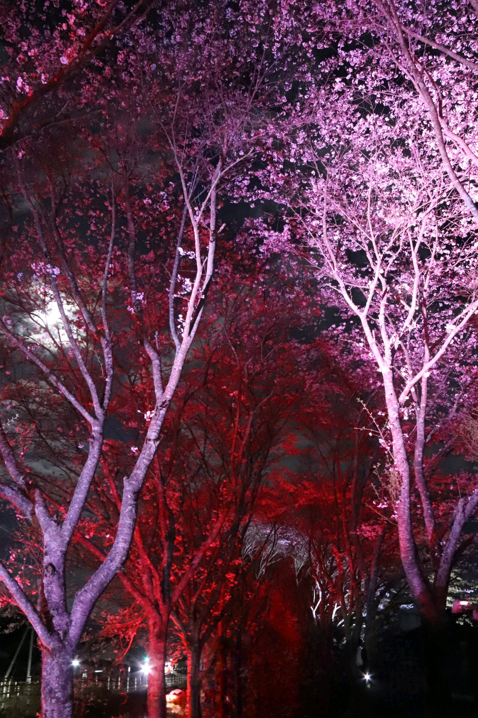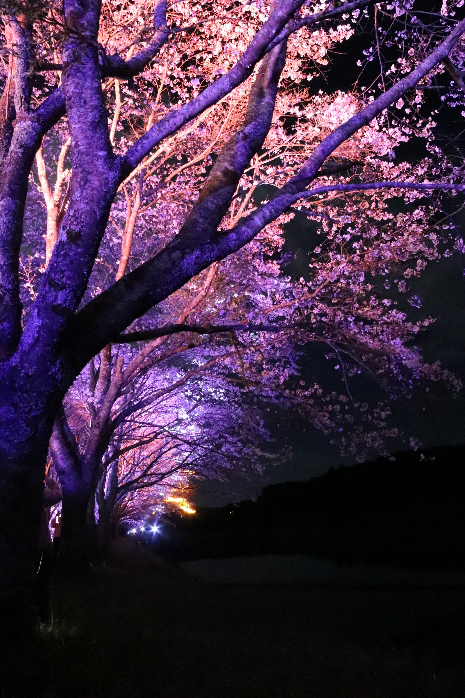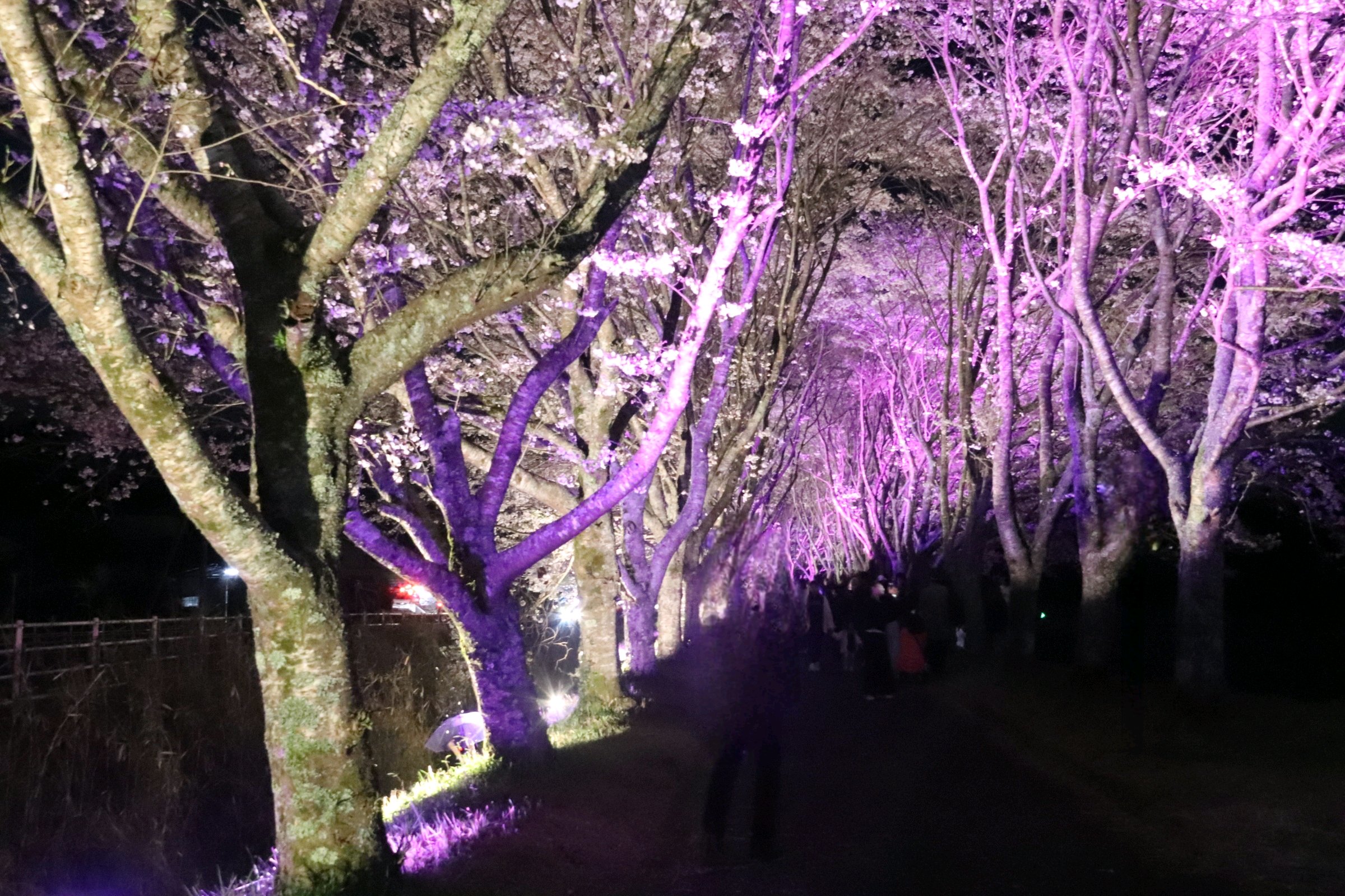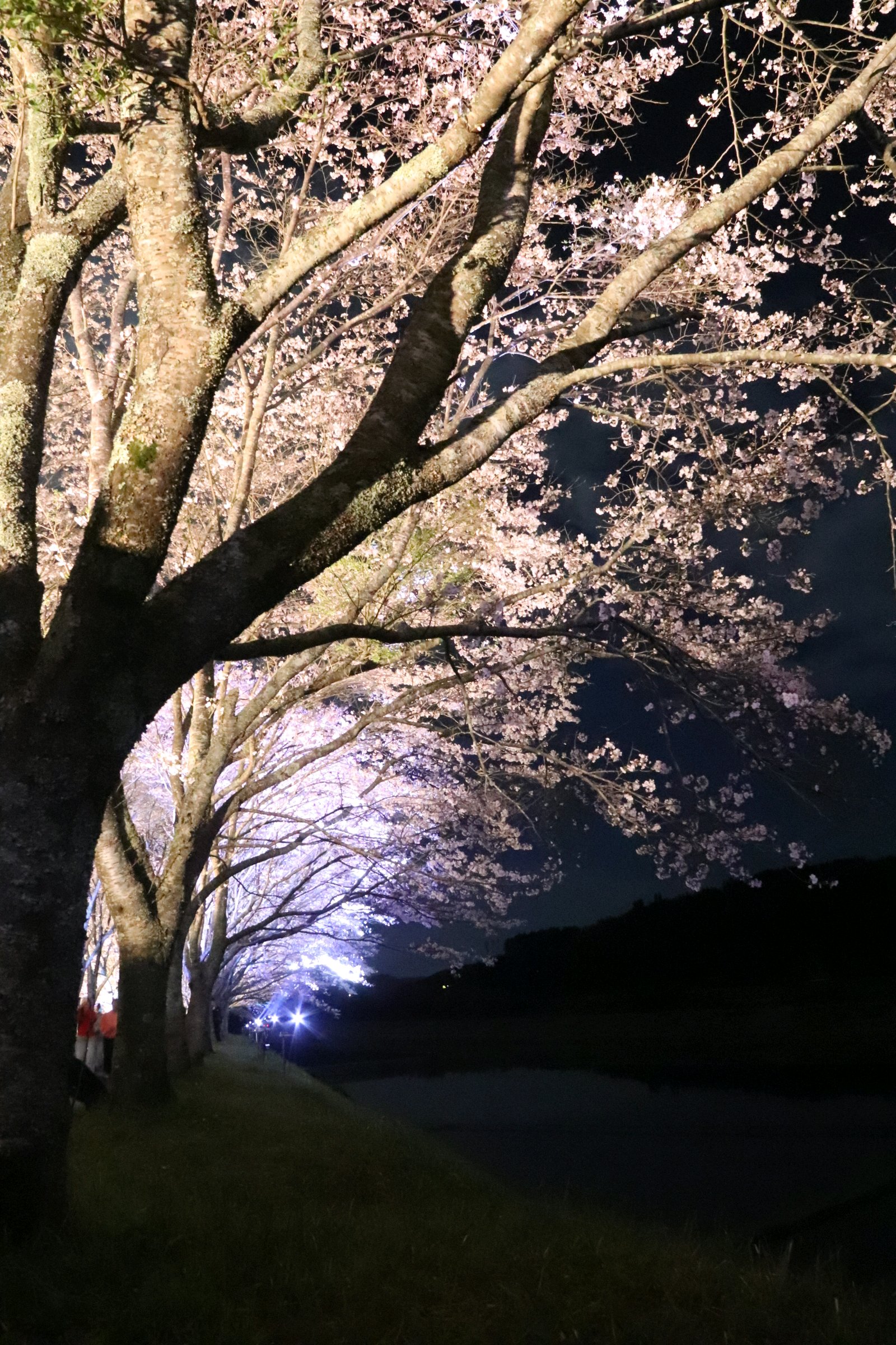 桜並木のライトアップが今夜までと言う事で、息子の運転する車でお出かけ