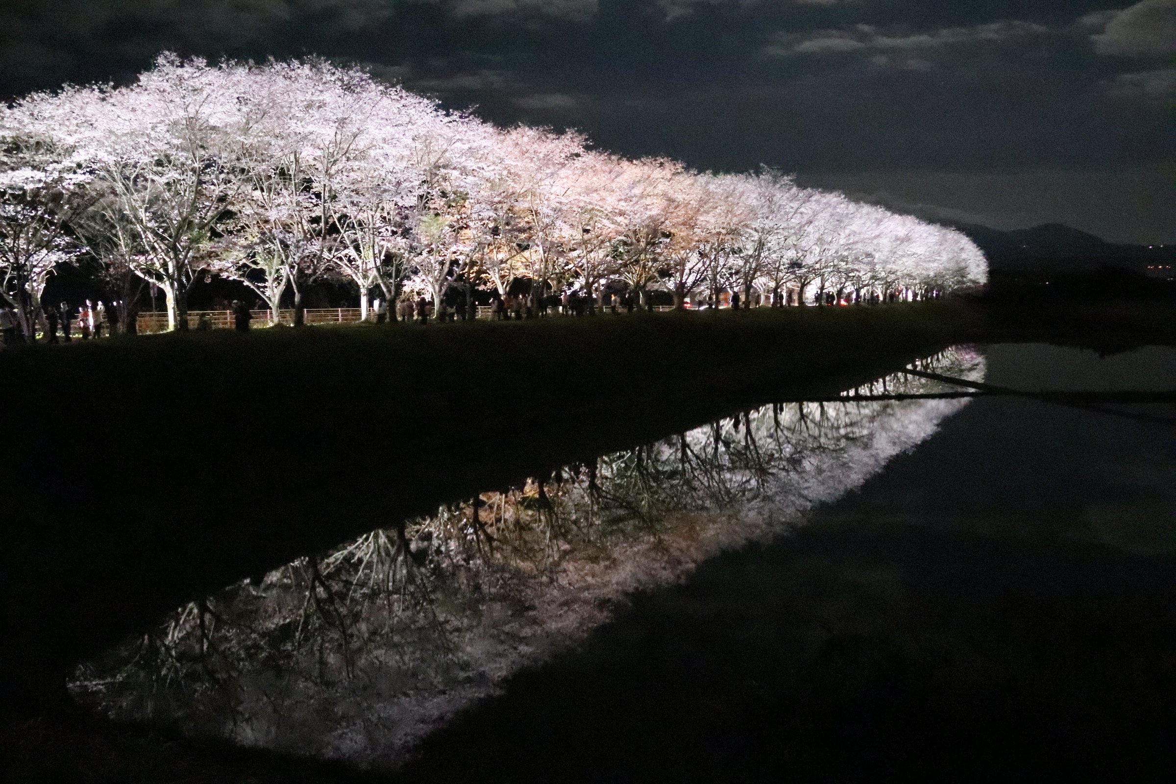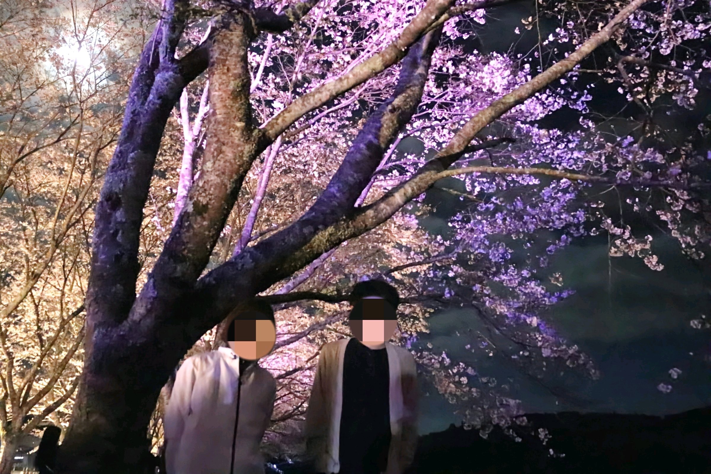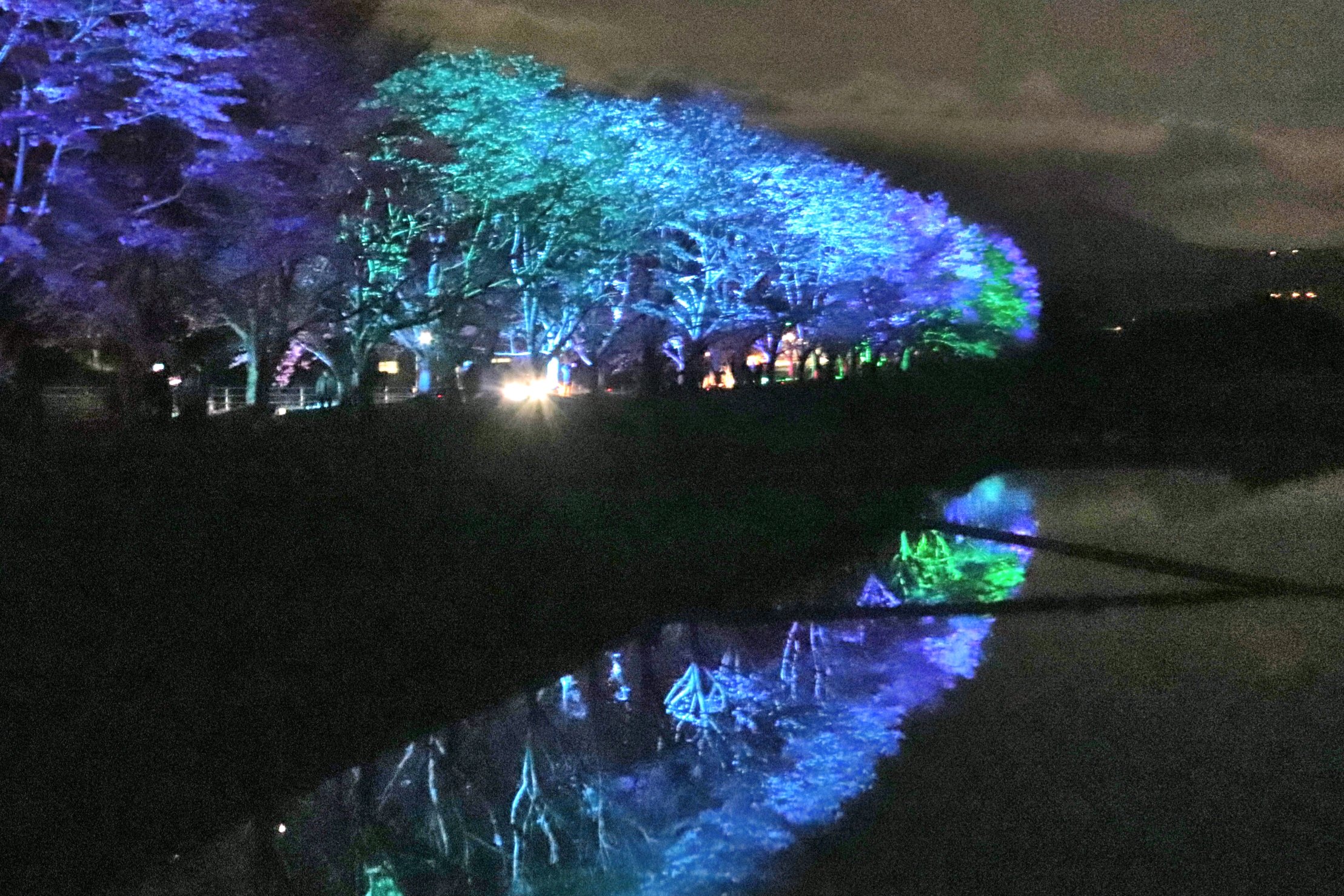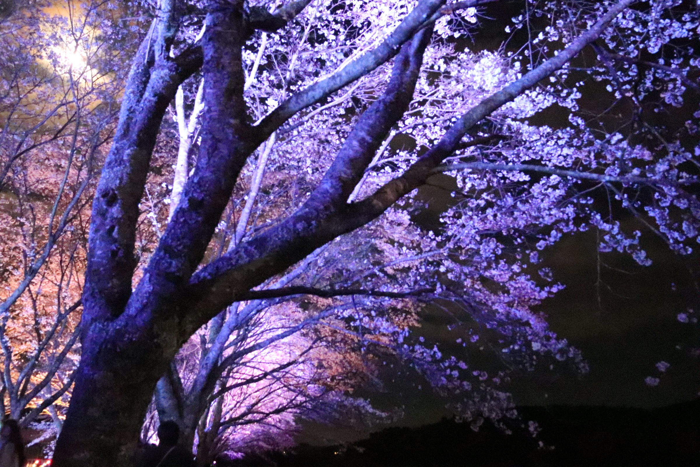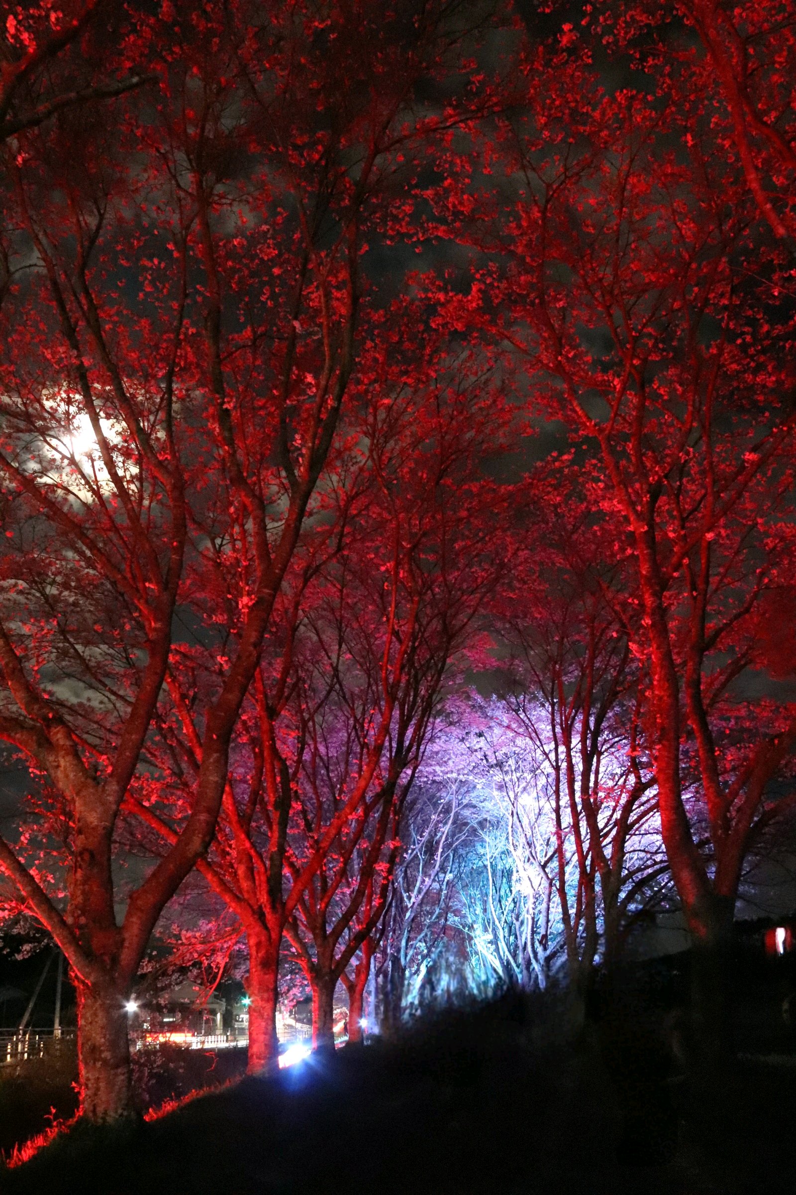 桜並木のライトアップが今夜までと言う事で、息子の運転する車でお出かけ