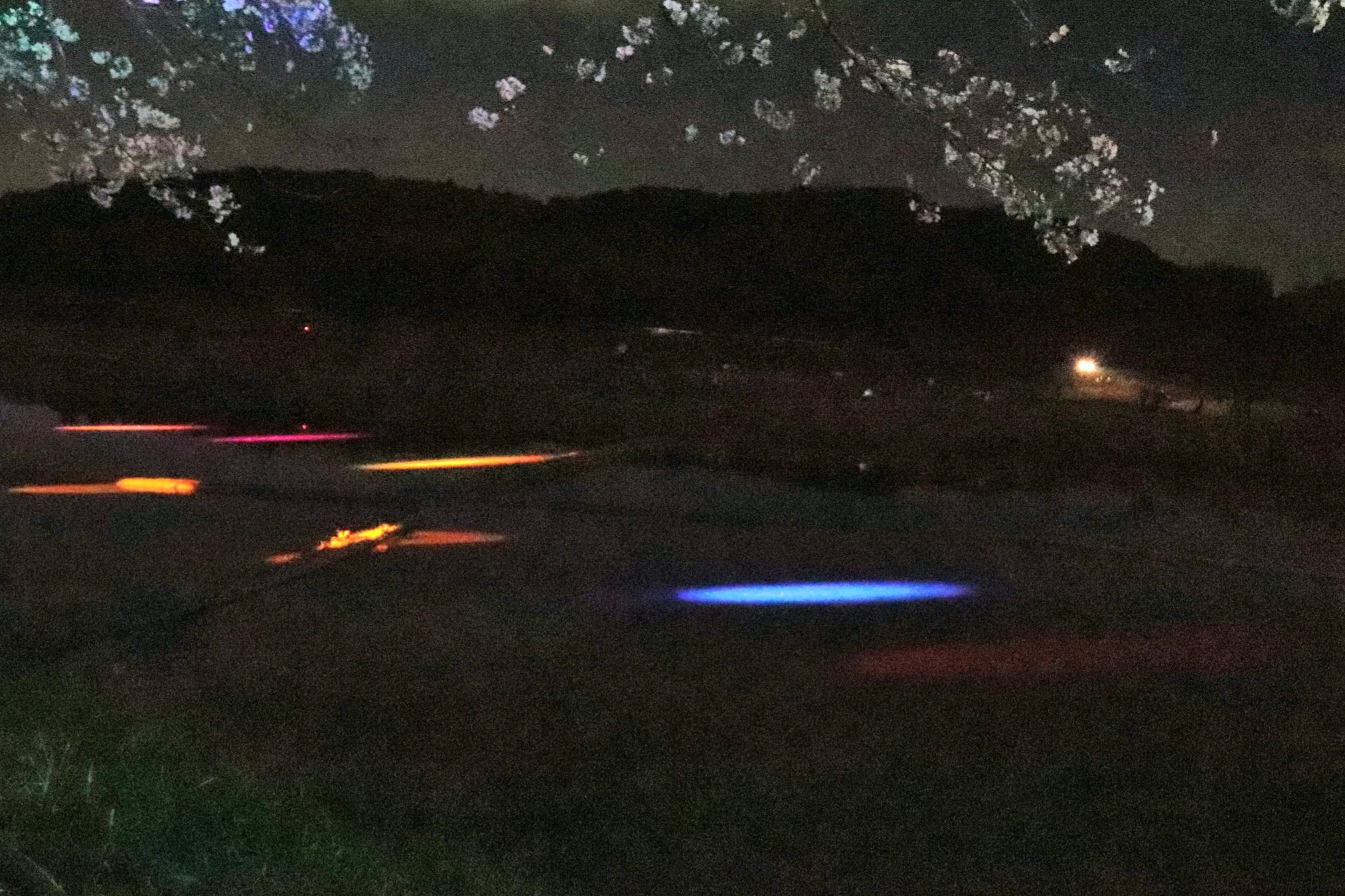 80本のソメイヨシノに40個のLEDライトがJR跡地に植えられています