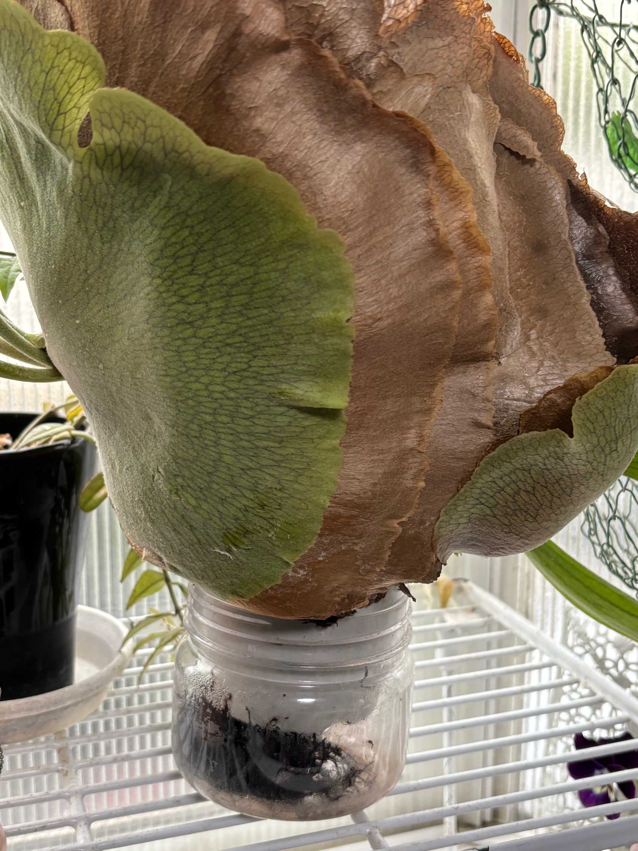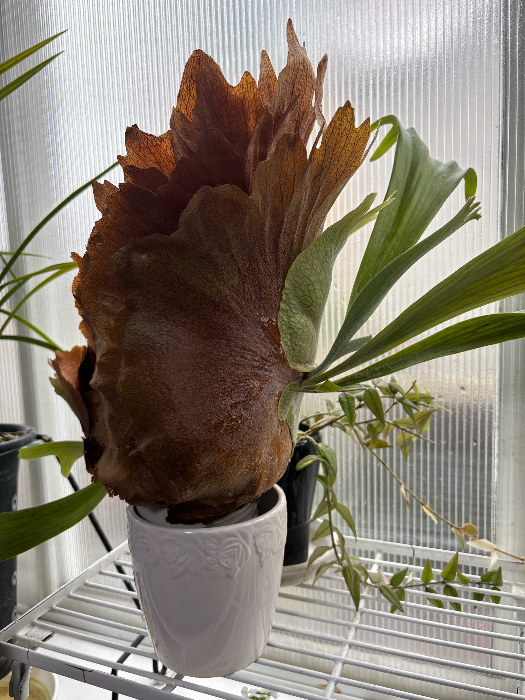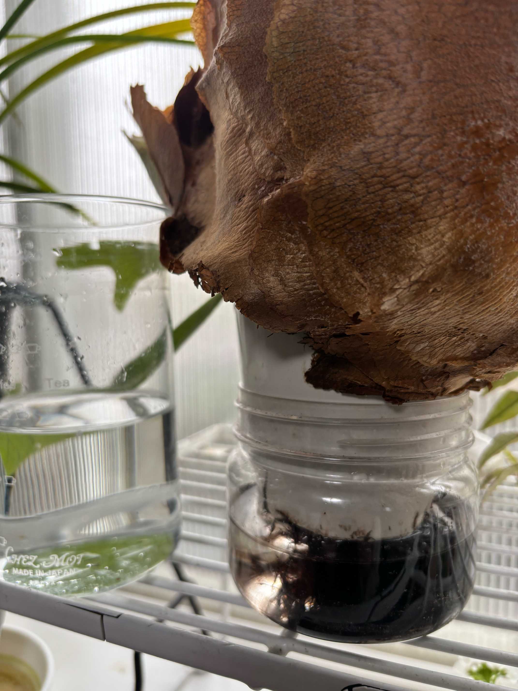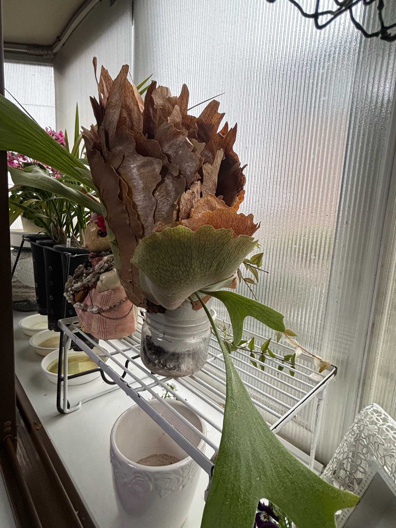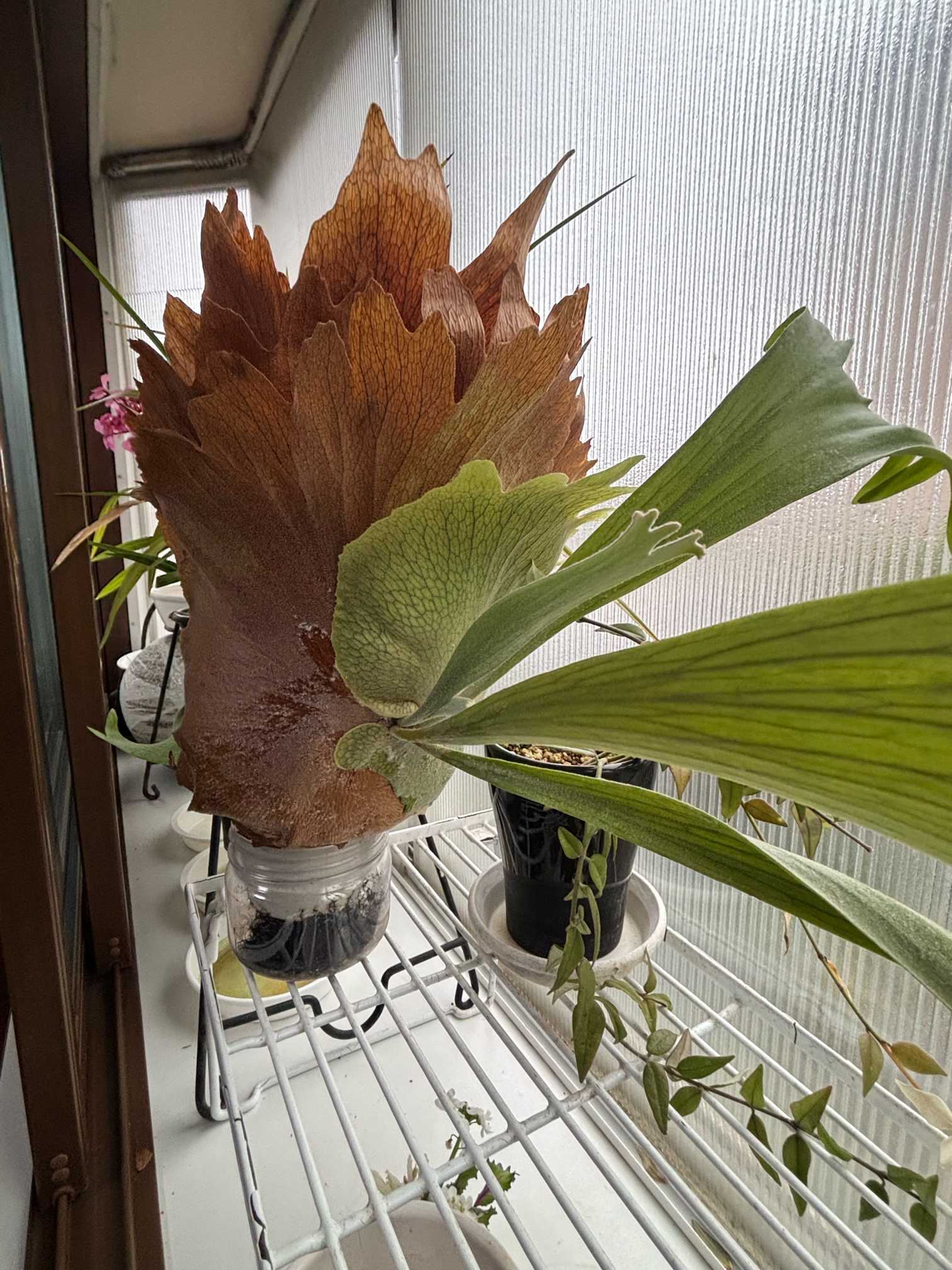 ビカクシダは、タイムラインでも何回か投稿してますが、購入時の小さな鉢を貯水葉が覆ってしまい、植え替えするにもどうしたらいいか悩んで、水耕栽培にしました。