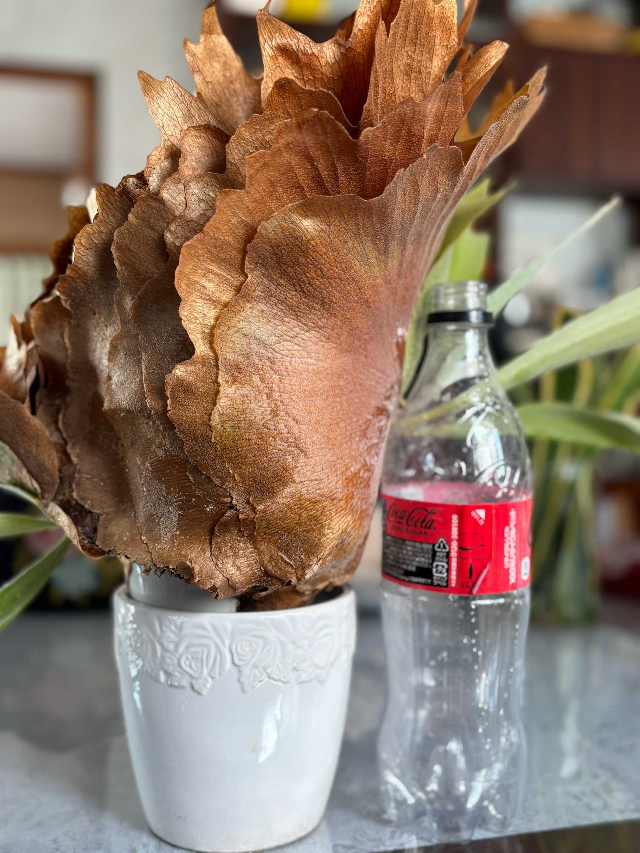 ビカクシダの容器に、500ミリリットルの半分以下の粉末液肥➕添加液肥を溶かしたのを入れました。