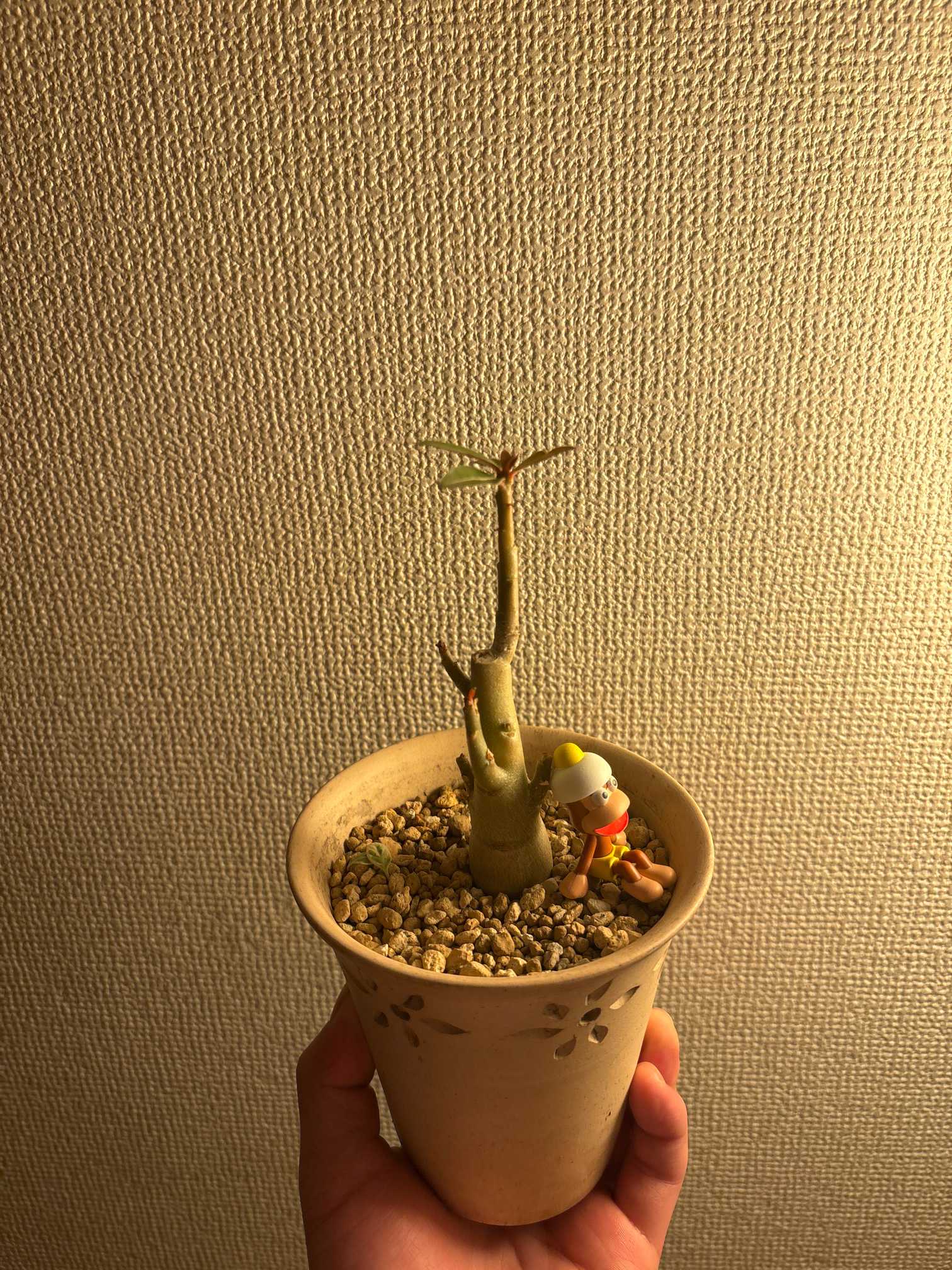 日当たりは午前中3〜4時間しか良くないので室内で育成ライトが1番当たるところに置いてるんですが、アデニウムは外で育てた方がもりもり育つっていいますよね。