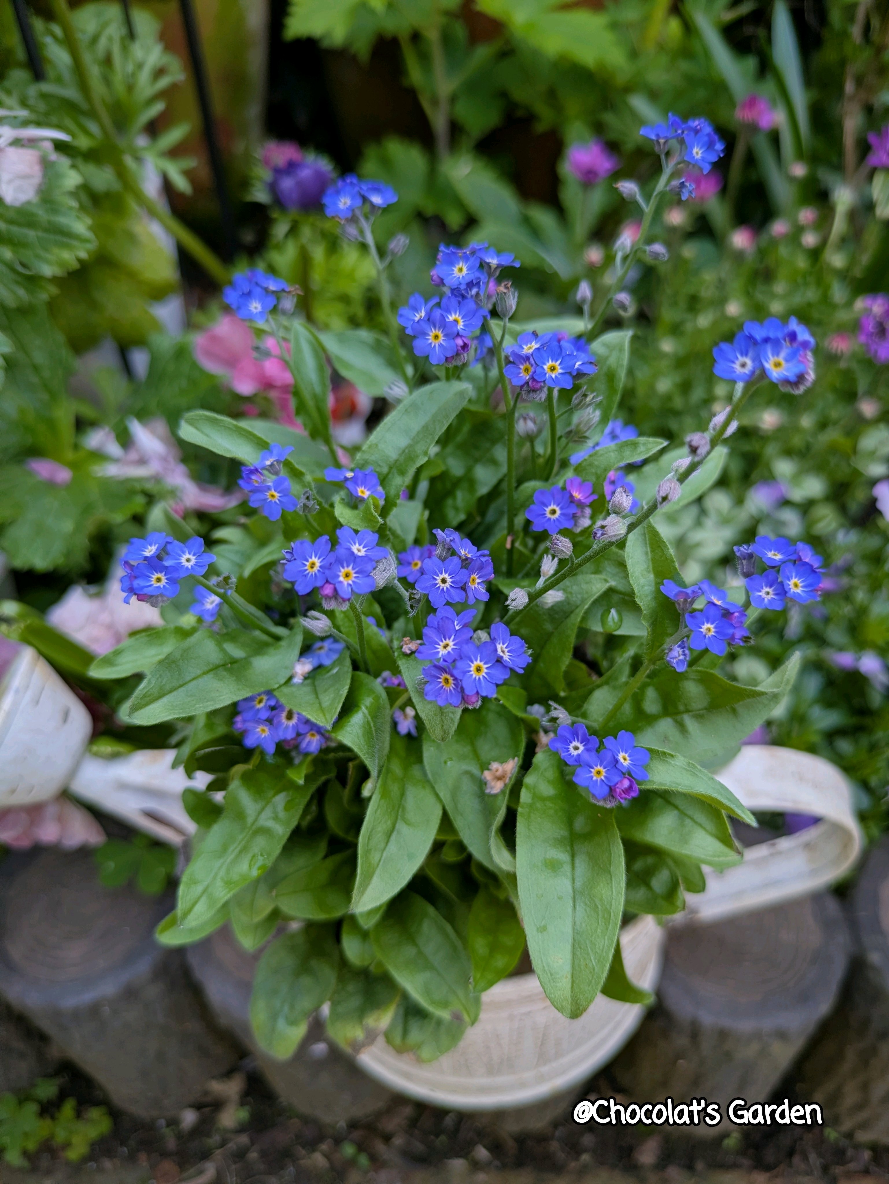 小さな花壇にはネモフィラや矢車草等種蒔きっ子をたくさん植え込みました