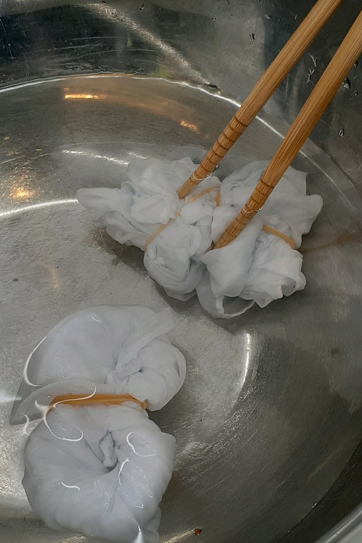 焼きミョウバンを溶かした湯に布を15分程度つける