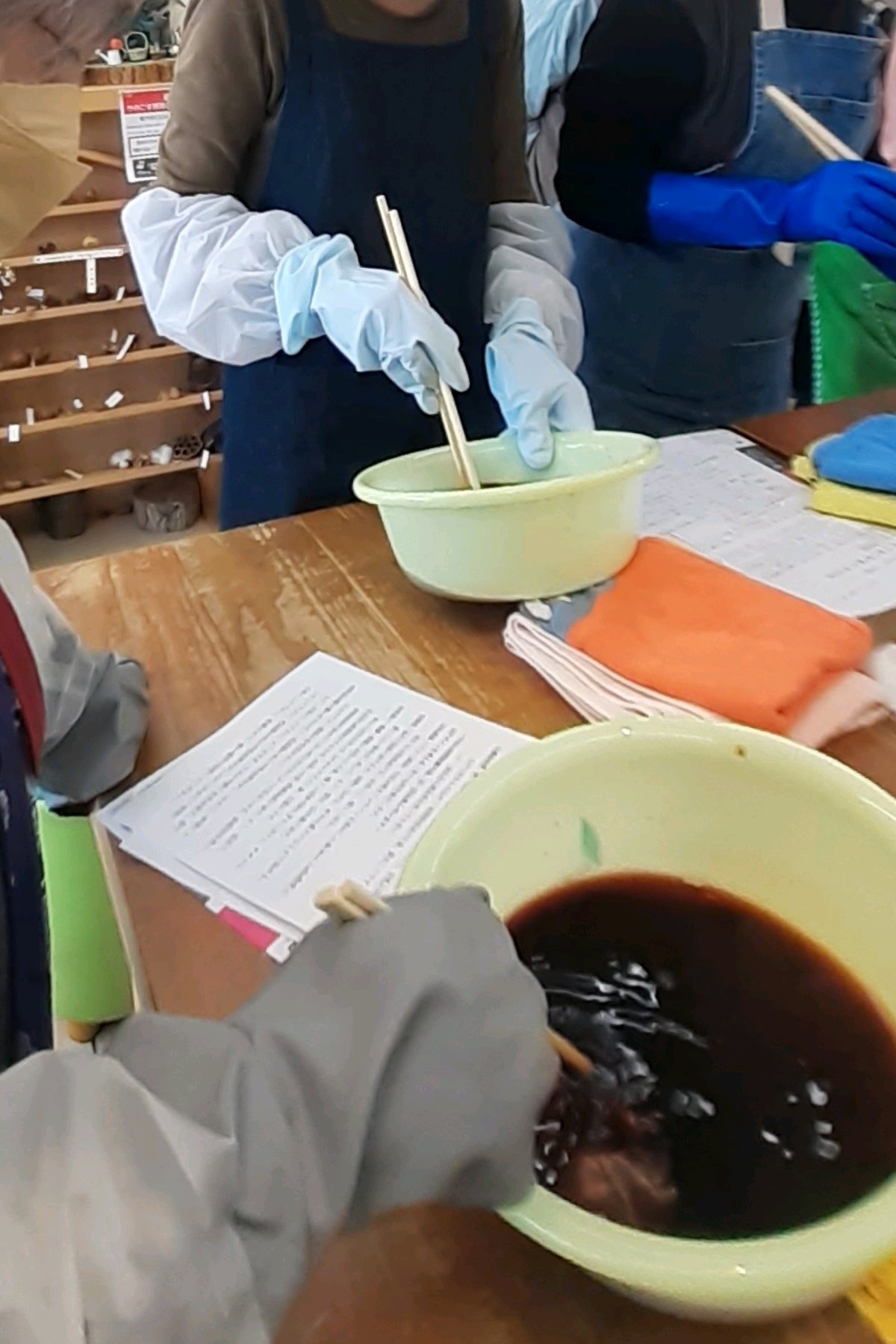桜を惜しみこの春の草木染め講習会は桜の枝を染液にして開催されました🌸