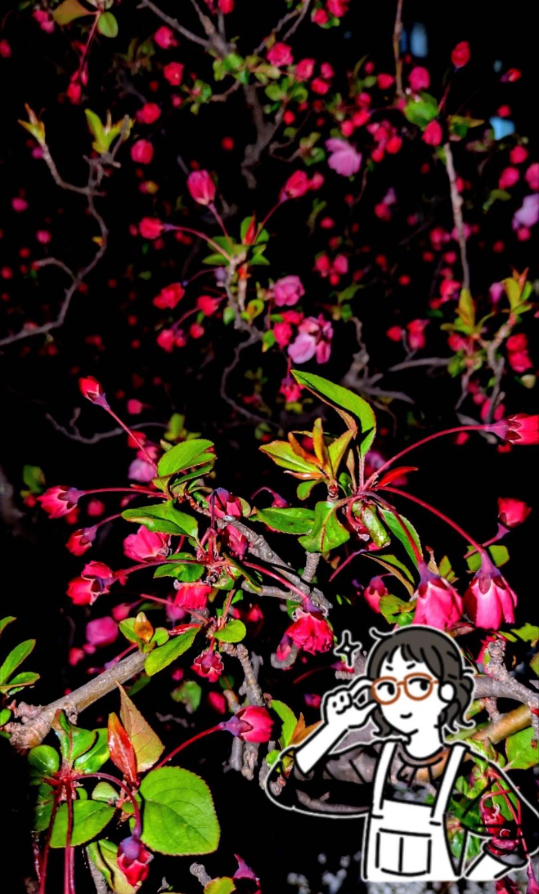 花海棠は蕾の頃、それも夜が良いんです。