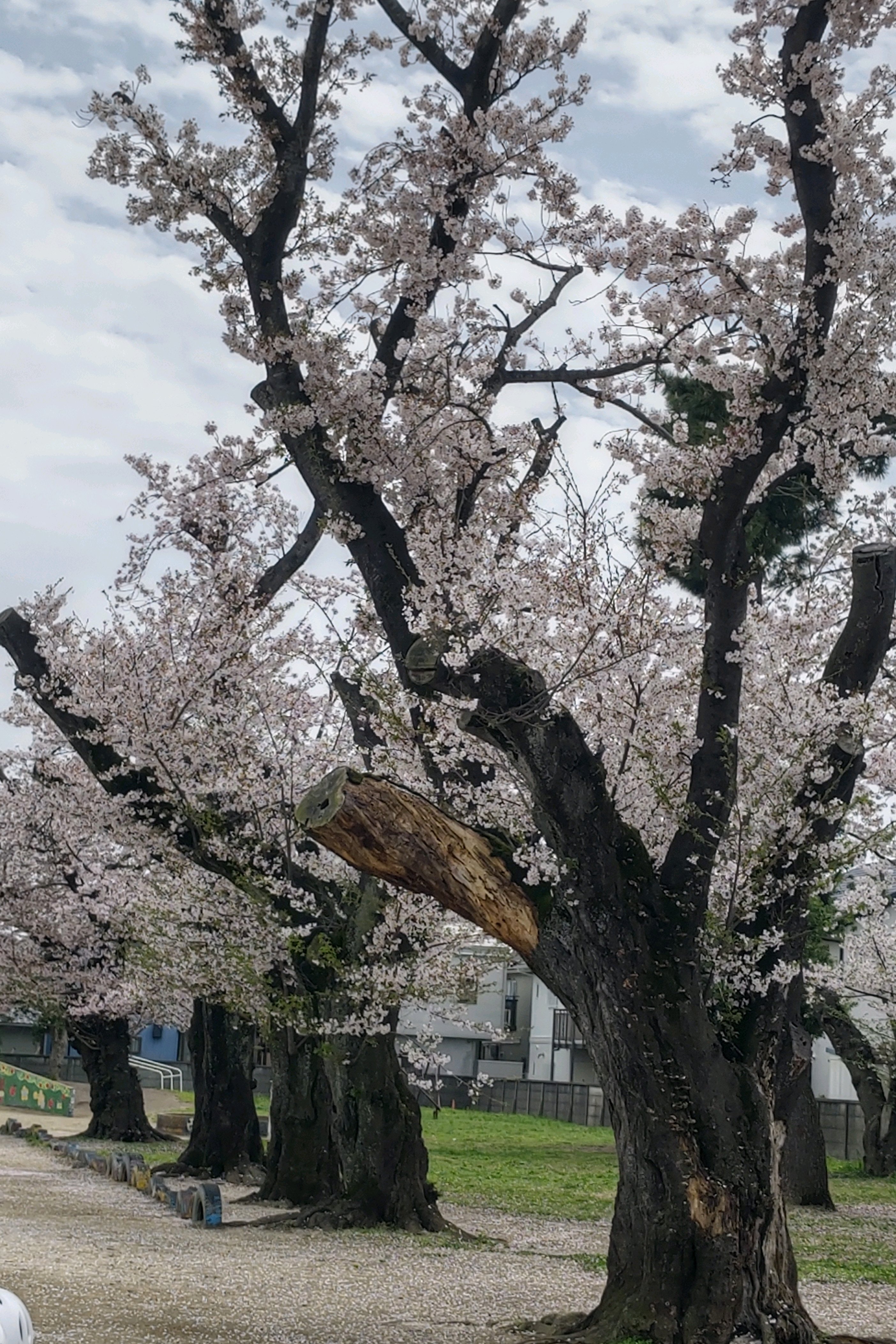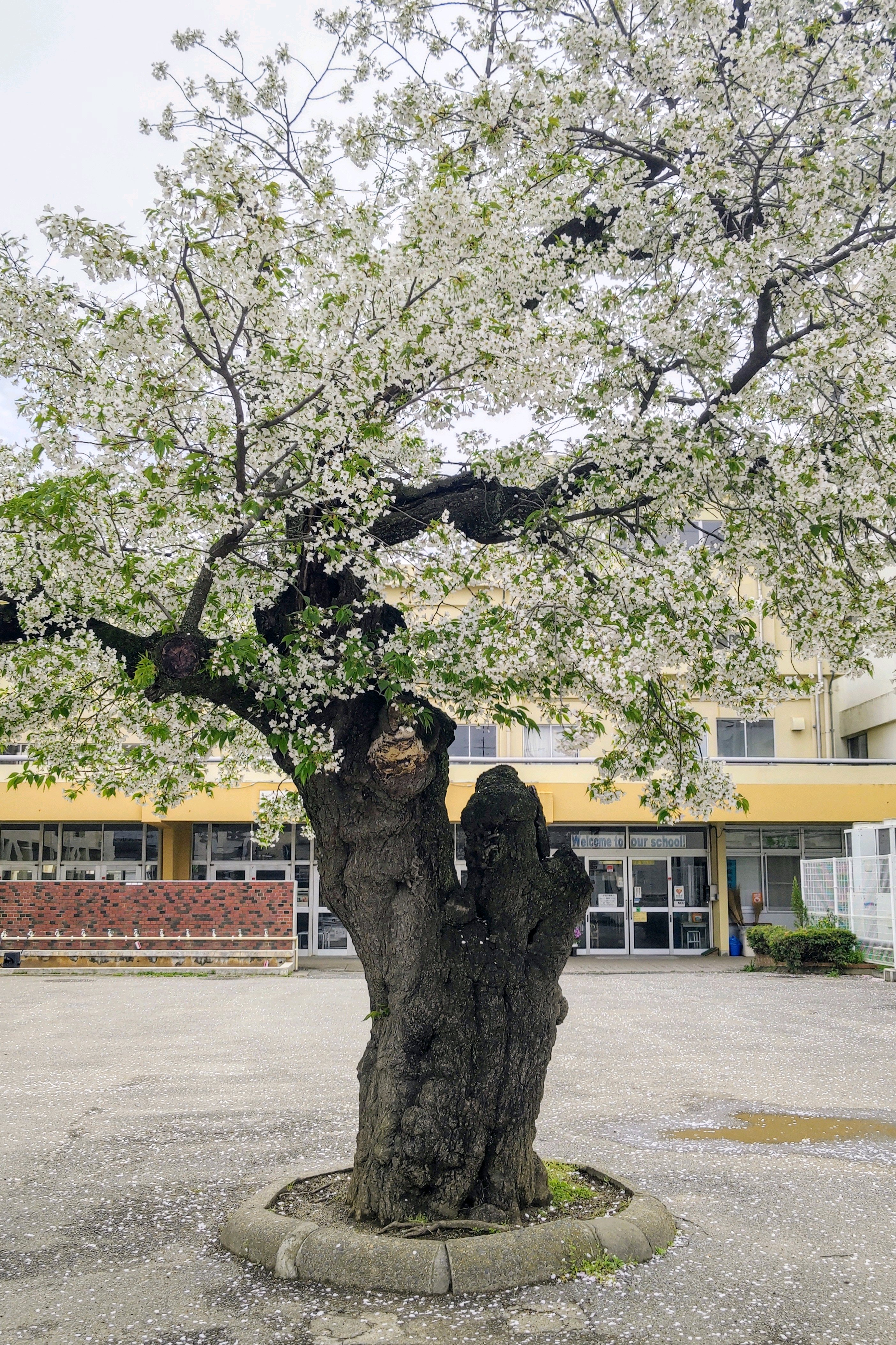 小学校のシンボルツリー、オオシマザクラ💚🤍💚🤍💚🤍💚🤍💚