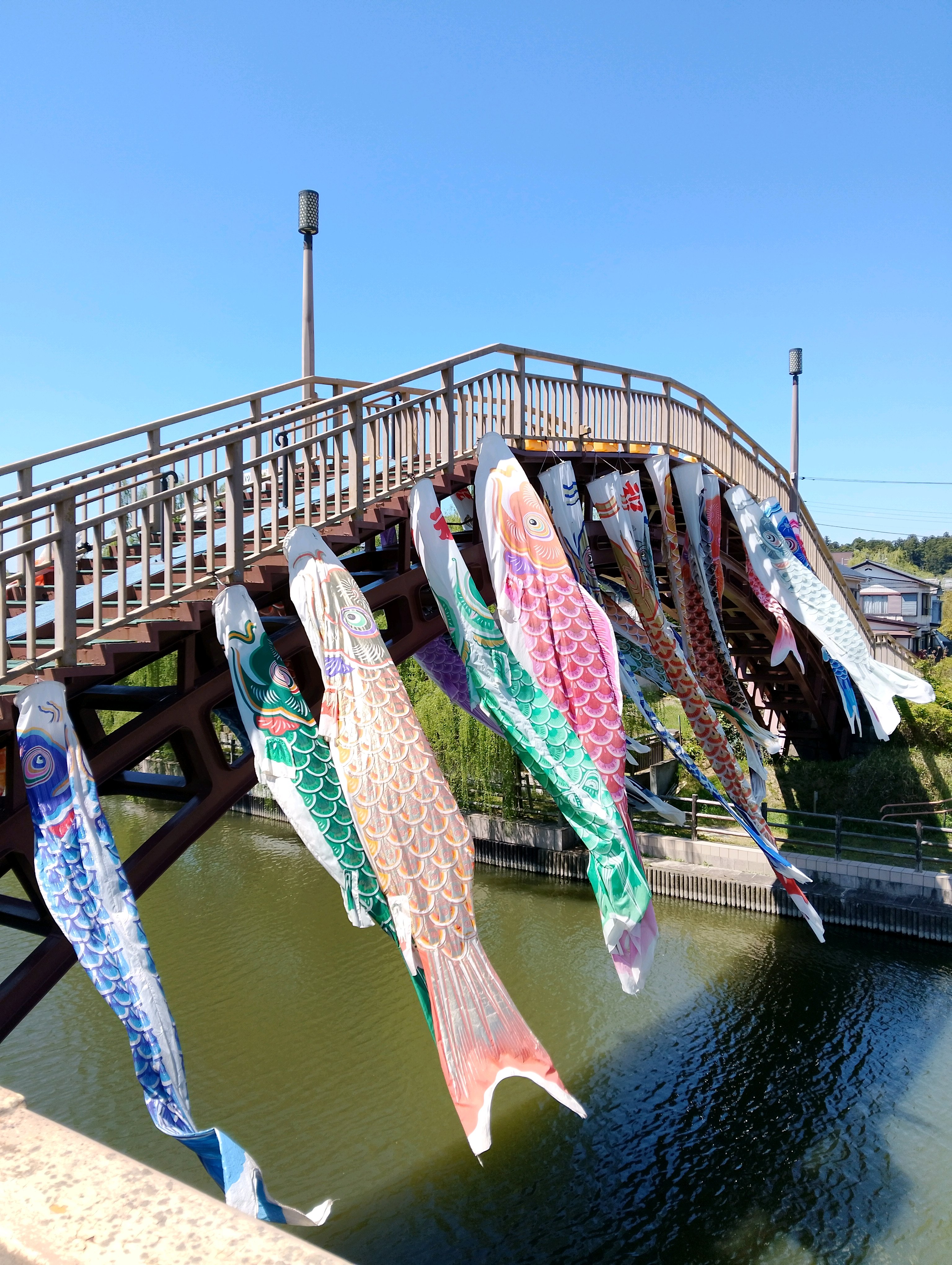 水郷あやめ園で鯉のぼりが風に揺られていました