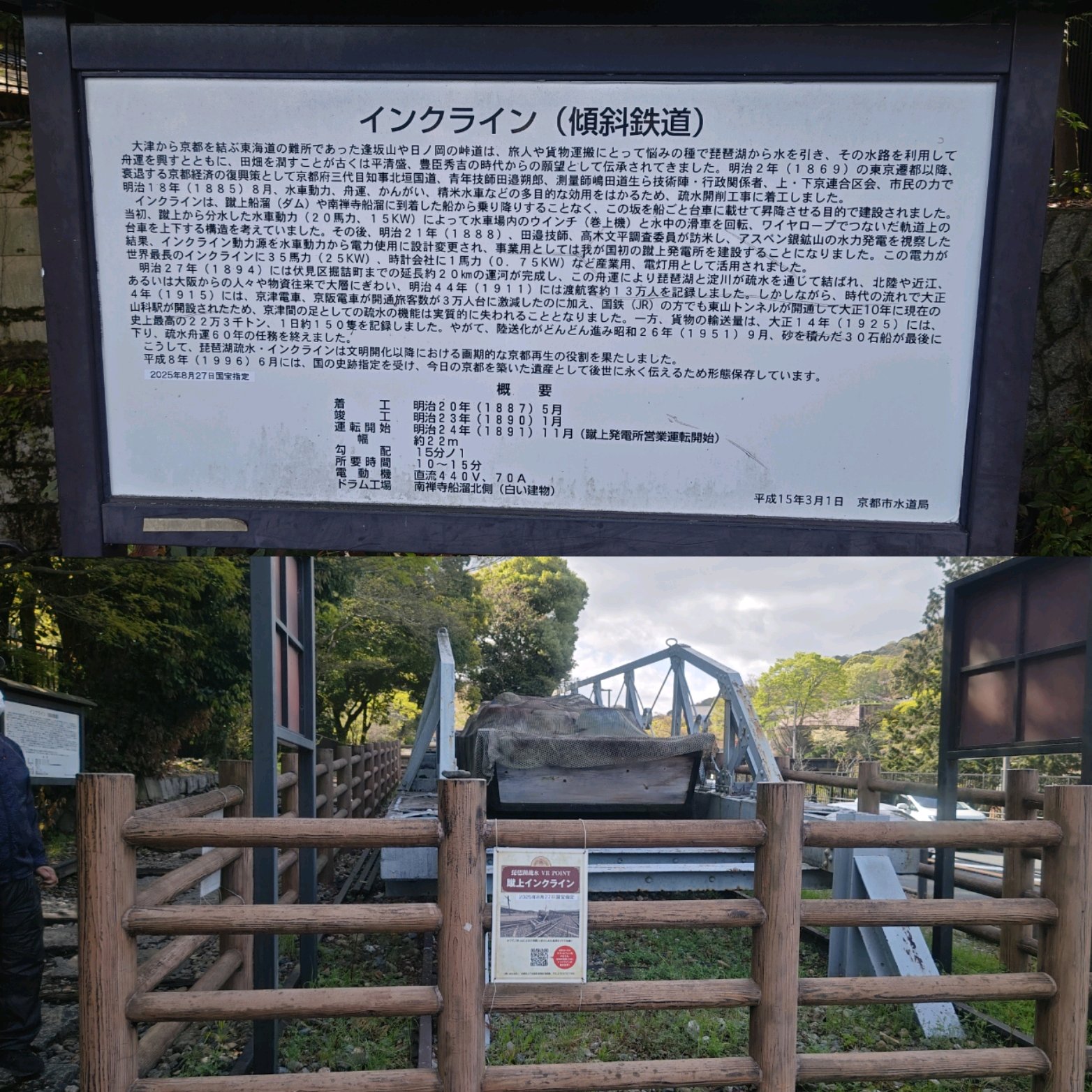 琵琶湖疏水の途中、高低差のある場所で大きな荷物を積んだ舟を台車に乗せて運んだ傾斜鉄道跡地。