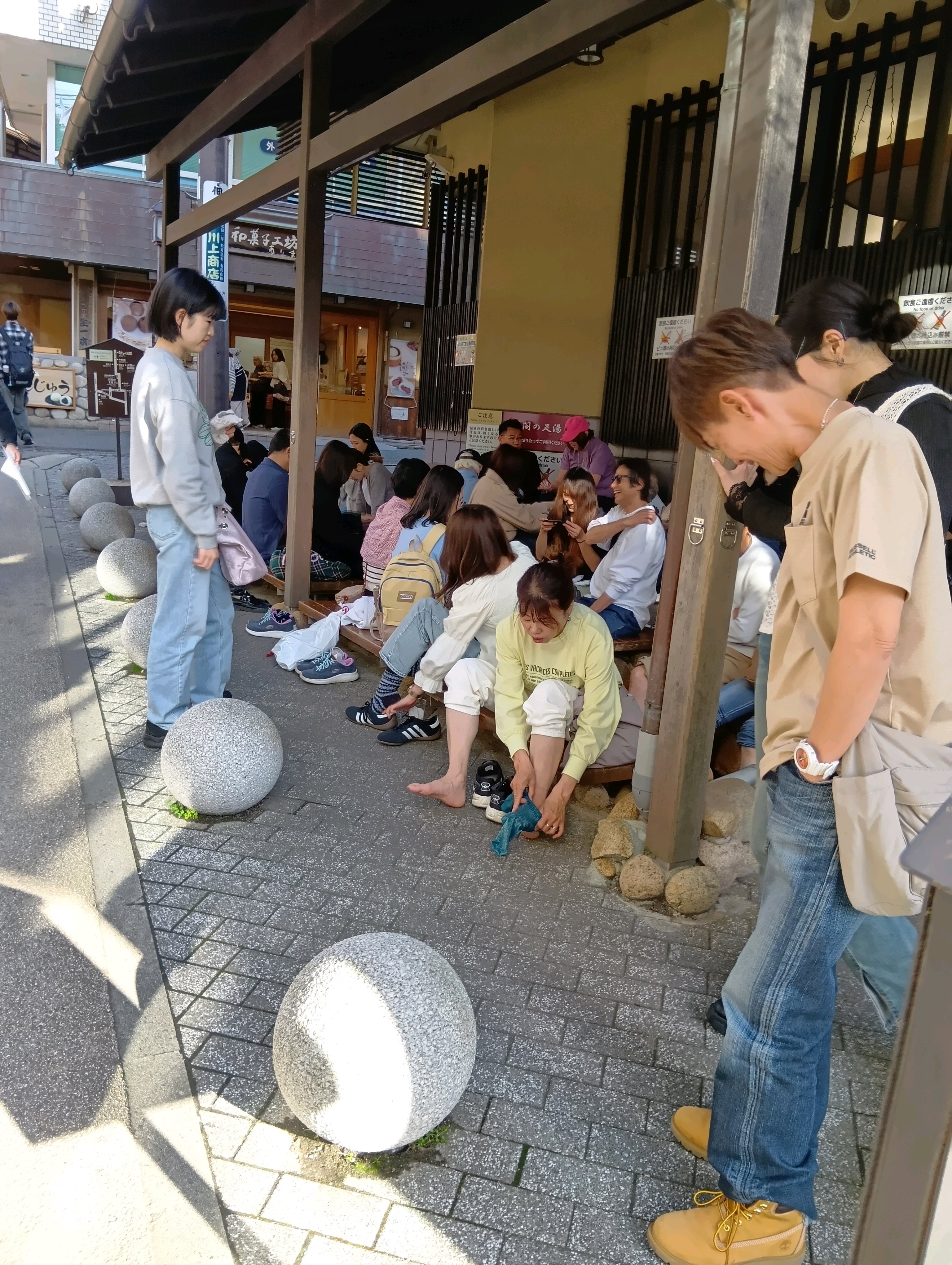 沢山の観光客で 足湯も賑わっていました♨