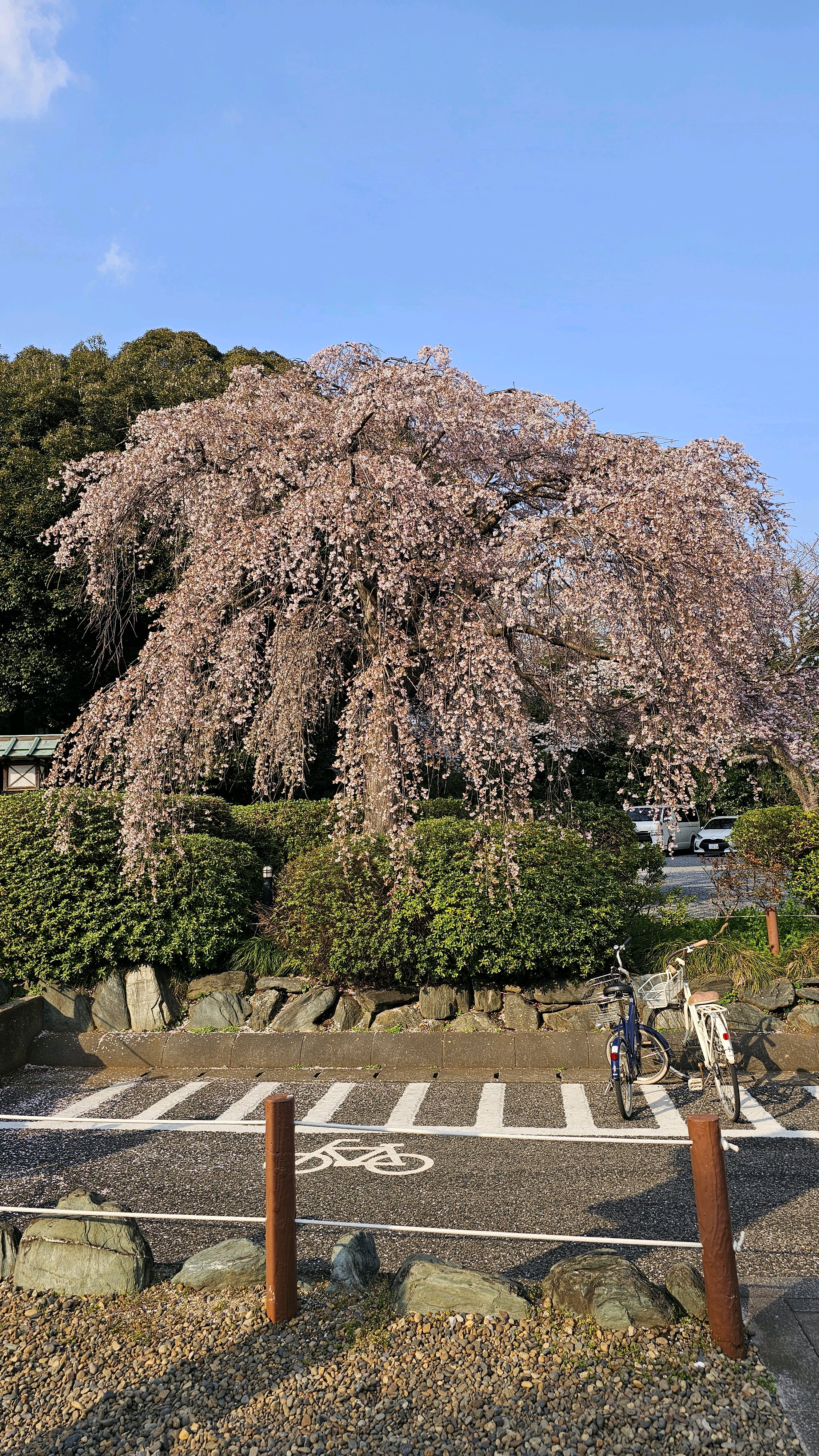 入り口の大きな枝垂れ桜