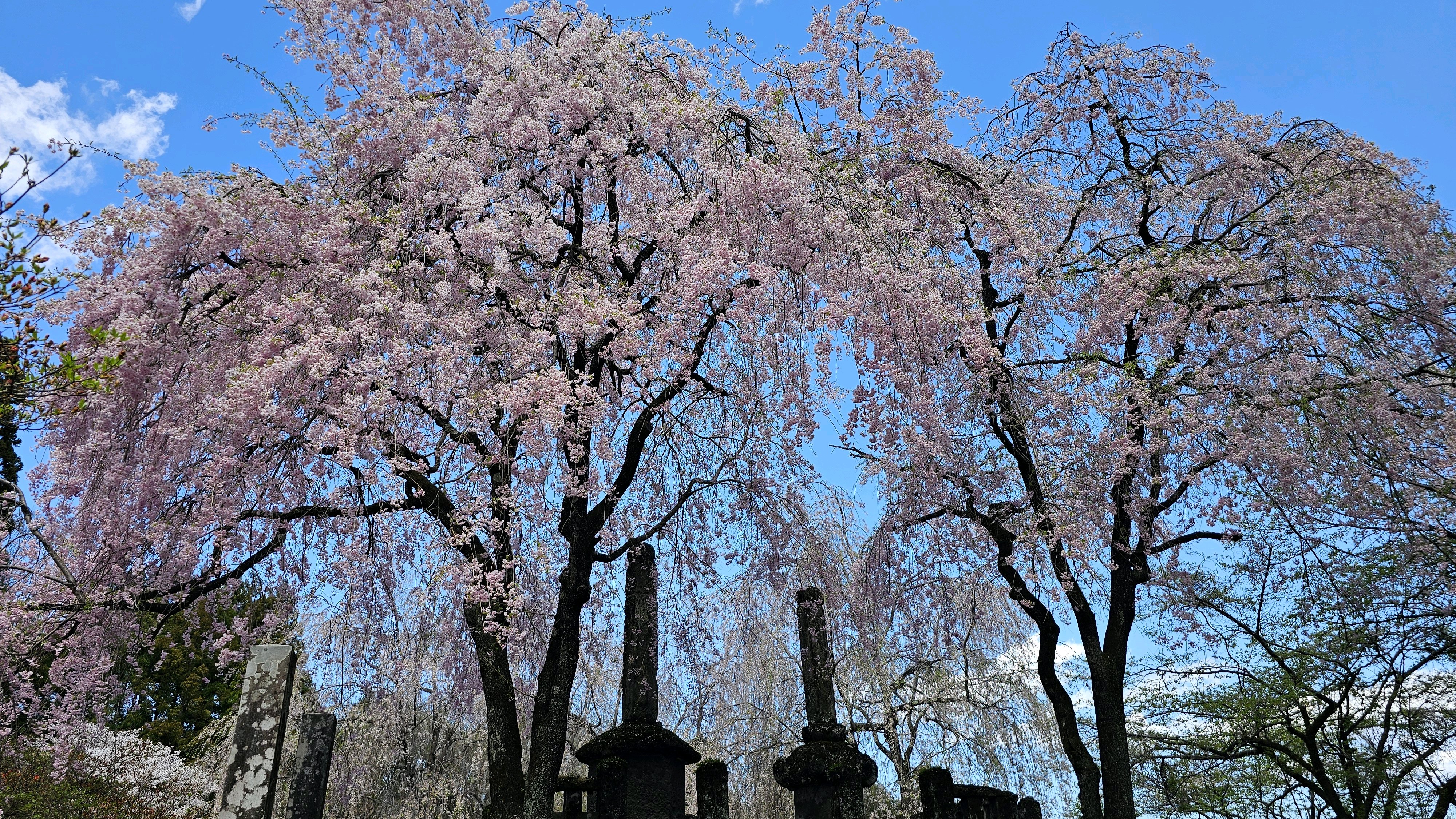 二本並んだ枝垂れ桜