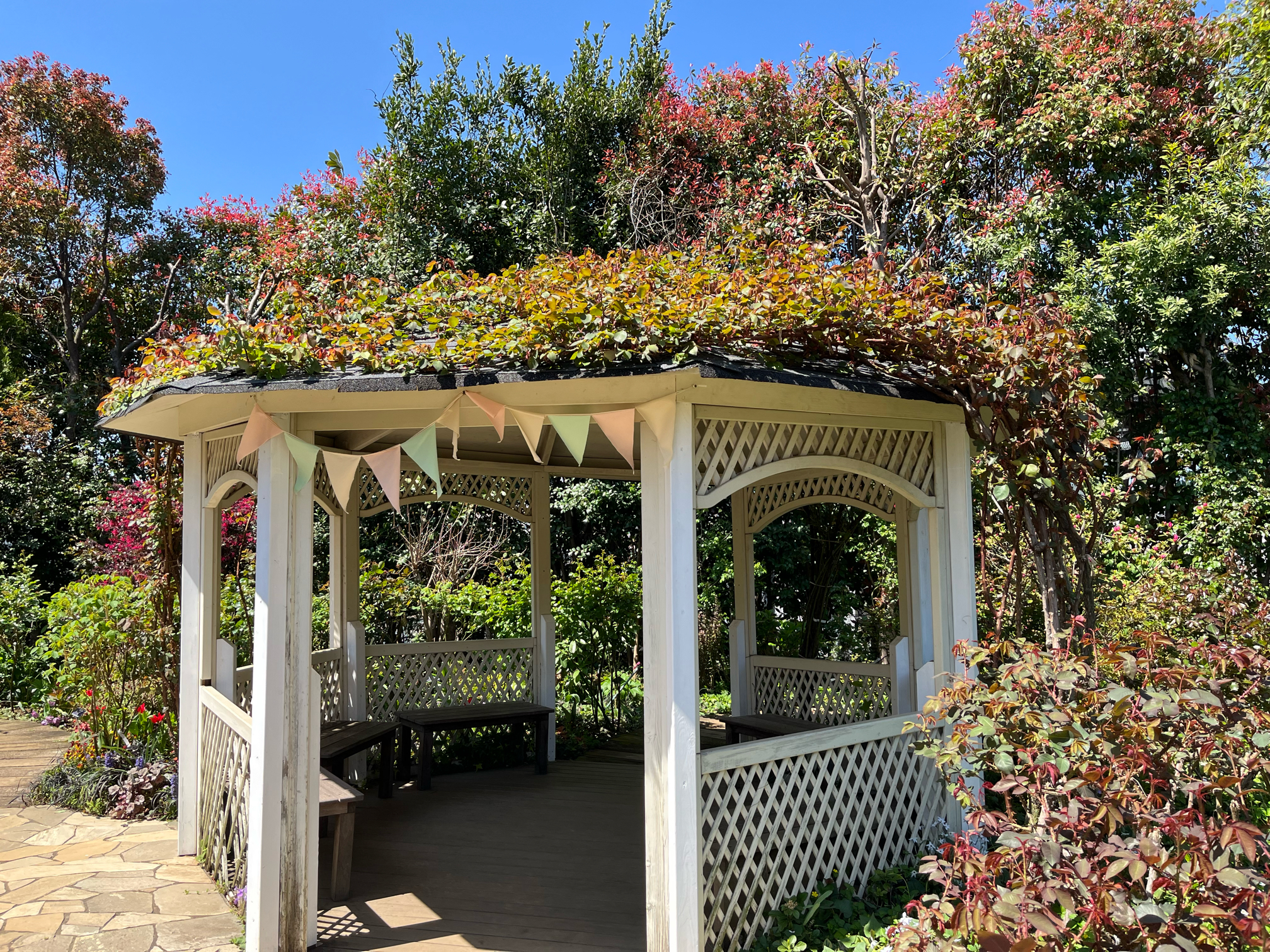 素敵なガゼボがありました。つるバラに覆われたら綺麗でしょうね