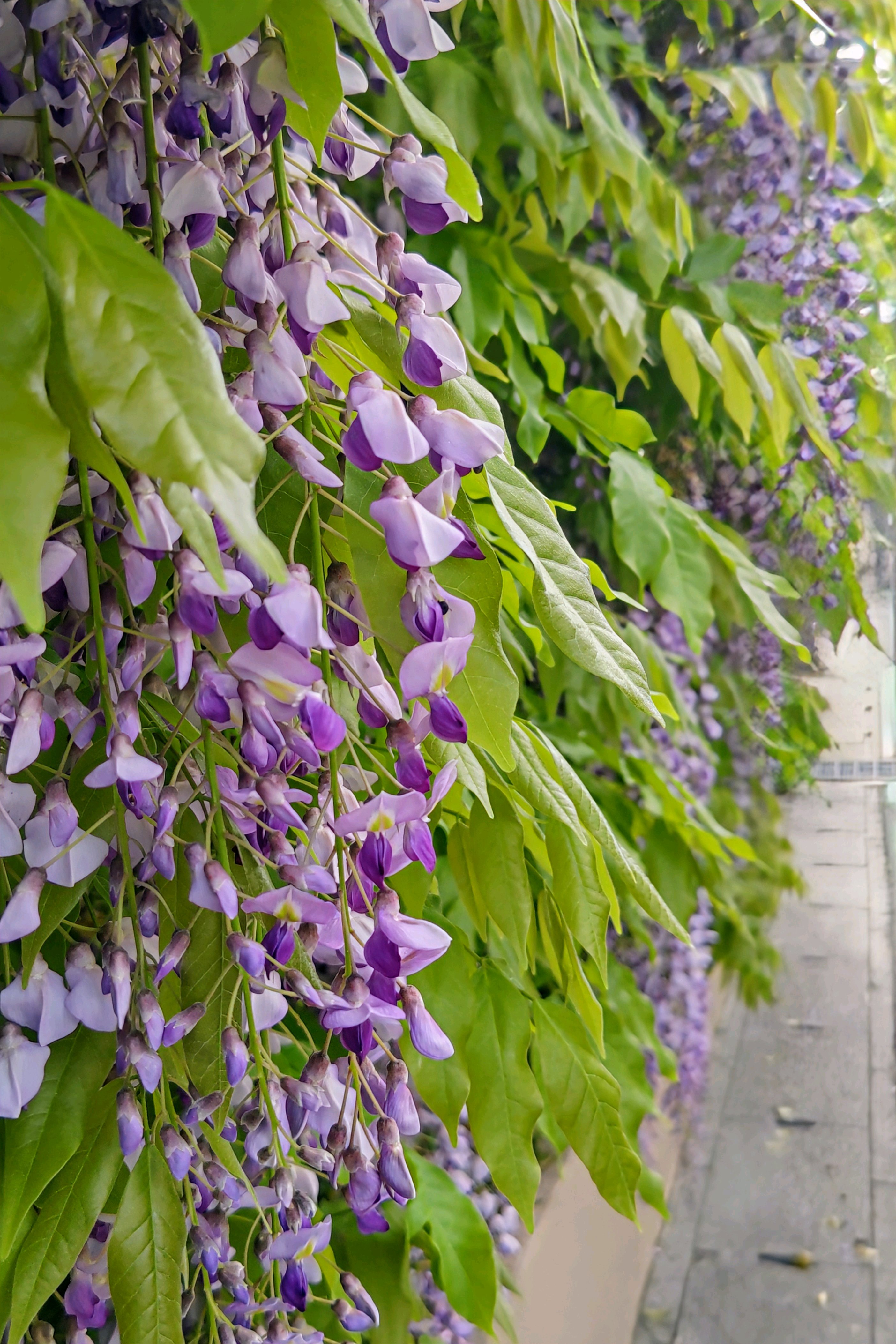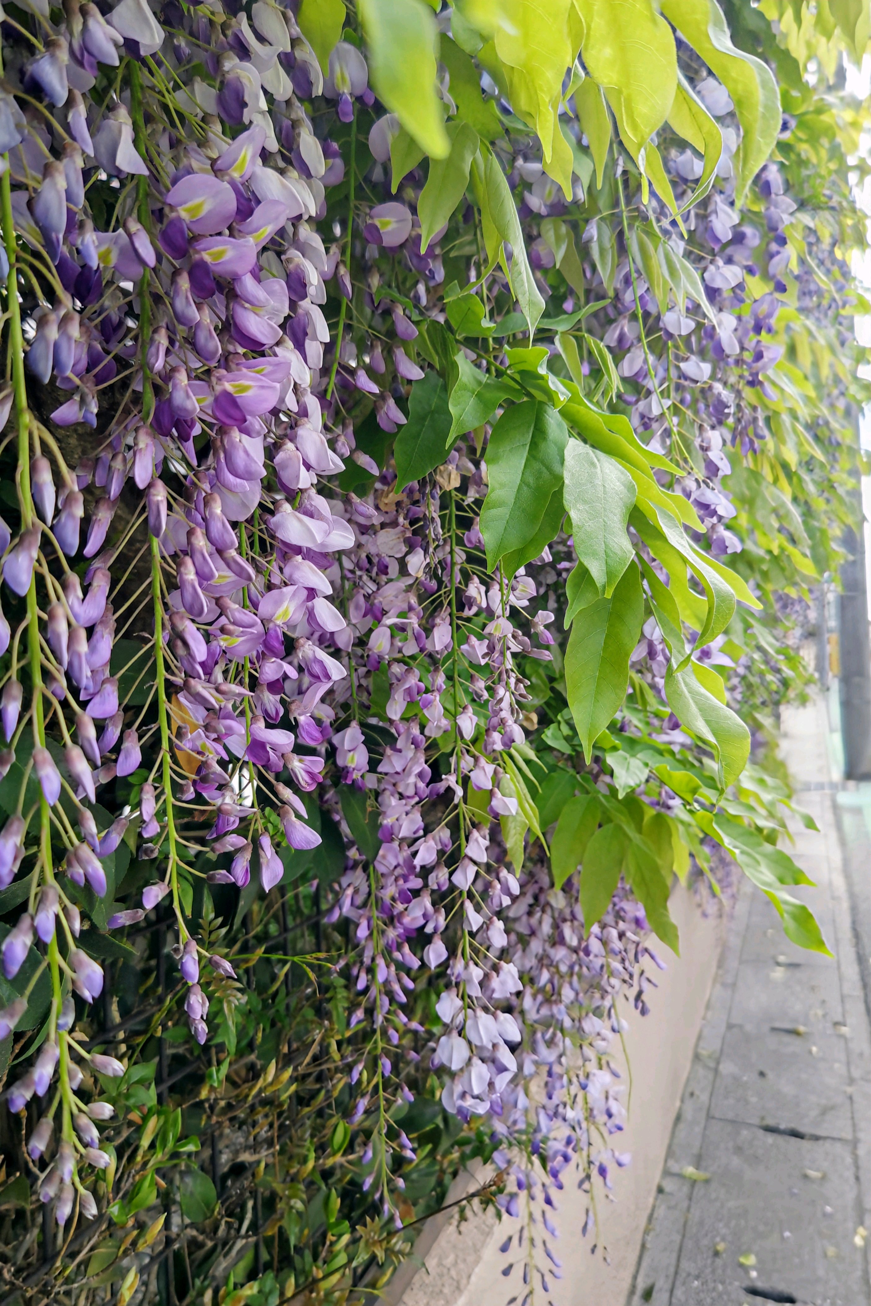 道路沿い、垣根仕立ての藤