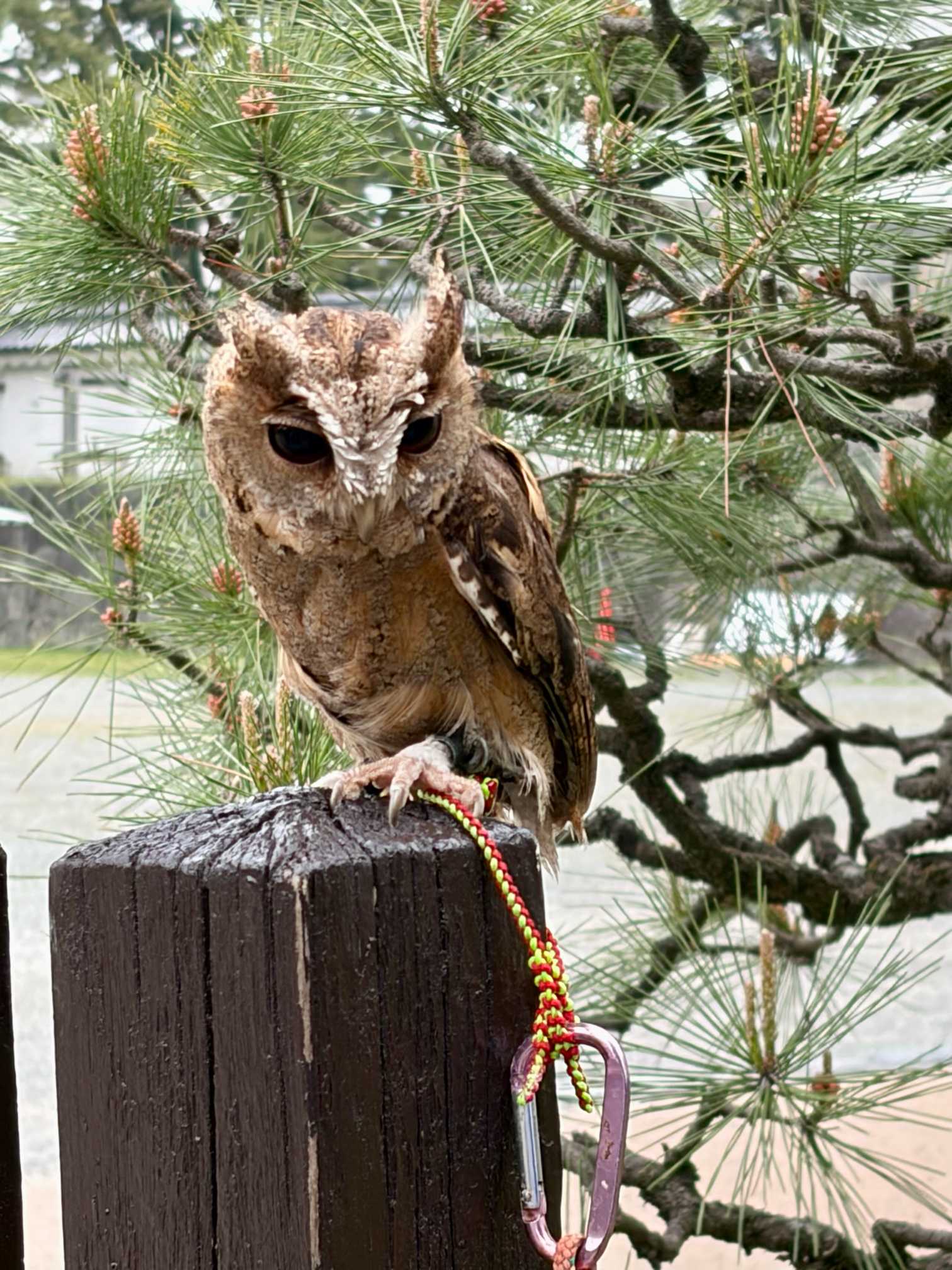 銅門を抜けると、ミミズク🦉を連れた方と出会い、写真を撮らせていただきました