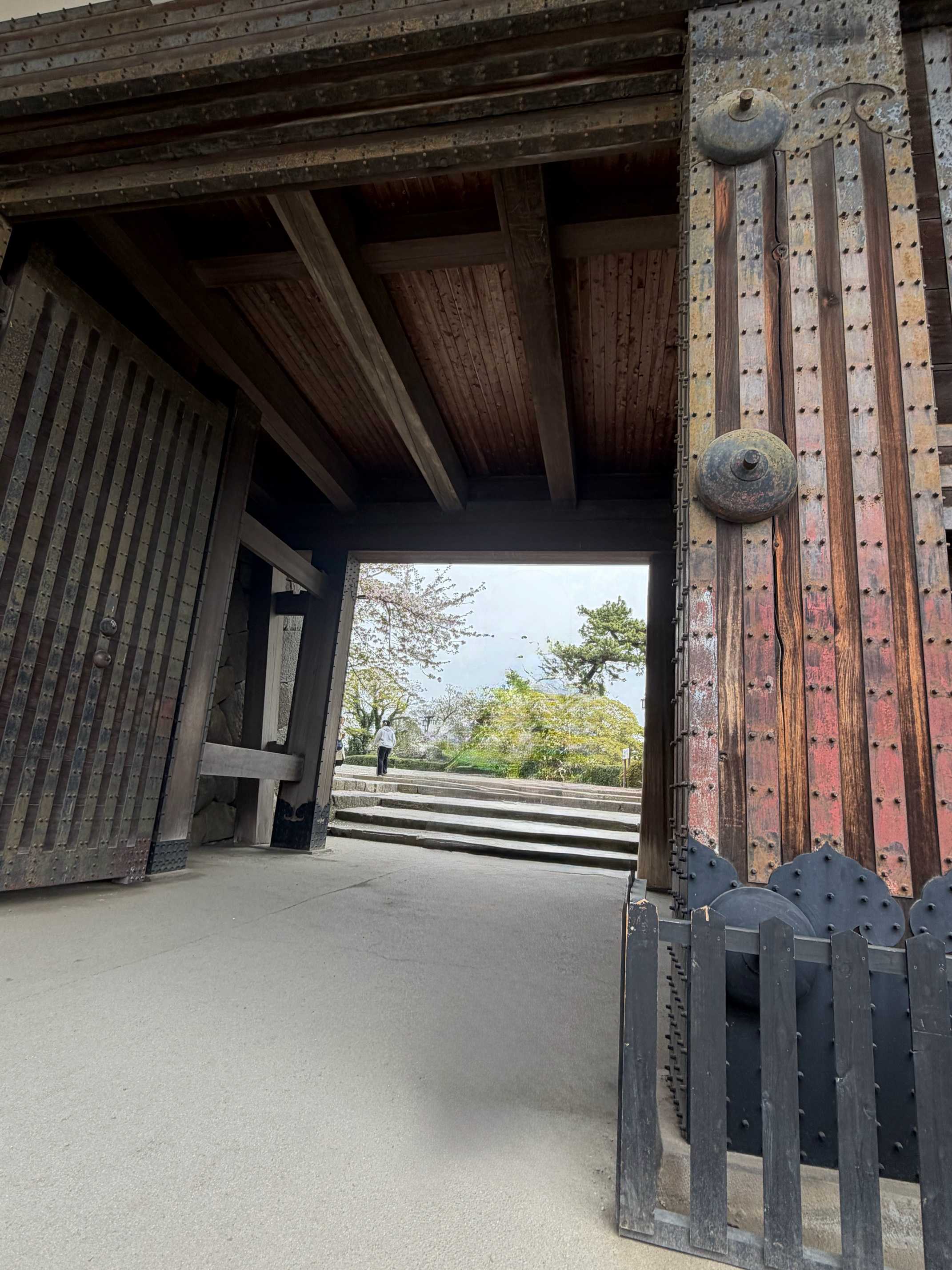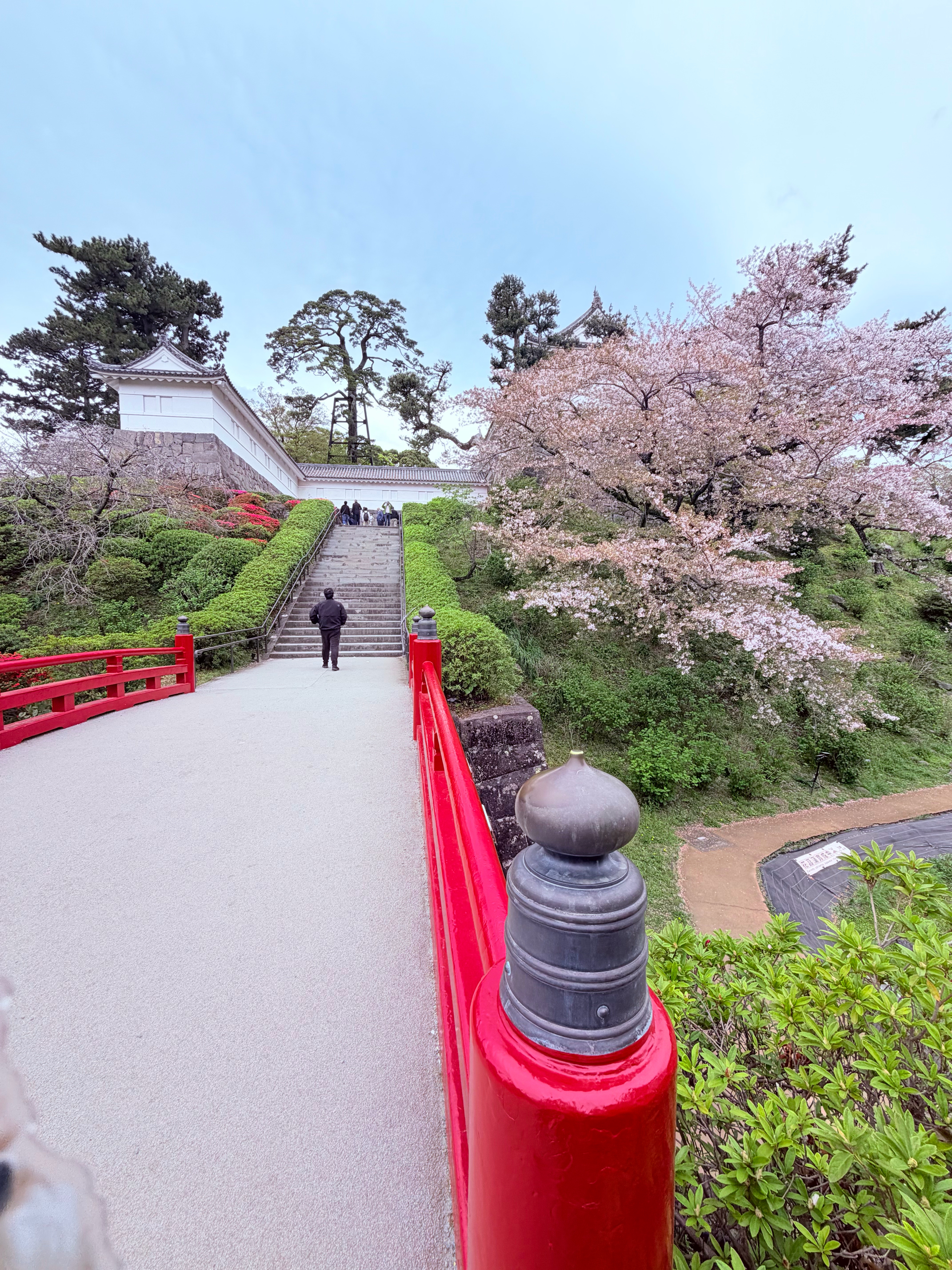 二の丸から赤い橋を渡ると階段の向こうは、常盤木門