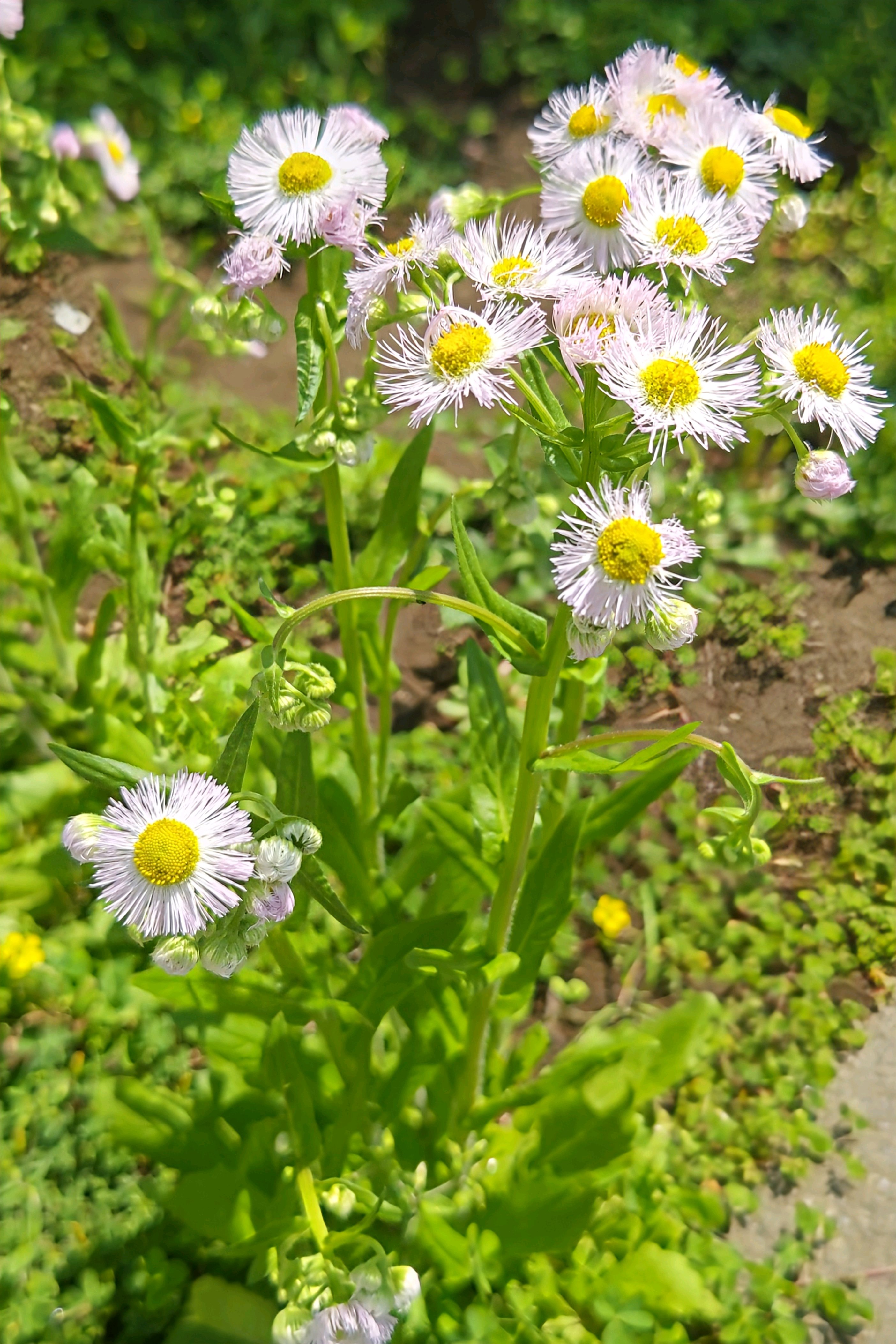 蕾を下にうなだれて、ハルジオン開花