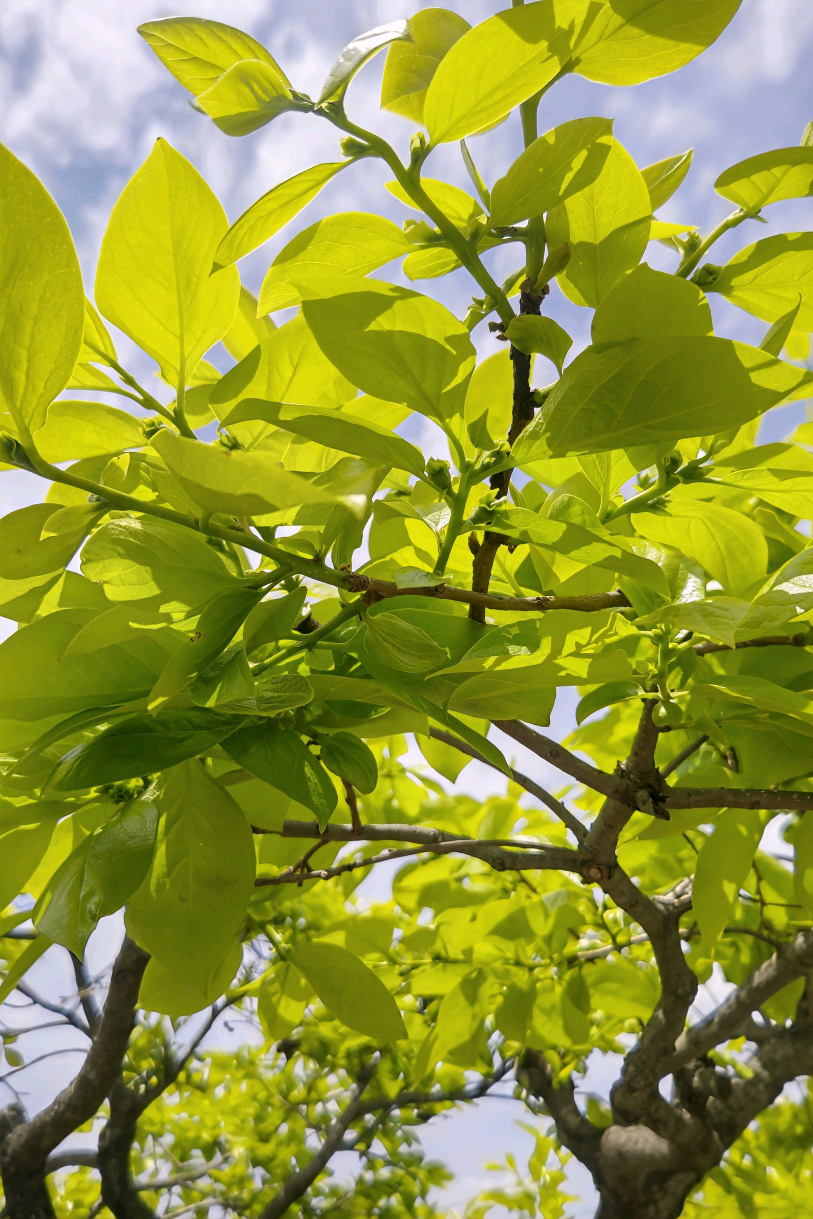 目を上げれば、柿の若葉が美しい。
