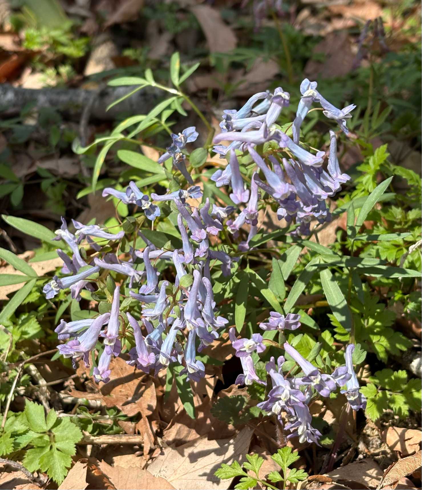 綺麗な色のヤマエンゴサクがお出迎え〜🩵💜🩵