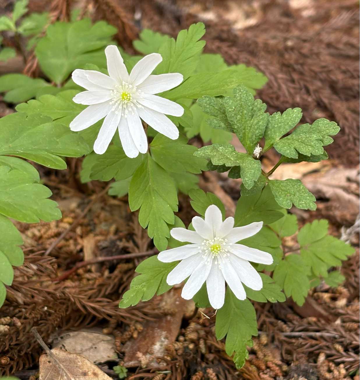 そして ここにはもうひとつ 白花のミヤマエンレイソウがあります