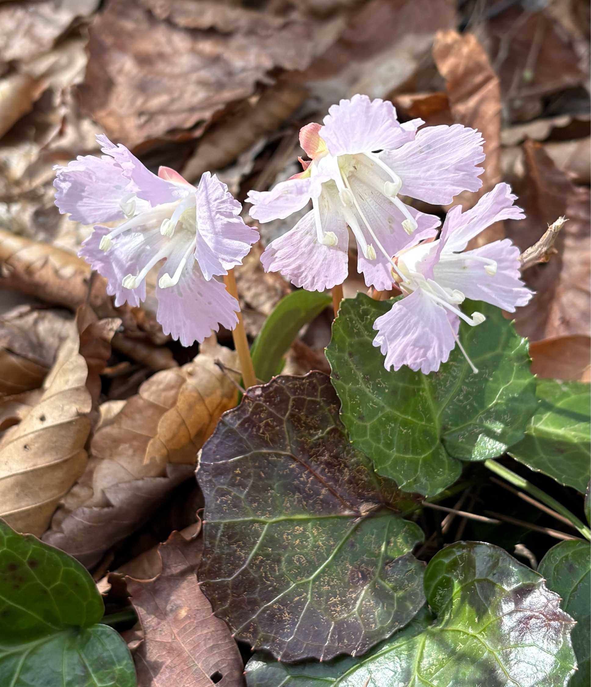 ここは4合目 白とピンクのイワウチワ この花が目的なので 今日もここで帰ります✌️