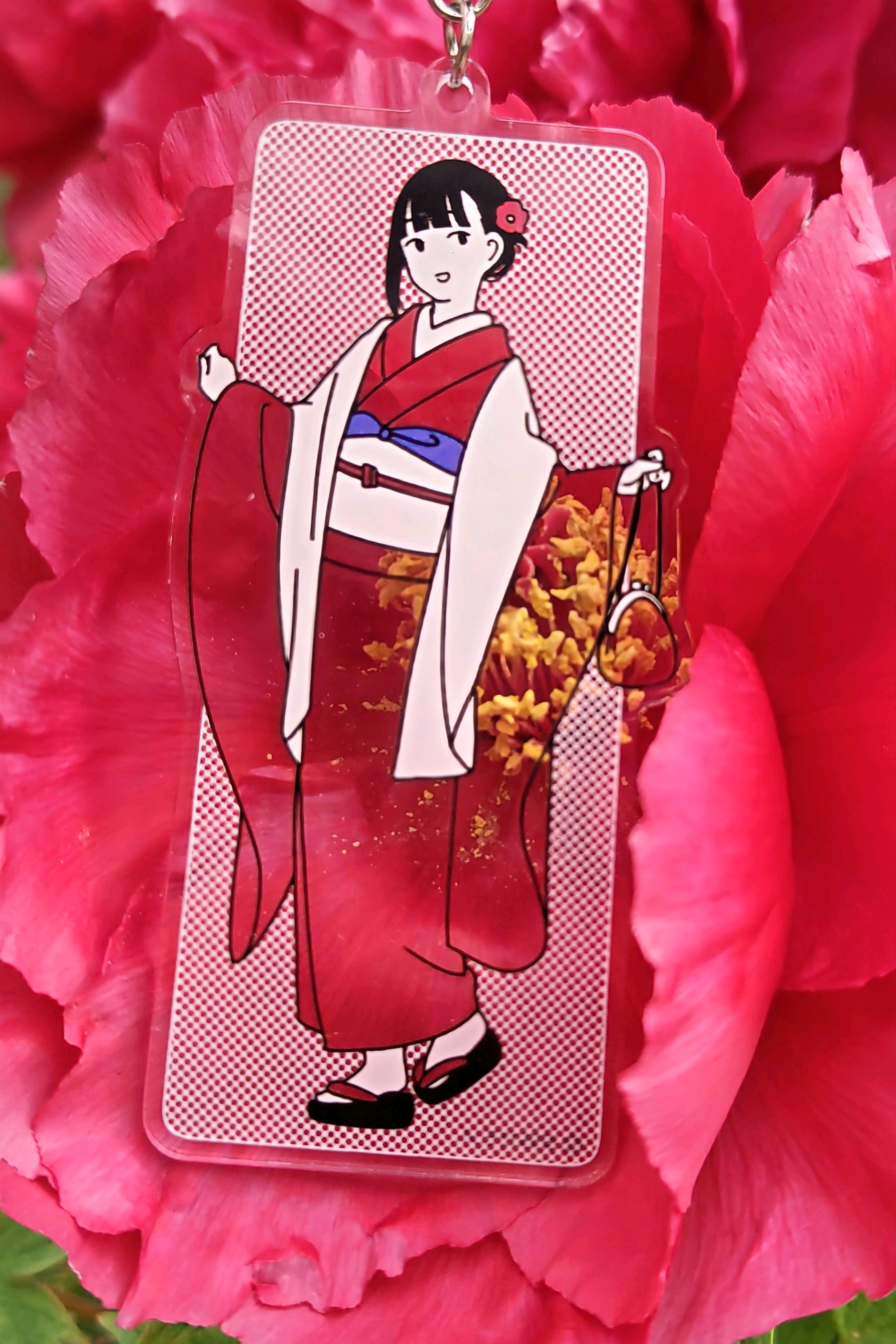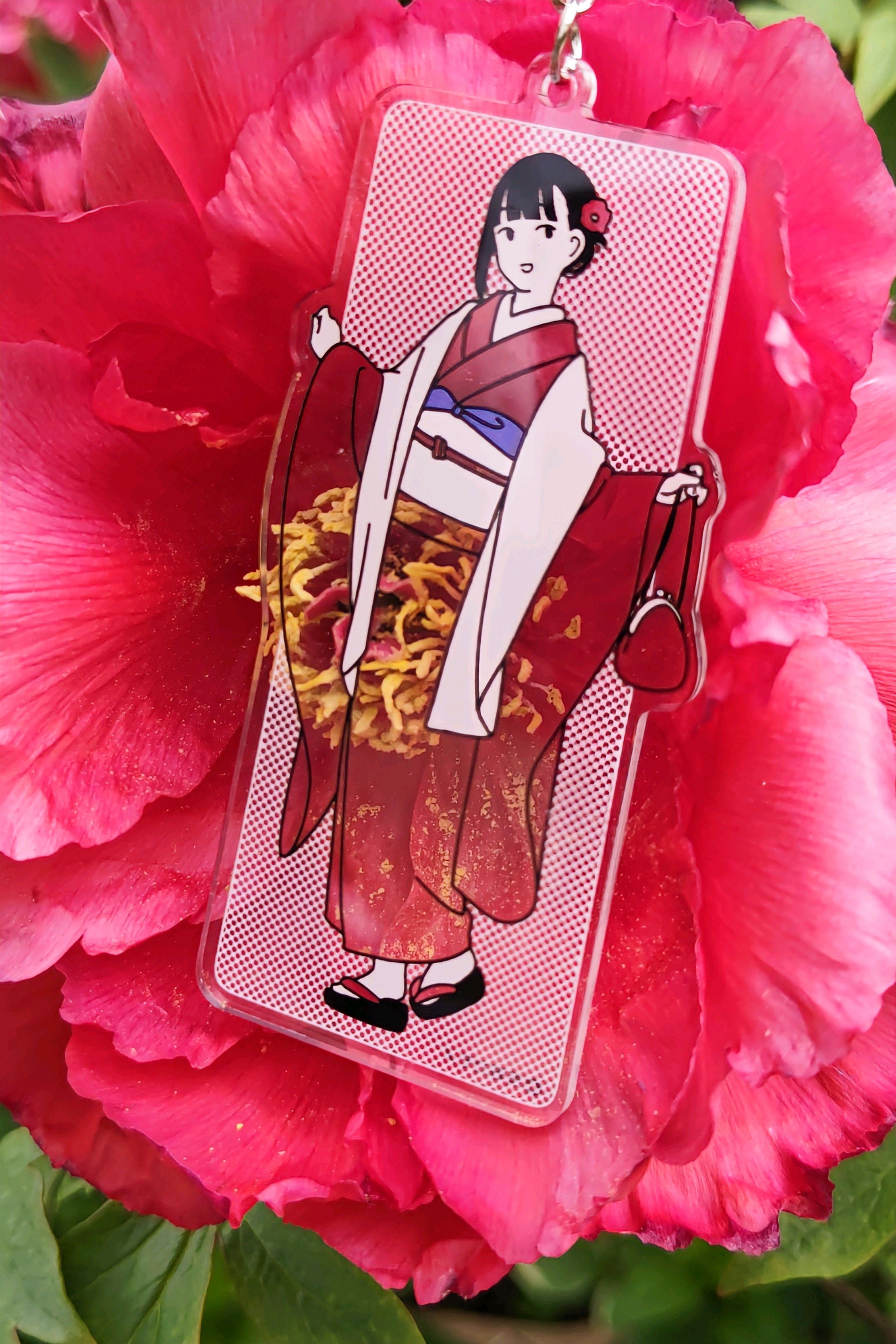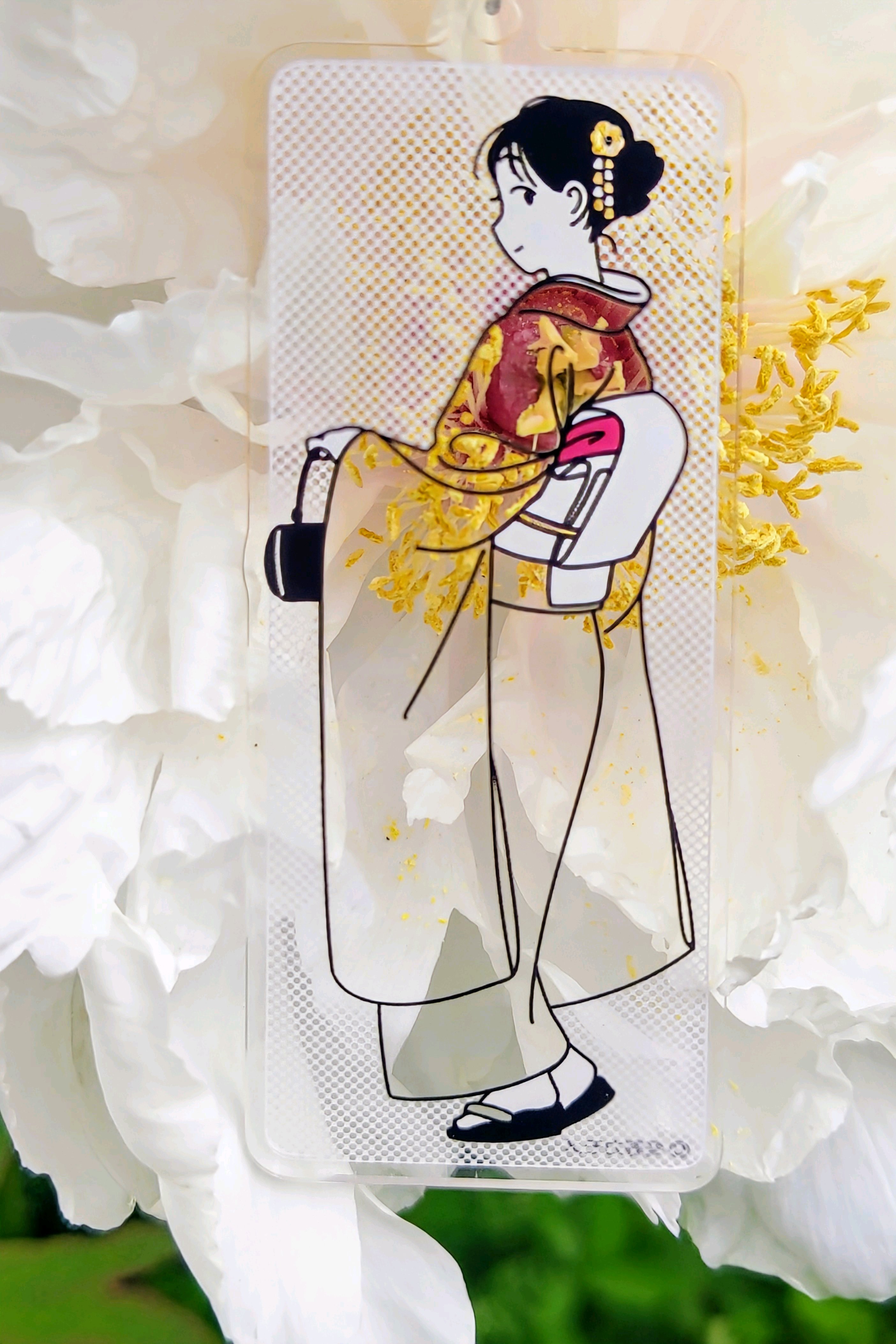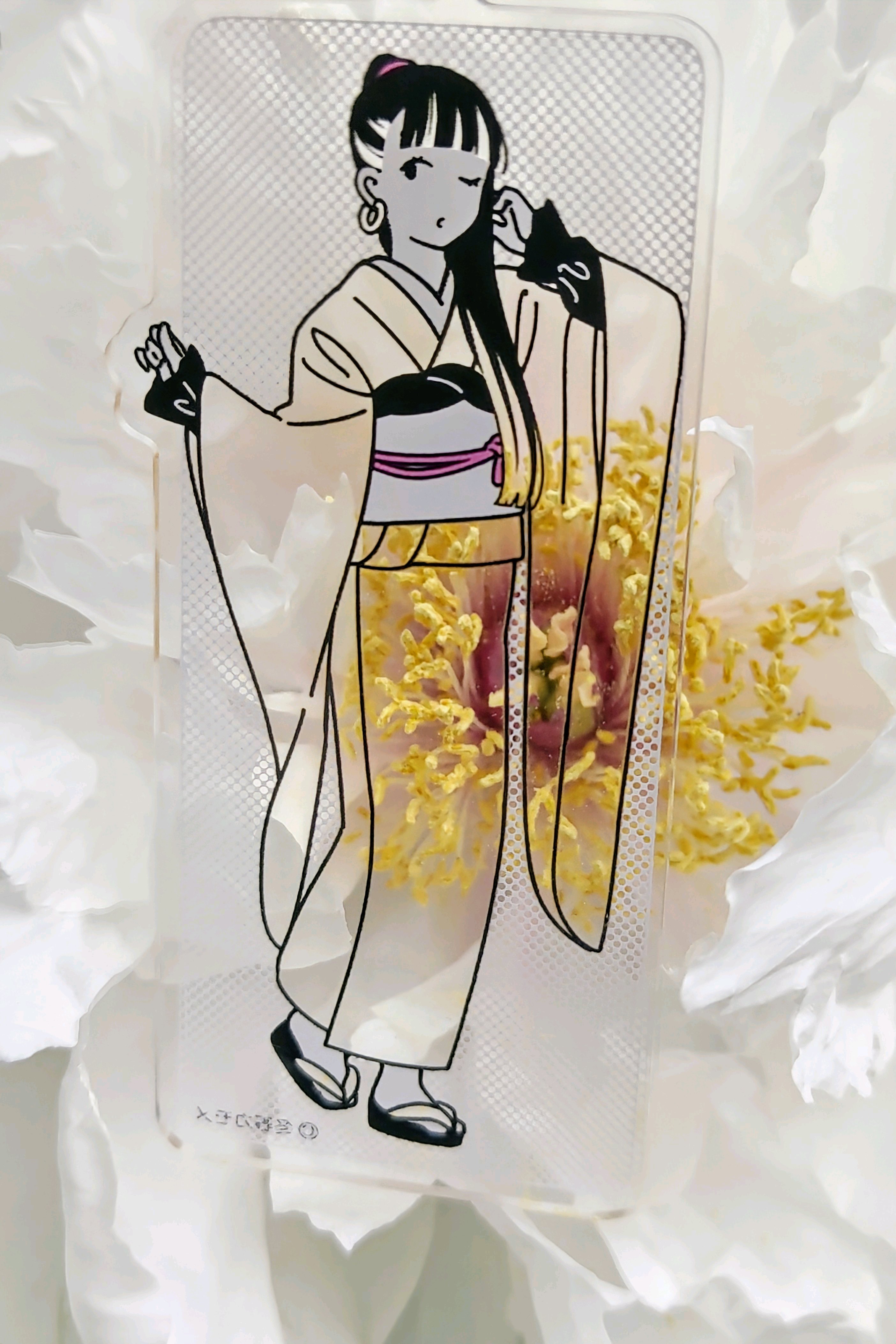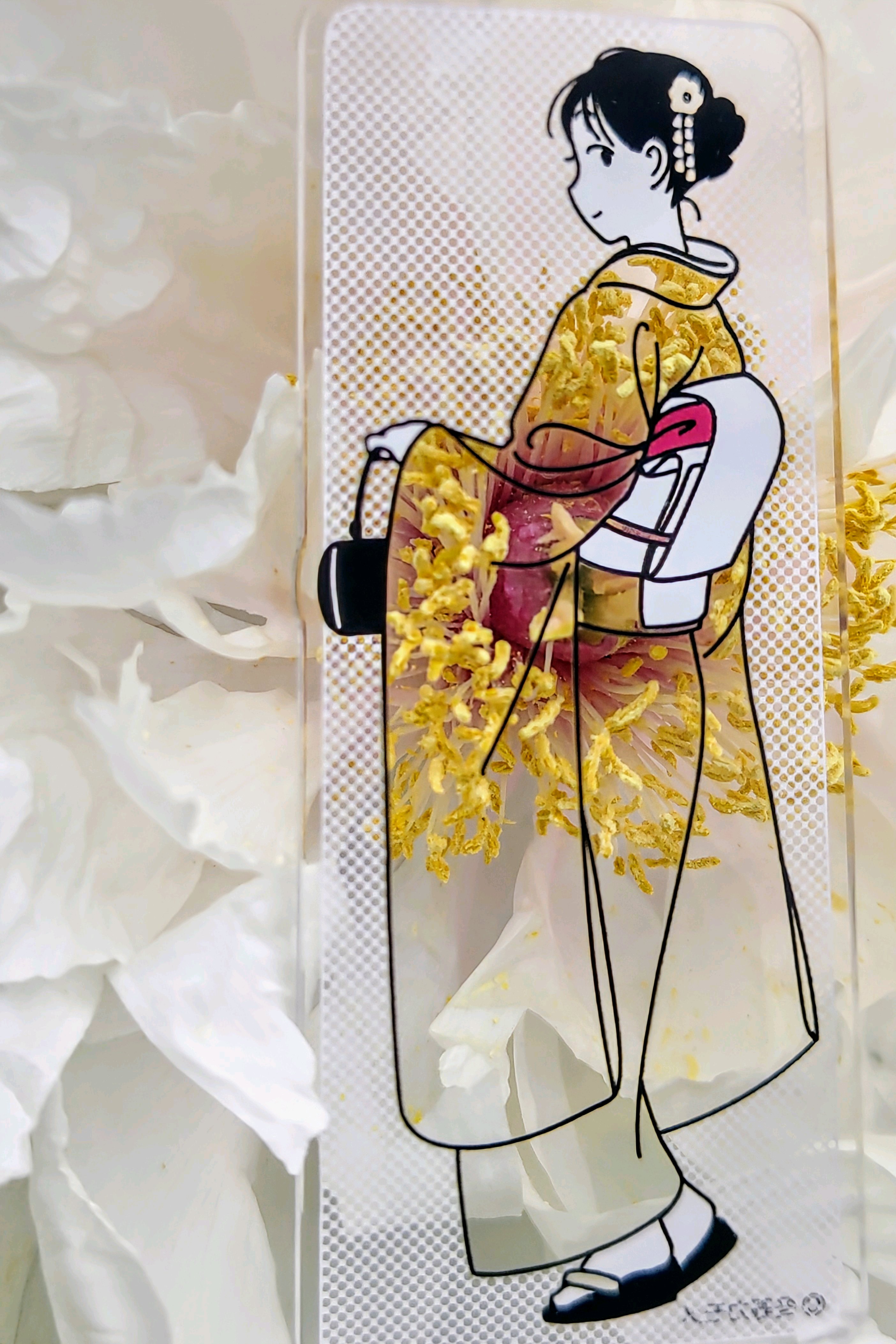 ももこさん、ゴージャスな金色の蕊の振り袖。