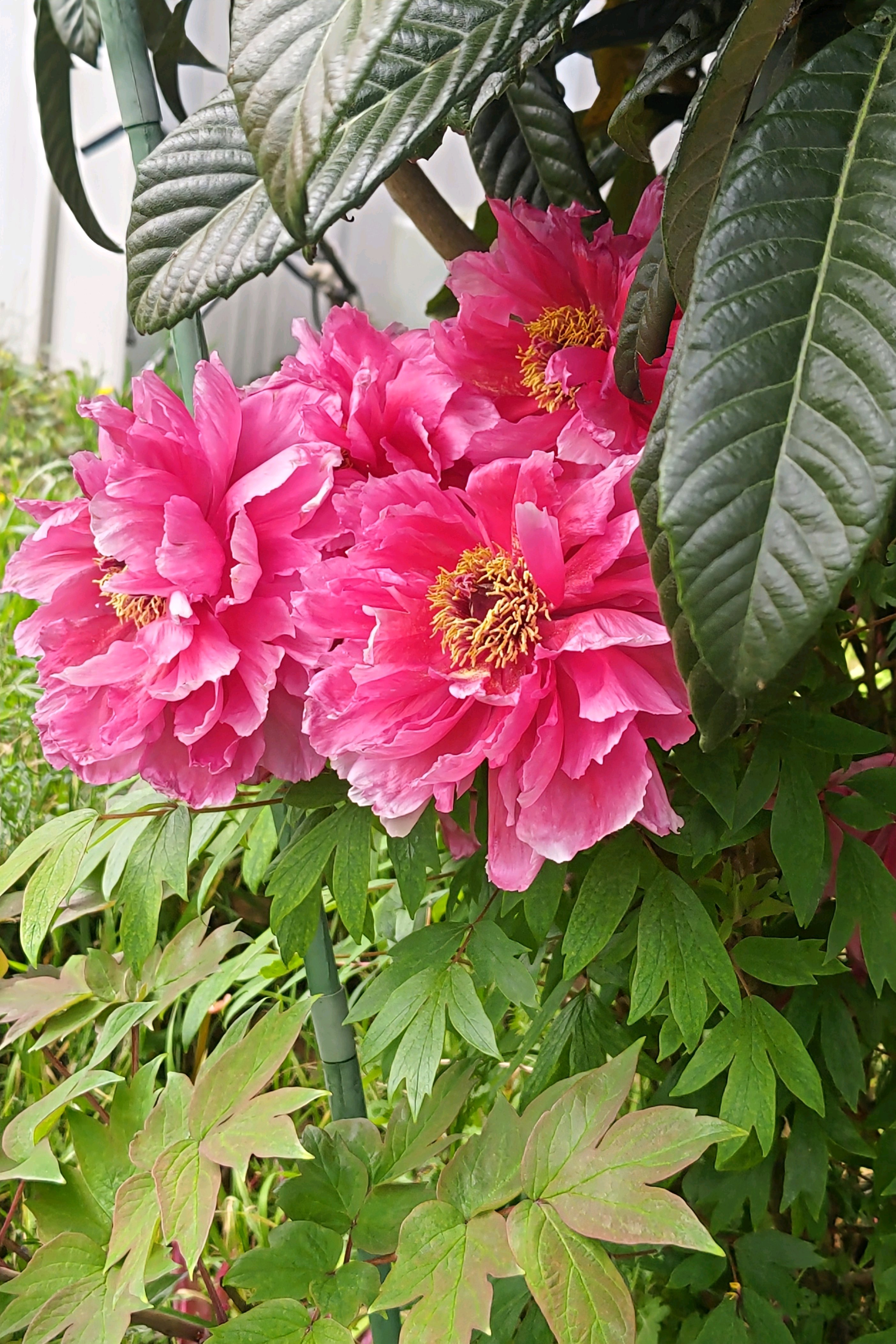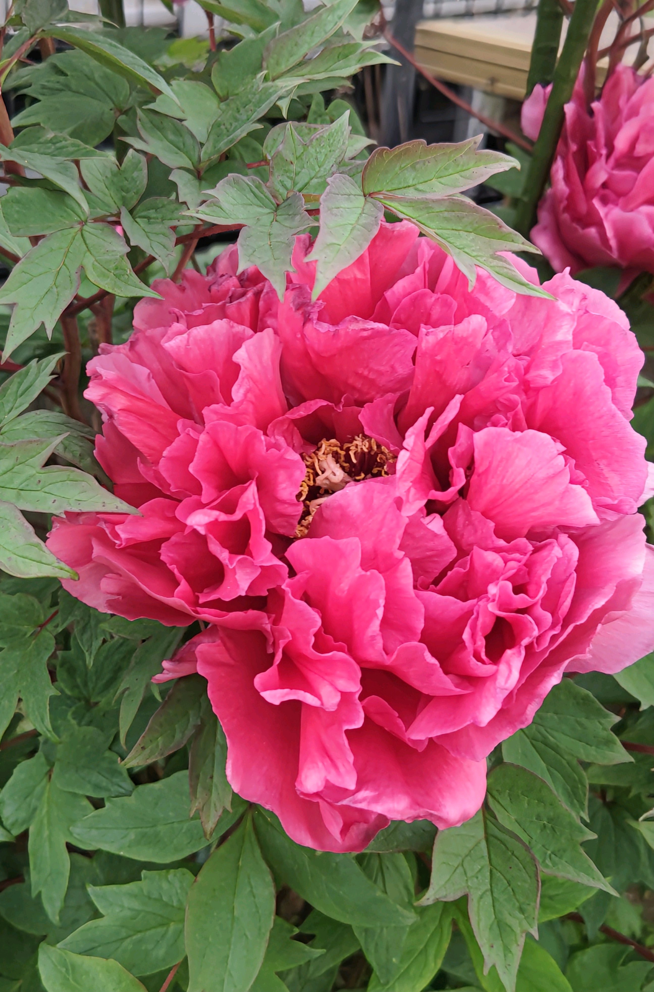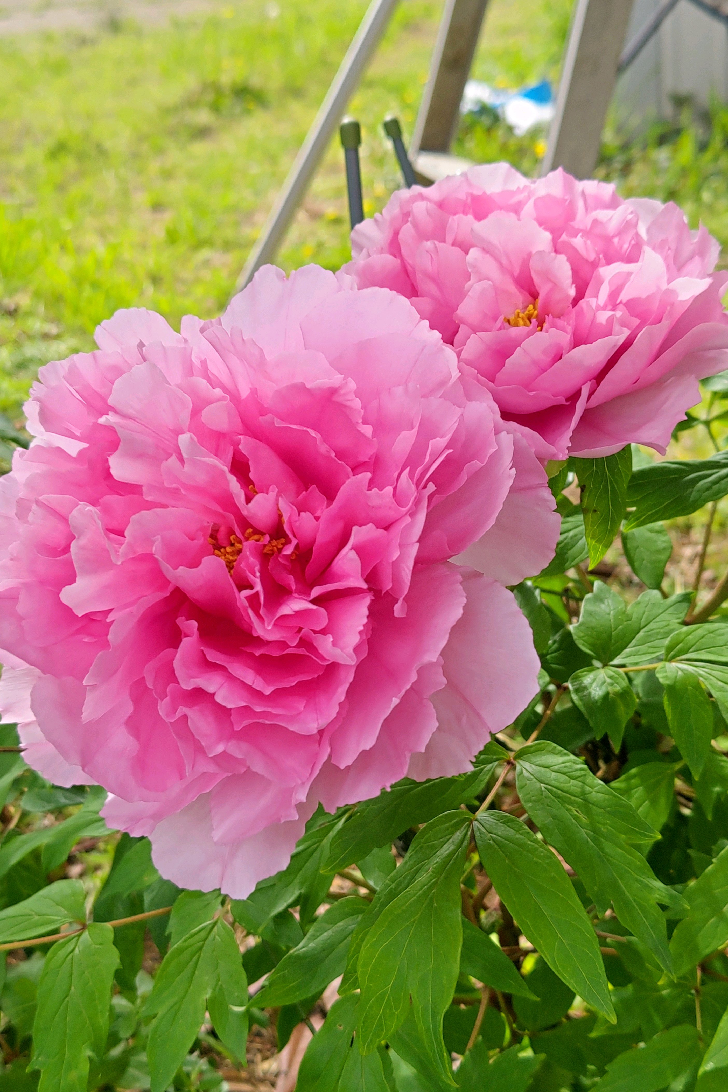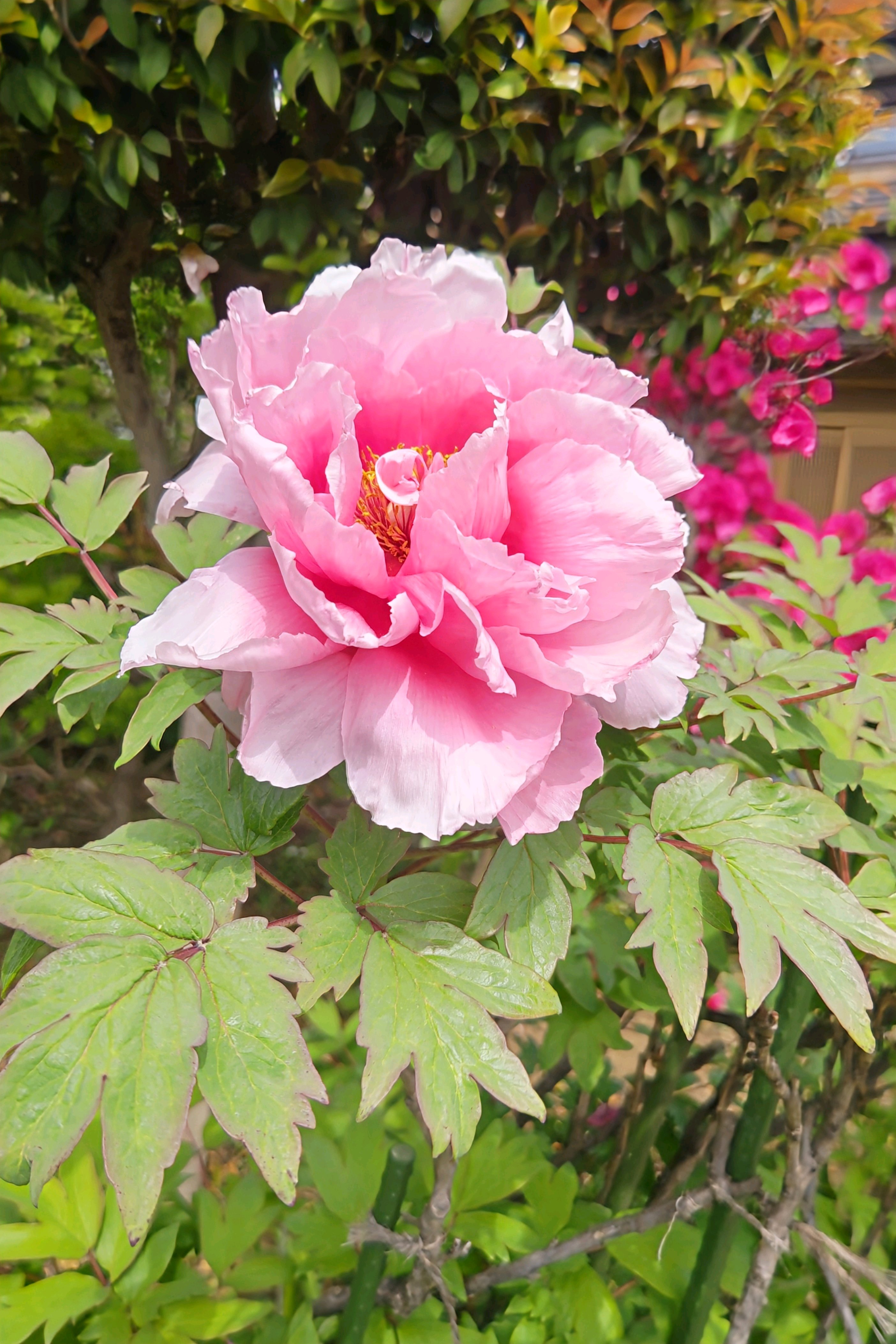 ピンクの牡丹、満開。
