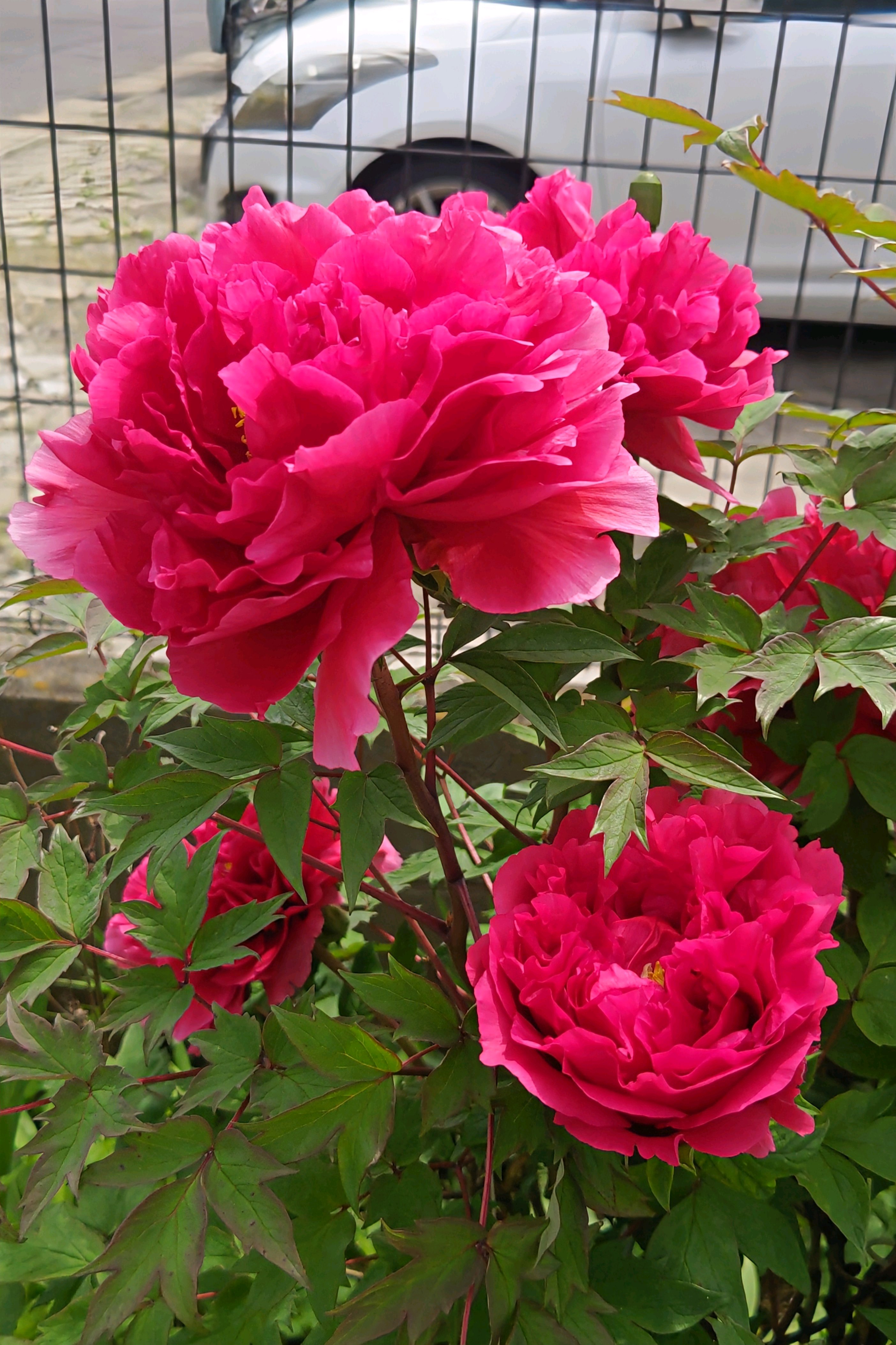 駐車場の牡丹