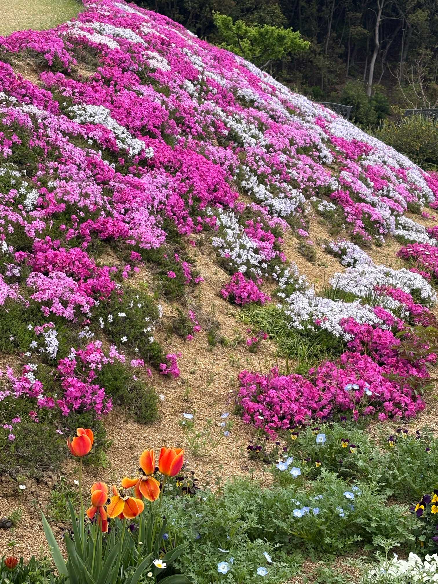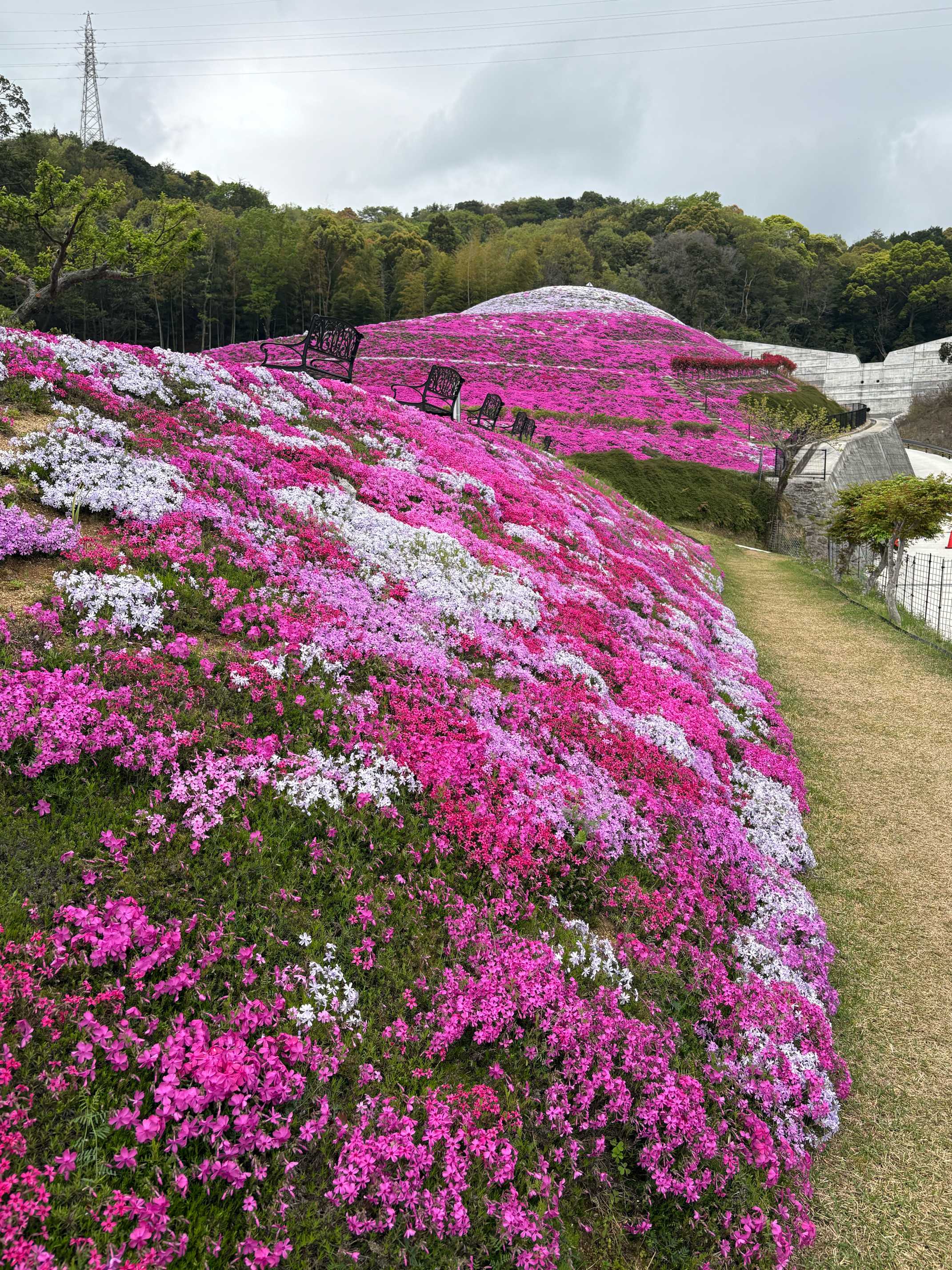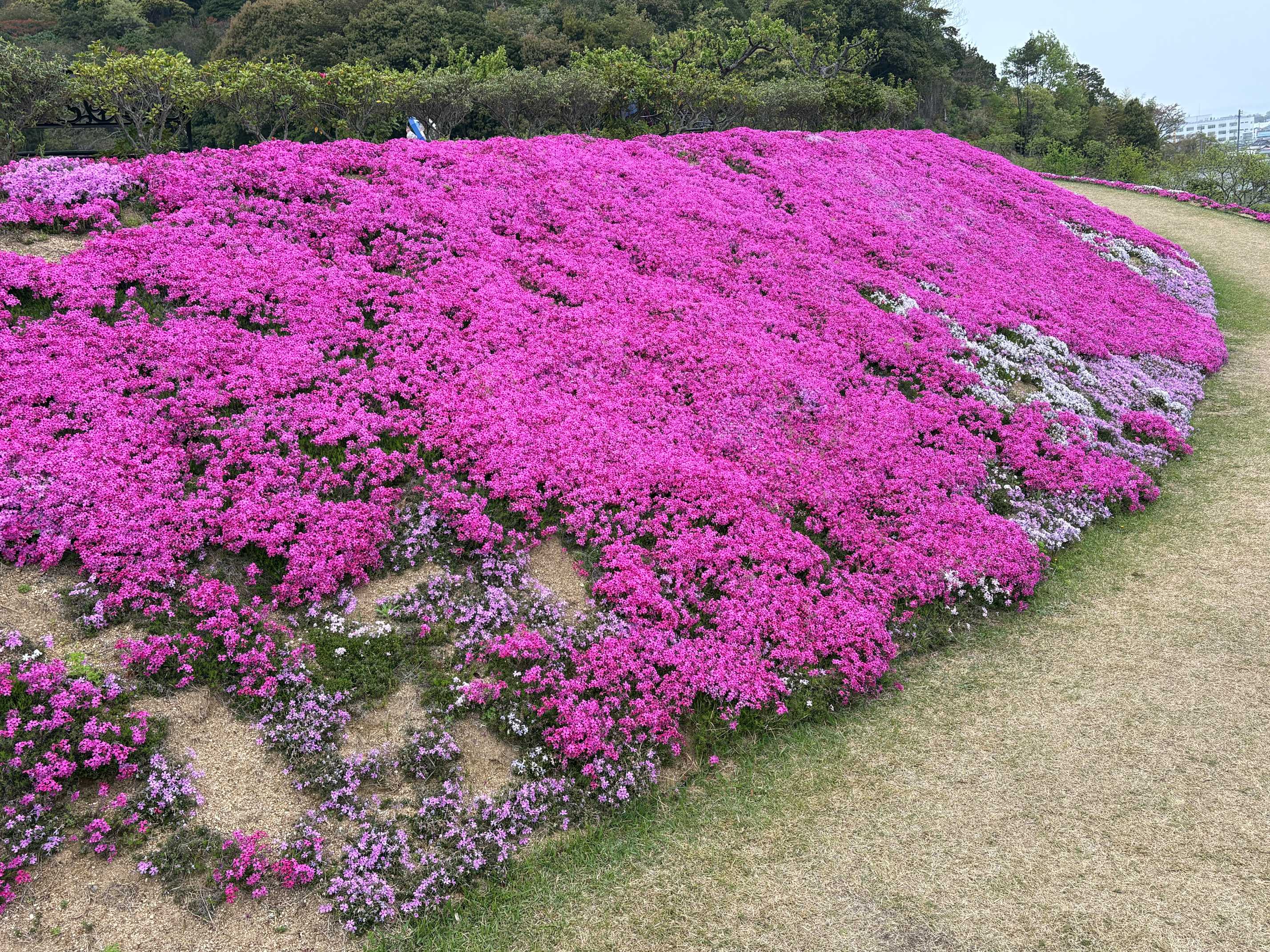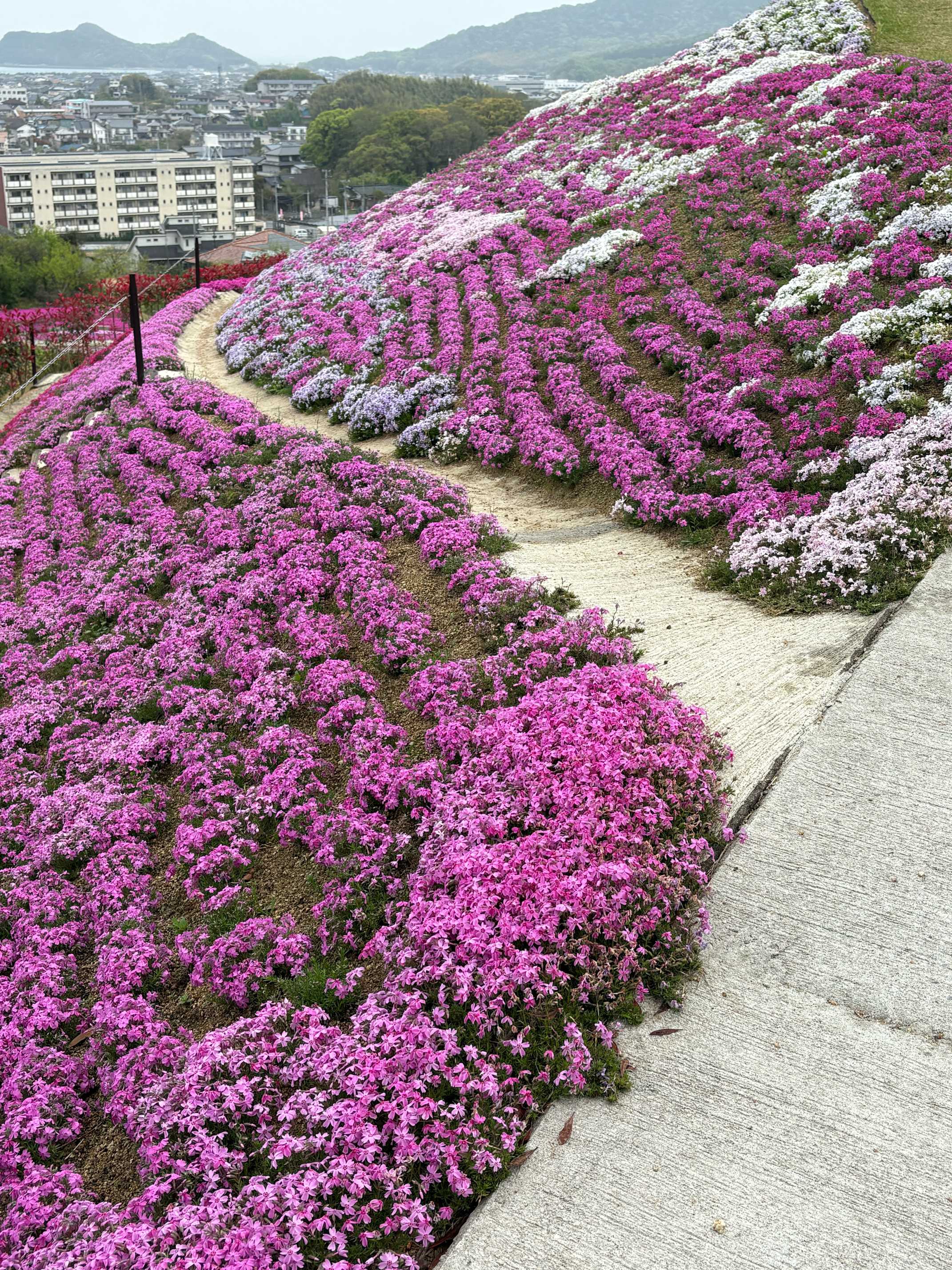 個人で山の斜面に芝桜を植え続け、