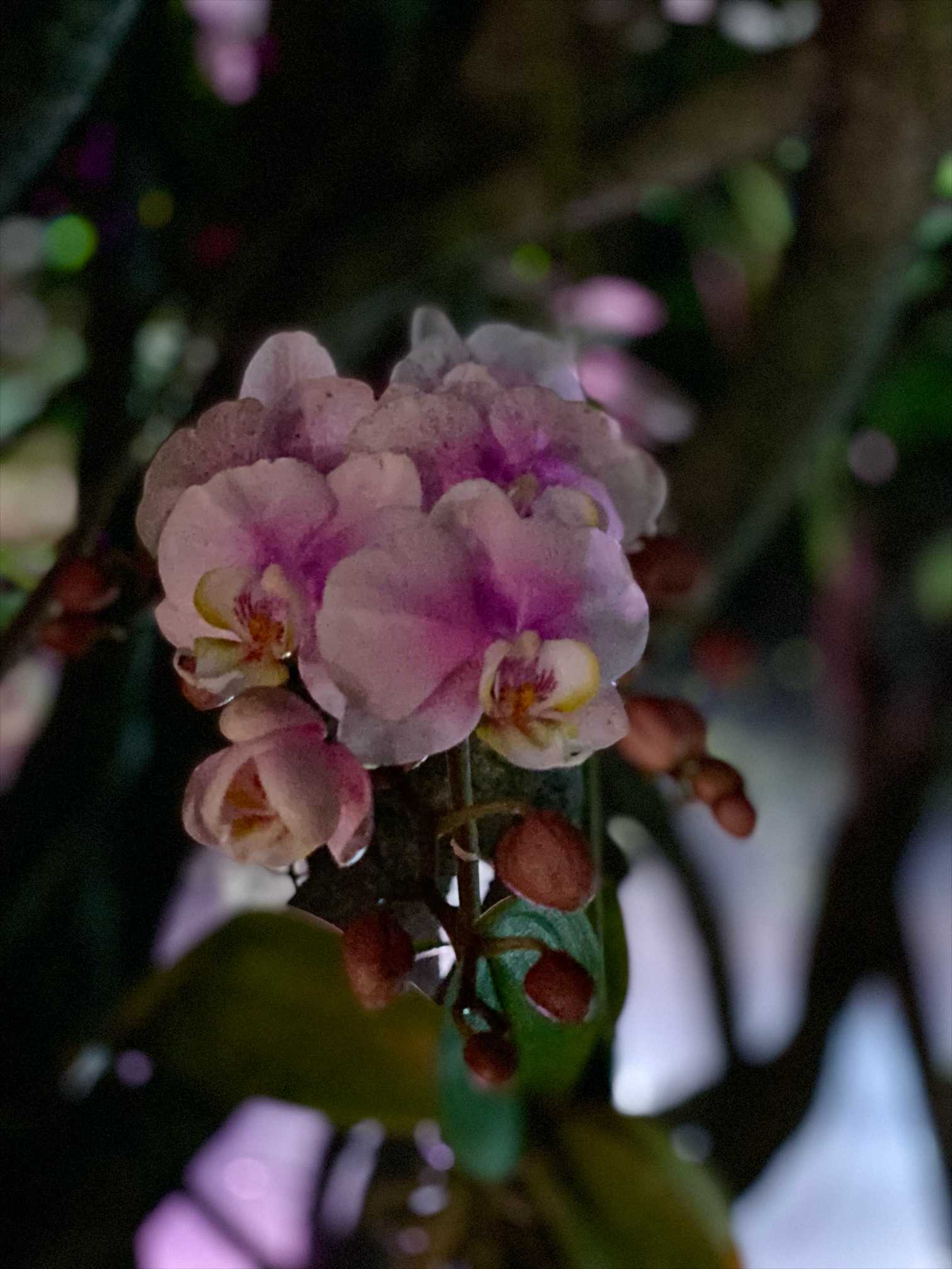 蘭が飾られたアーチもライトアップ