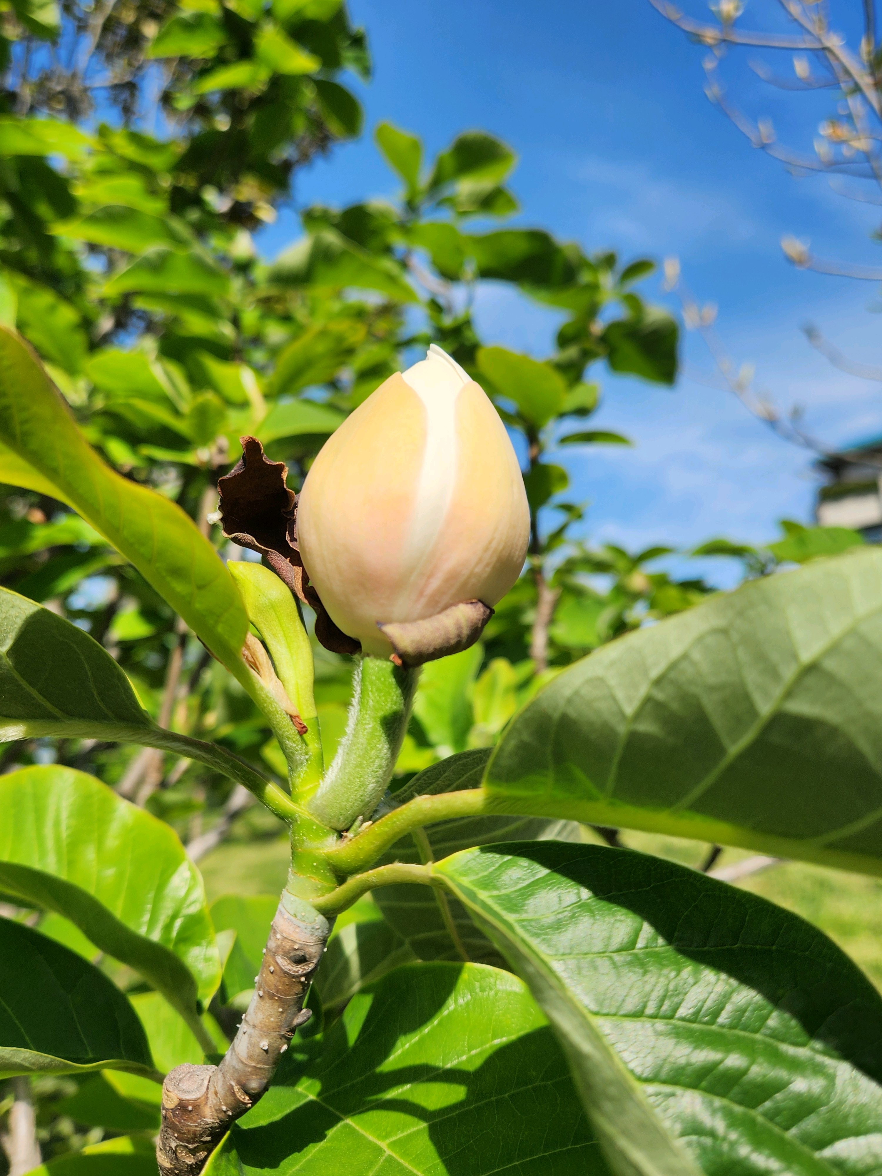 ホオノキが少し開いてきてました。