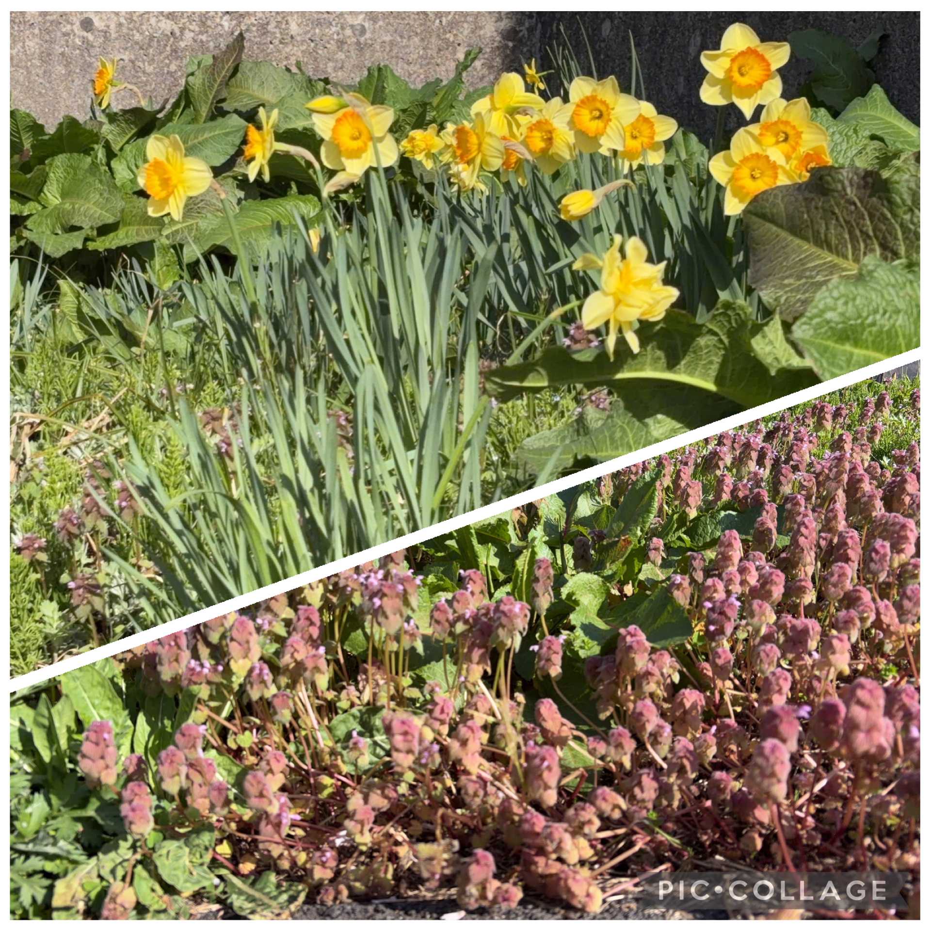 駐車場🅿️脇にはスイセン🌼ヒメオドリコソウ🌸
